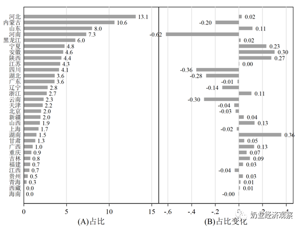 占全国总加工量的比例与变化