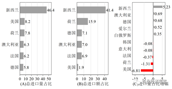 图6 乳制品主要进口来源地占比及来源变化