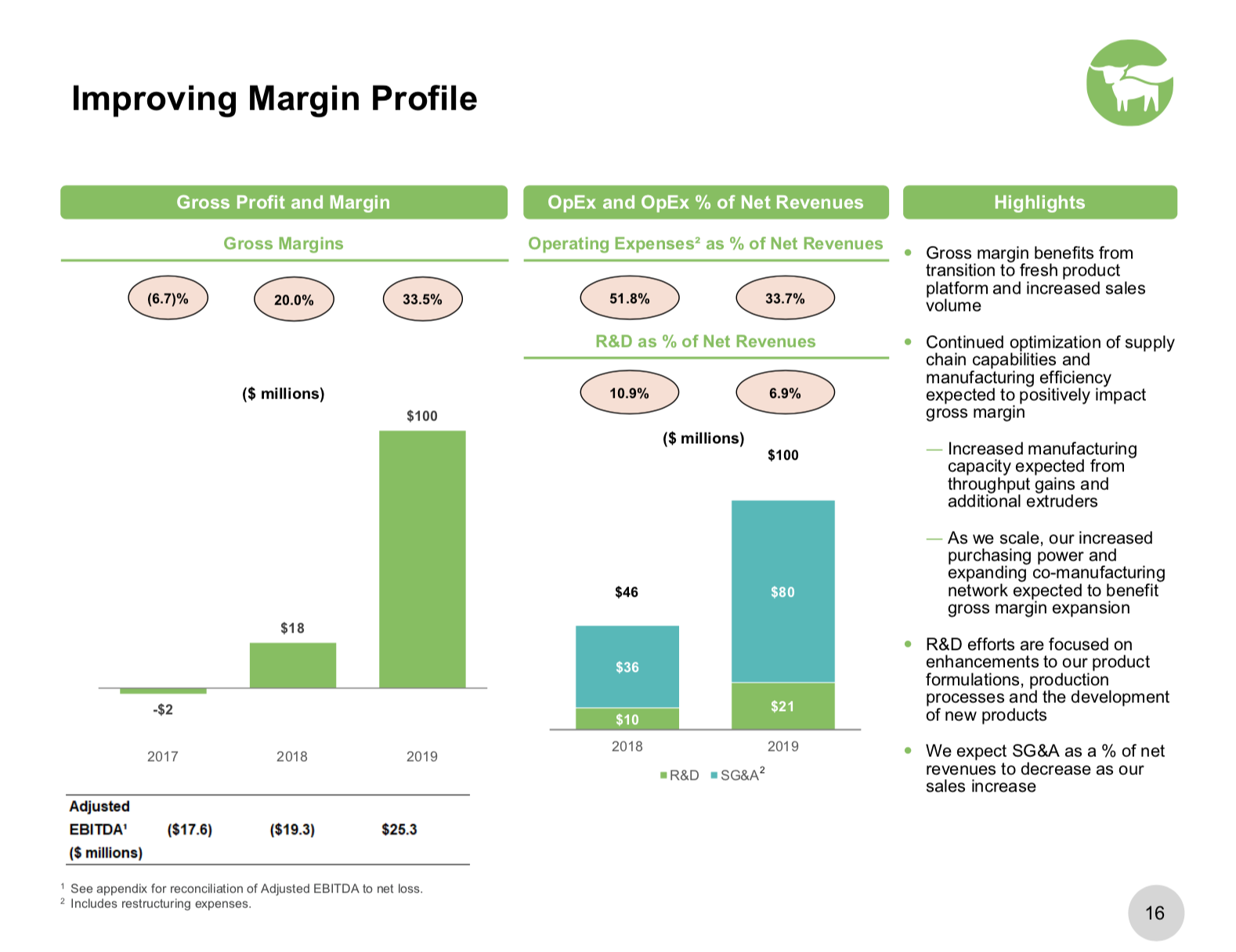 毛利率扩张主要是因为产品销量增长,产品效率提升和新鲜产品更高的占比。毛利率从去年同期的25%提升至34%,毛利润从790万美金增至3350万美金。