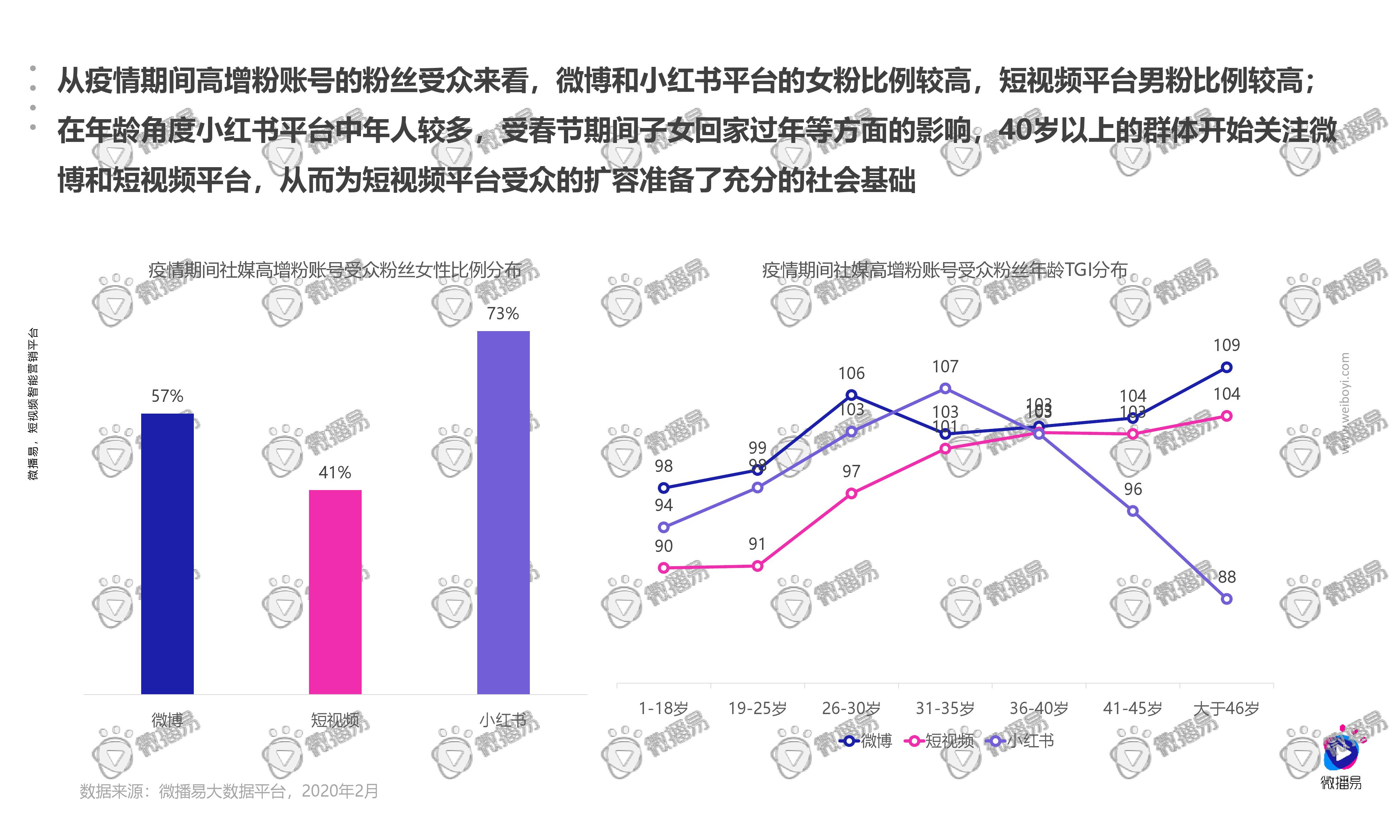 微播易:疫情下的用户生态和行业机会洞察 PDF版本将分享到199IT交流群,支持我们发展可加入! 更多阅读:微播易&中国传媒大学:2020年中腰部KOL营销发展报告微播易:2020年KOL社交媒体投放分析报告消费者品牌报告:寻找真相微播易:2024年AI营销应用解析报告(附下载)CTR:疫情下的中国广告市场洞察西南财大&蚂蚁金服:疫情下中国家庭的财富变动趋势仟调研:疫情下小微企业发展调研报告酷云互动:疫情下的用户大屏触媒洞察分析报告(二)Economic Innovation Group:疫情爆发以来纽约市幼童减少18%乐施会:疫情期间每30小时产生一位亿万富豪 建议对超额利润征税90%国际电信联盟:2021年不发达国家的连通性报告调查显示美国三分之一成年人打算疫情之后继续在家做饭睿和智库|6月商办声音榜:疫情可控下,行业开始悄然复苏微播易:2020直播电商发展趋势报告微播易:2020年食品饮料行业社媒营销报告