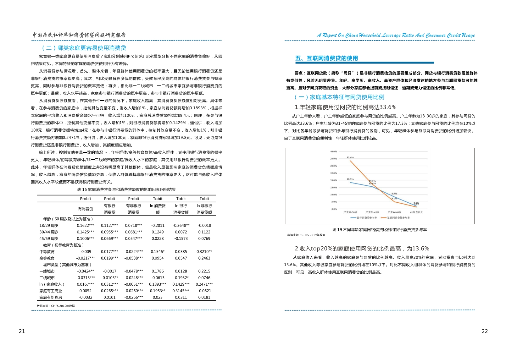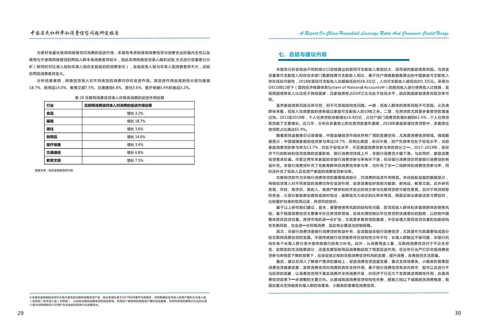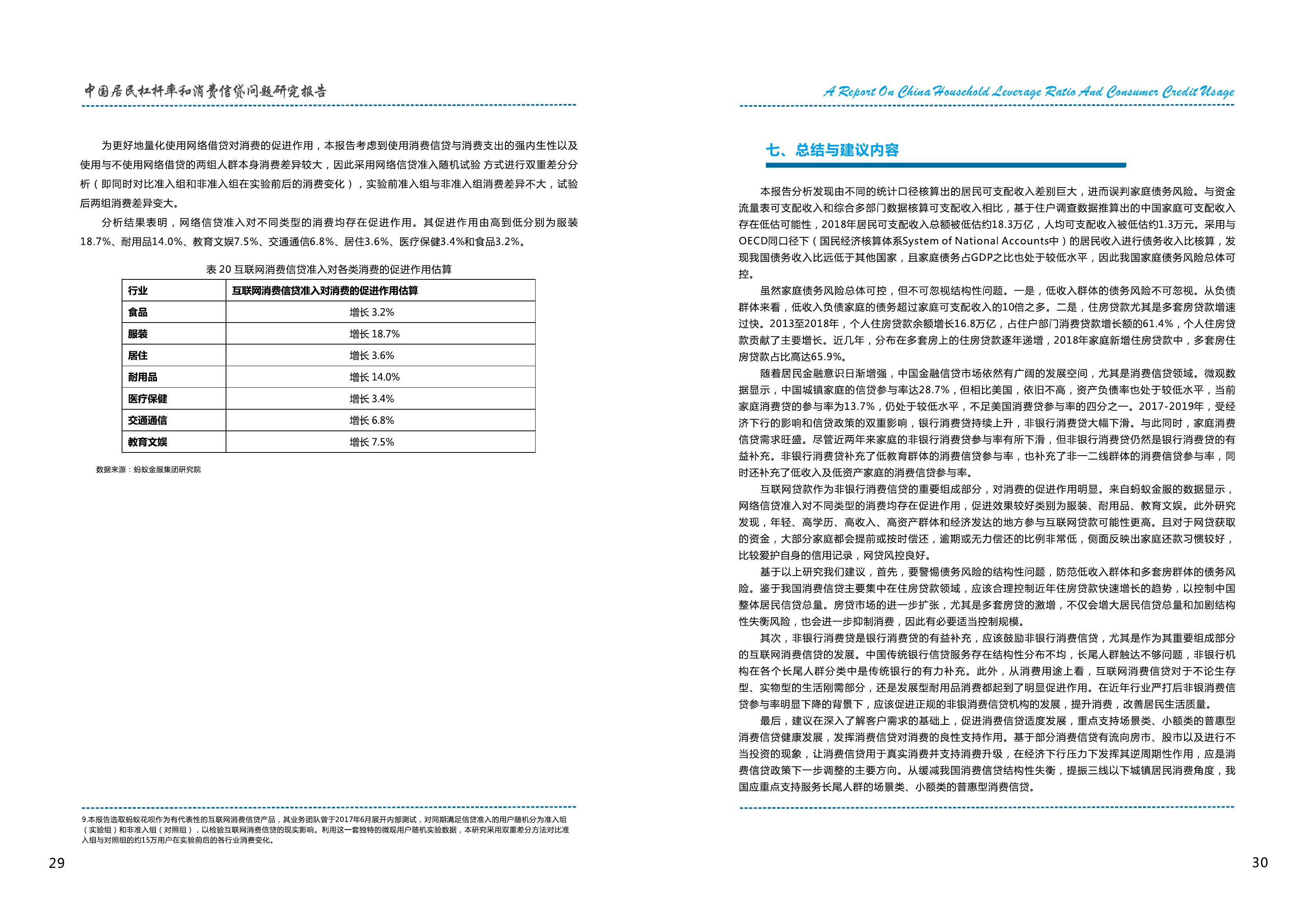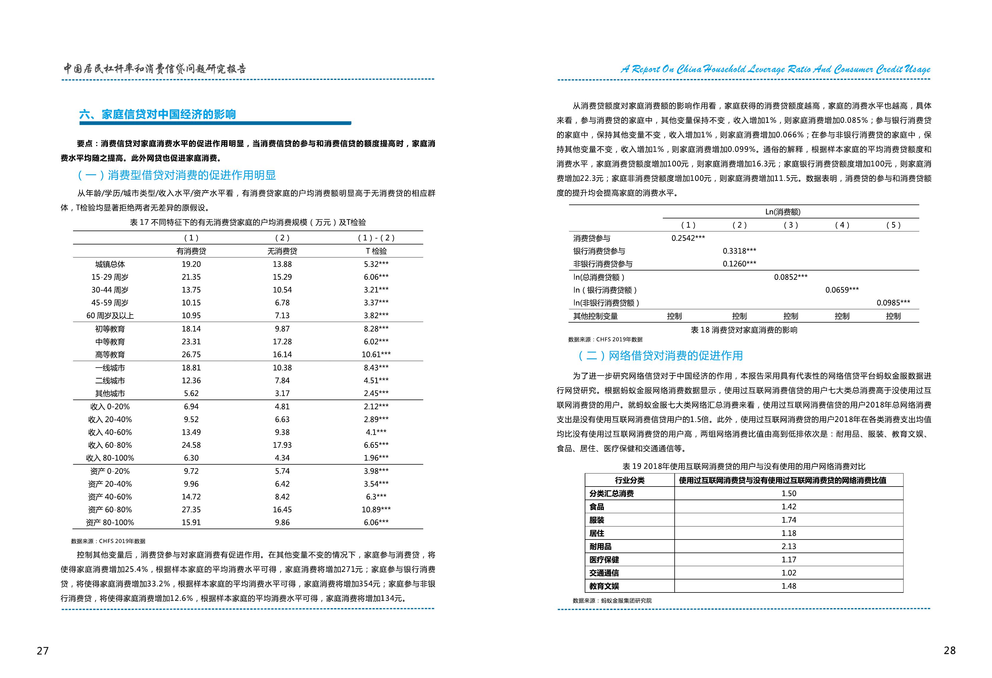 报告指出,首先,中国人的负债情况没有想象中那么高。数据表明,中国家庭债务占GDP比重为49.2%,远低于美国77.1%的水平。同时,在信贷参与程度上,中国的信贷参与率只有28.7%,也低于美国的78.0%的水平。其中家庭消费信贷的参与率更低,2019年只有13.7%的水平,更是不到美国的四分之一。