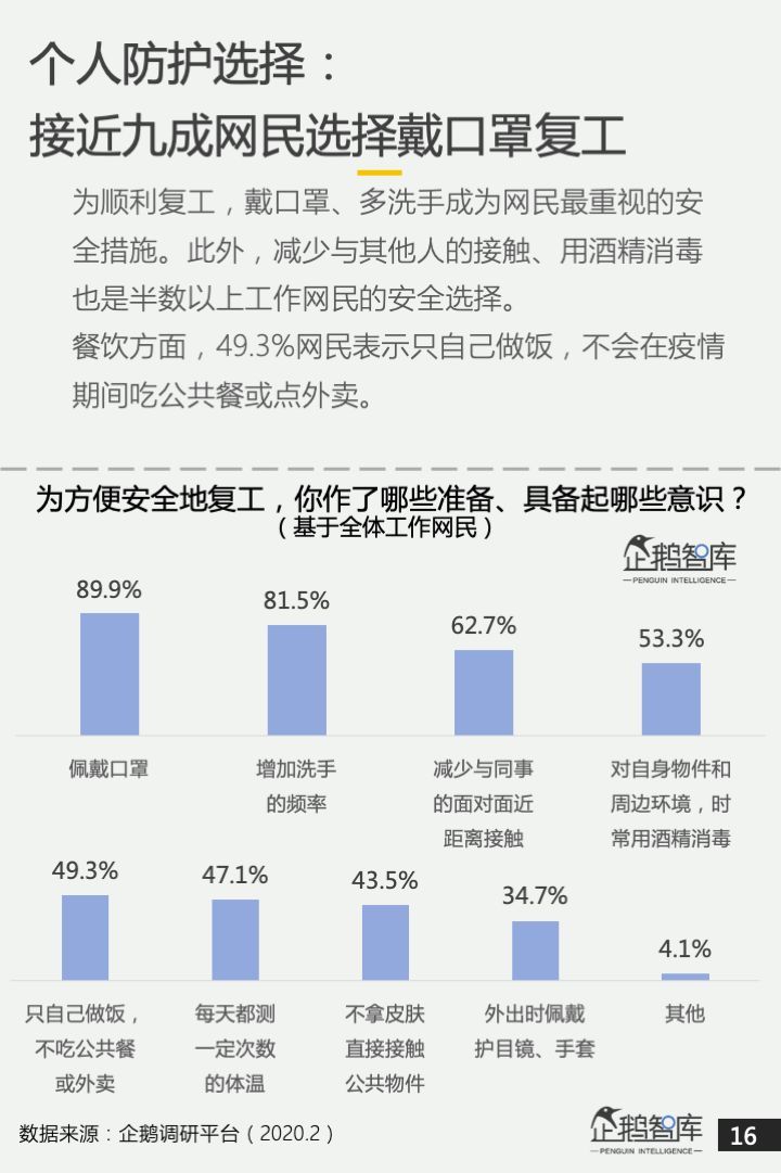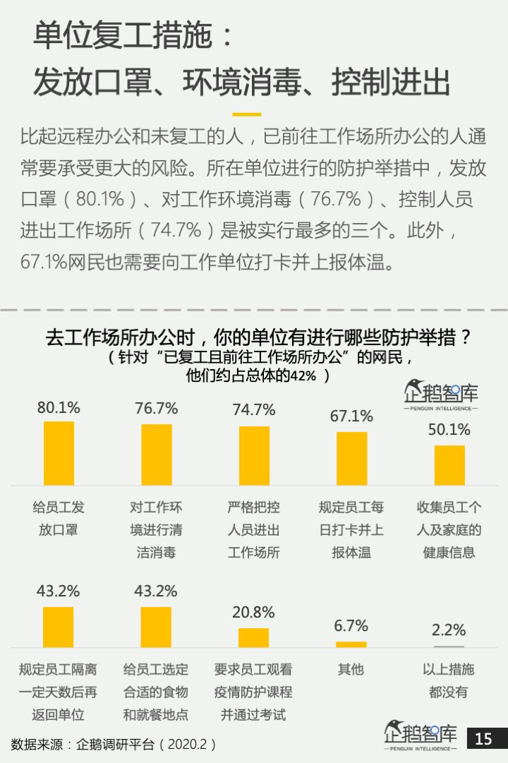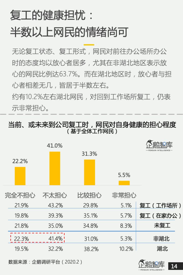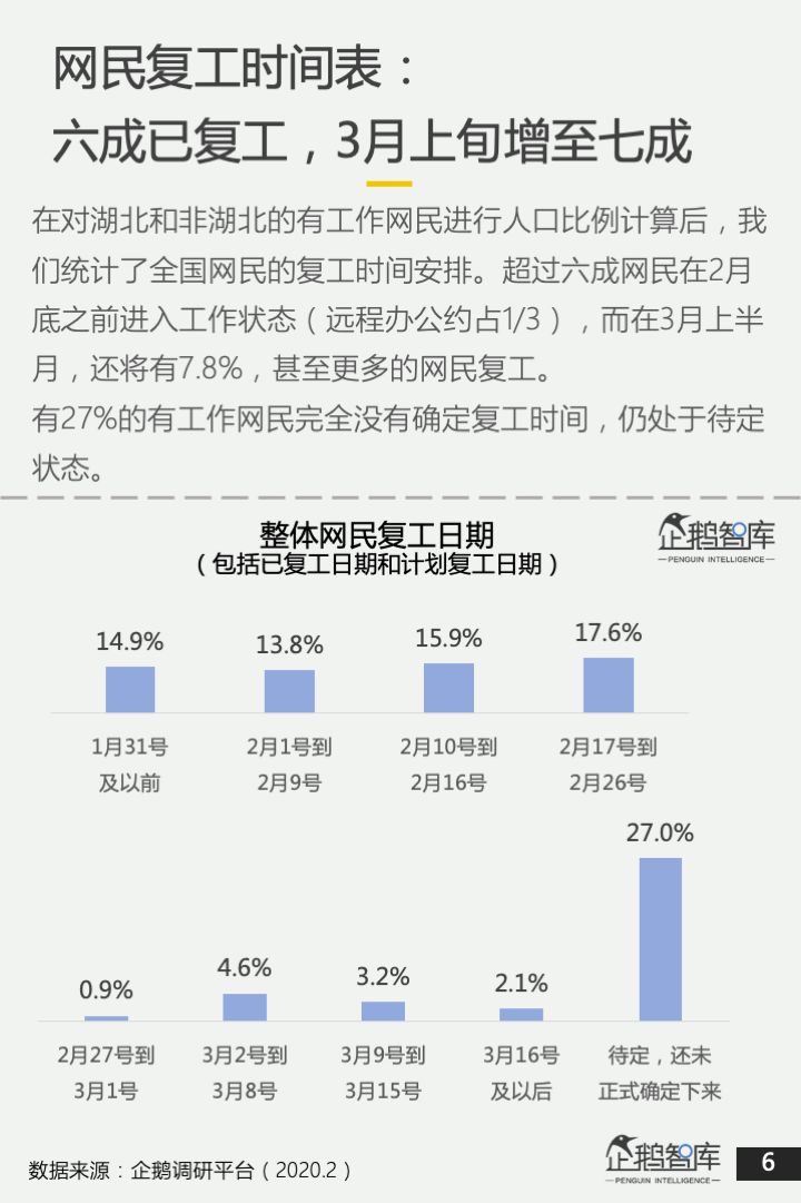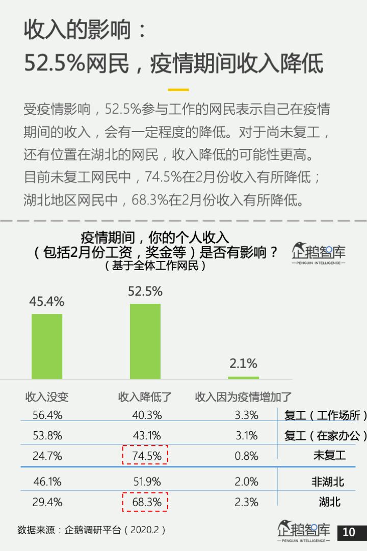 为了更好地了解全国及湖北网民的复工状况,大家对自身健康的防护,企业采取的措施,以及在疫情影响下,行业、企业与个人,面临的经济压力和收入增减,企鹅智库通过企鹅调研平台,对全国1416名网民(包括417名常住地为湖北地区的网民),进行了精准抽样调研,并在进行全国样本分析时,对湖北样本和非湖北样本进行了符合人口比例的重新配比,最终发布了这份研究报告。