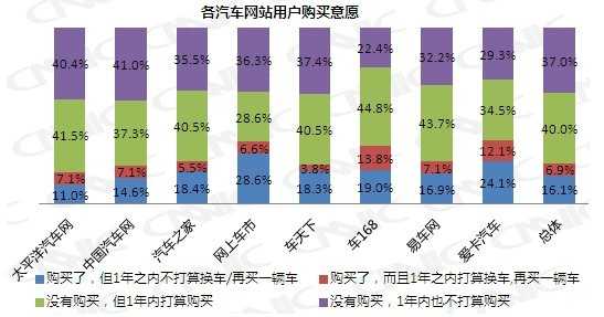 用户购买意愿:总体看来,一年内准备买车或者是更换车的用户比例高达46.9%,其中车168拥有高达58.6%的潜在购车用户比例,说明其目标用户精准覆盖比较突出。