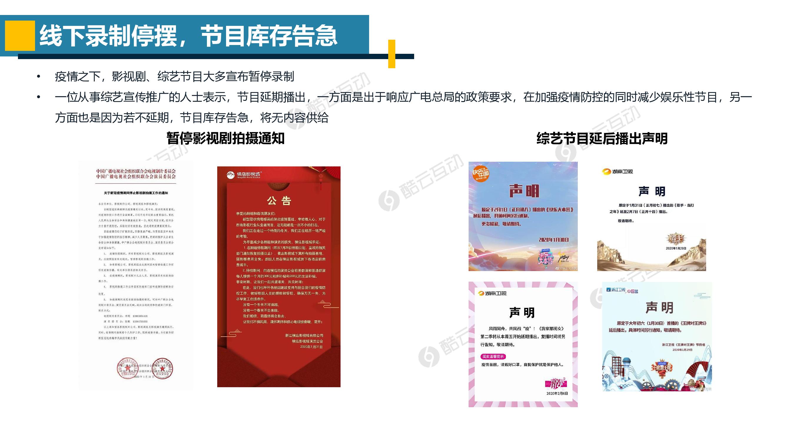 酷云互动:疫情下文娱行业自救指南 PDF版本将分享到199IT交流群,支持我们发展可加入! 更多阅读:酷云互动:2020中央广播电视总台春节联欢晚会关注表现报告酷云互动&秒针:2019年12月-2020年1月智能电视广告投放月度风向标酷云互动:甜宠剧分析报告酷云互动:疫情下的用户大屏触媒洞察分析报告(二)酷云互动:2019年3月智能电视广告投放月度风向标酷云互动:70周年献礼剧洞察报告酷云互动:关于电视,那些颠覆“三观”的认知报告氪体&酷云互动:2019体育赛事电视大屏风向标报告酷云互动:泛北京电视用户行为指南酷云互动:中国电视用户家庭差异洞察报告酷云互动:疫情之下的下沉市场酷云互动:618电视广告效果洞察报告酷云互动:2020年1-4月明星影响力洞察报告酷云互动:2020年4-5月智能电视广告投放月度风向标酷云互动&秒针:2020年2月-2020年3月智能电视广告投放月度风向标