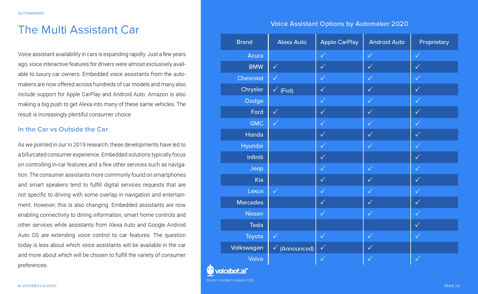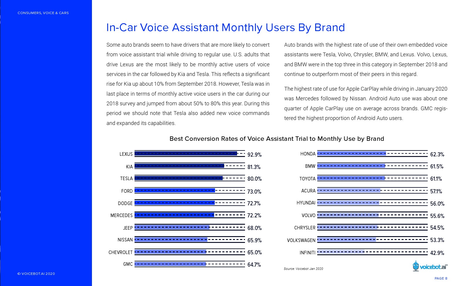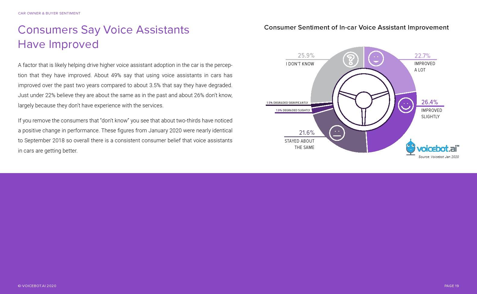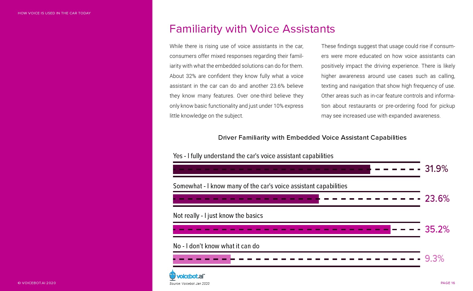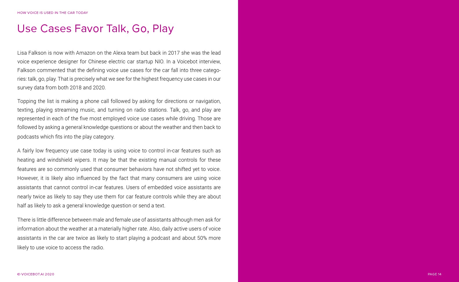 与智能音箱相比,车内语音助手的总用户和月度活跃用户更多。Voicebot.ai在2019年的报告中已经证明了这一点,现在仍然是正确的。人们可能很容易忽视汽车中正在发生的语音革命。