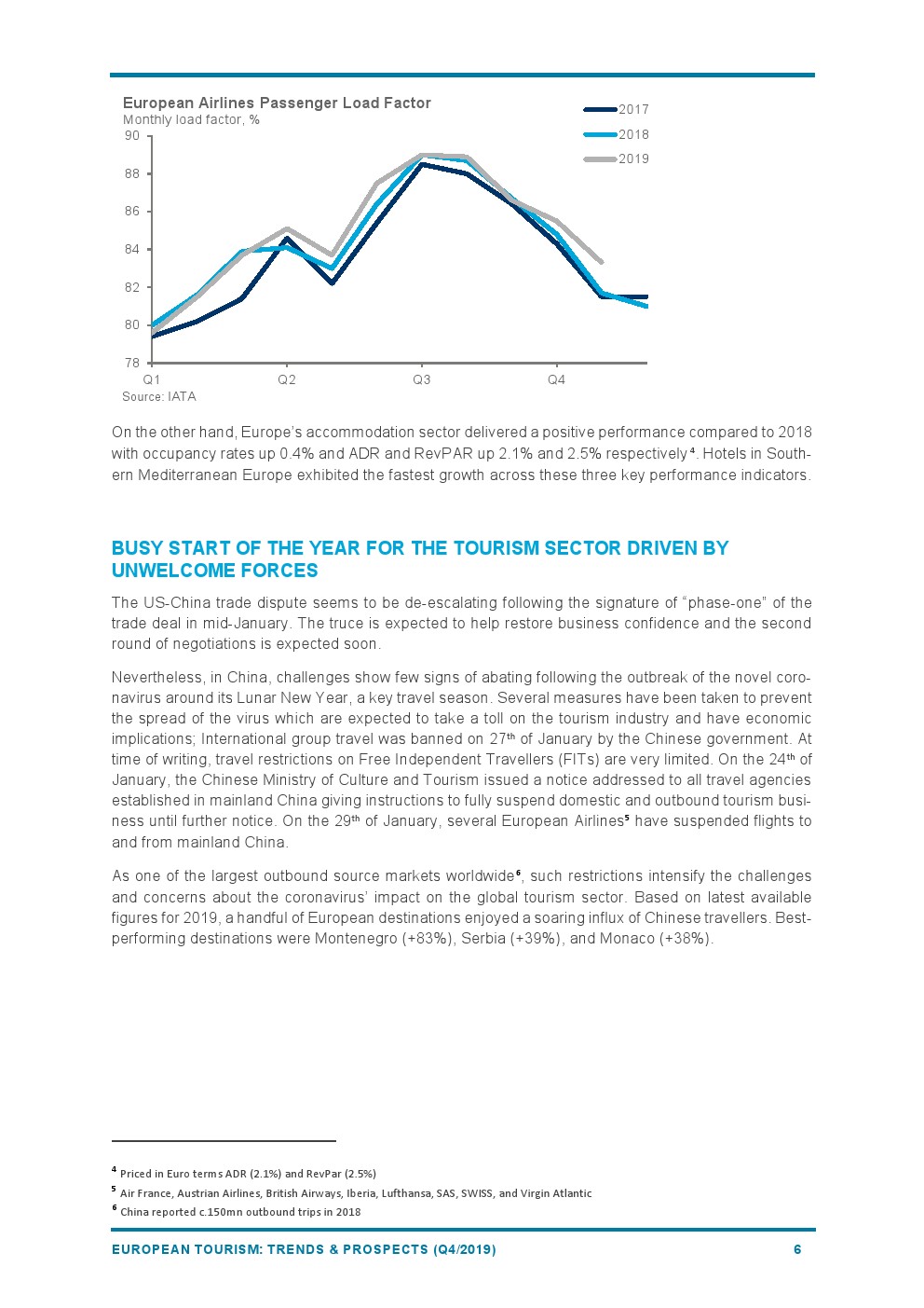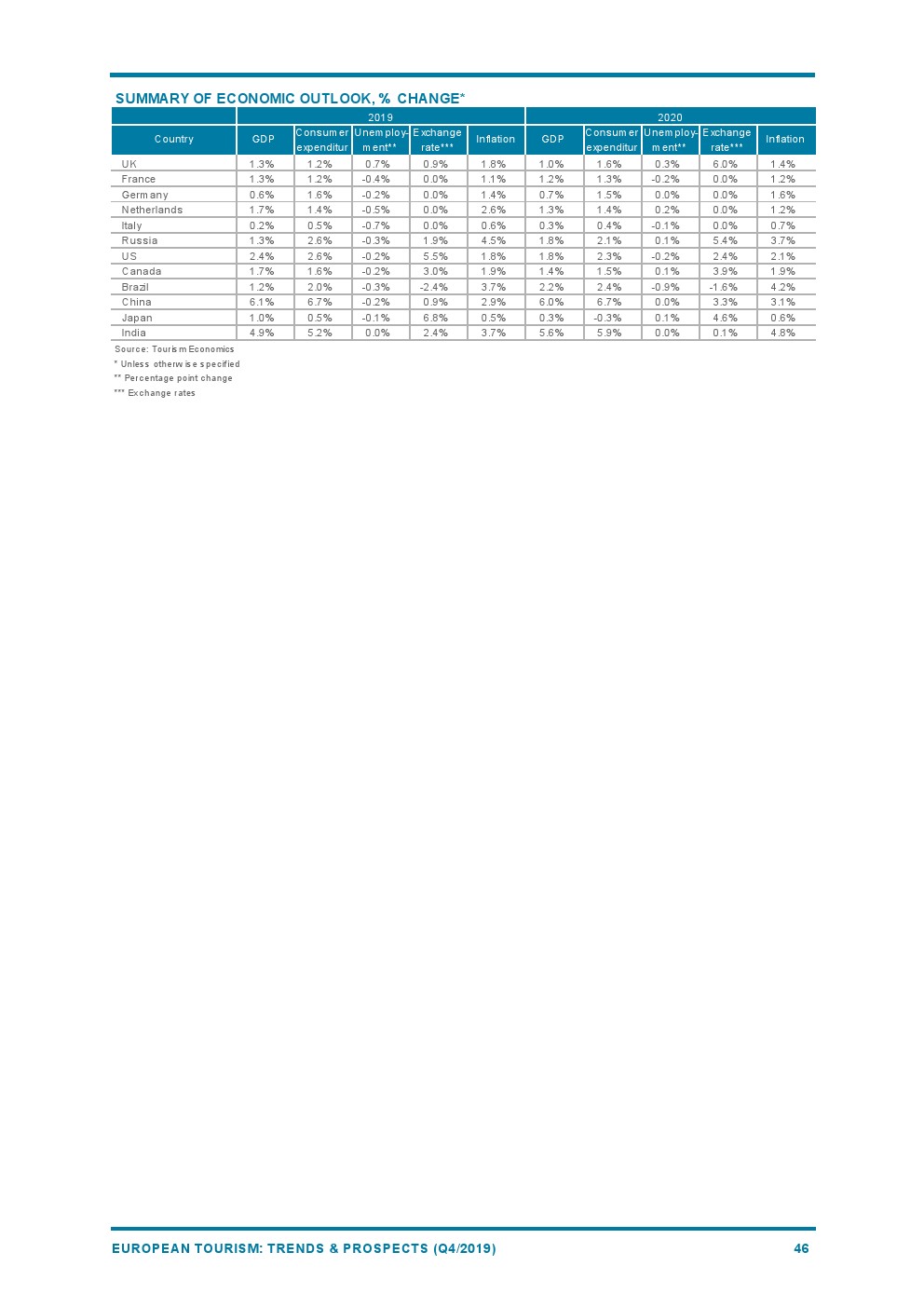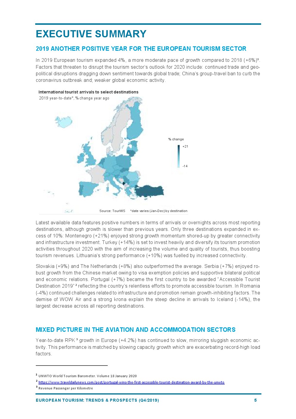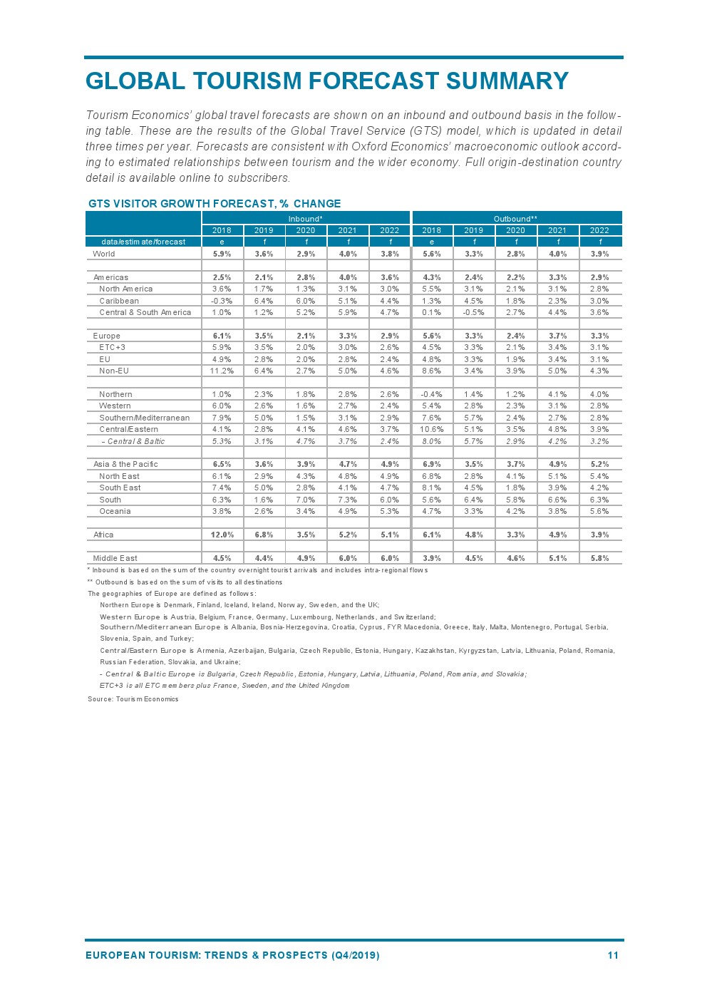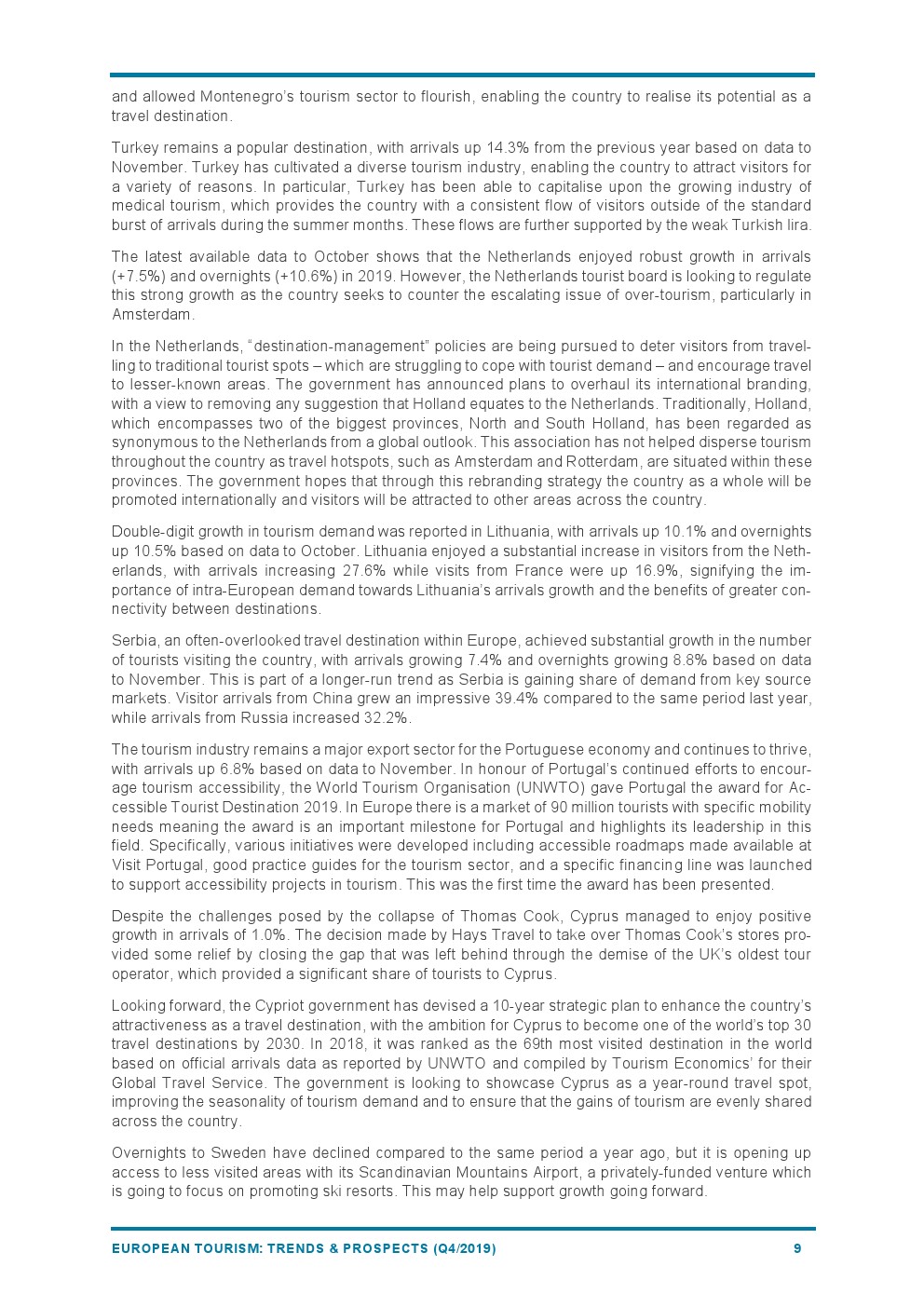 2019年欧洲旅游业增长4%,与2018年(+6%)相比增长速度较为温和。