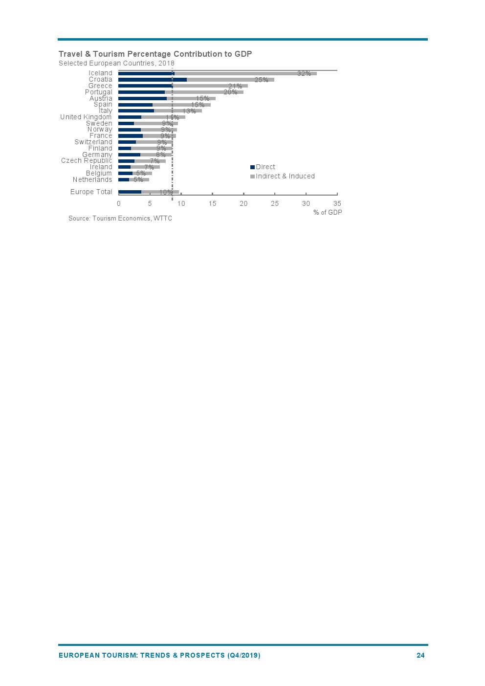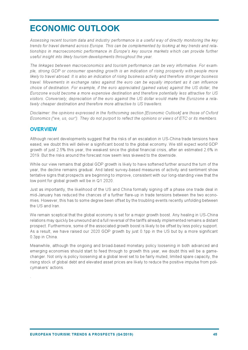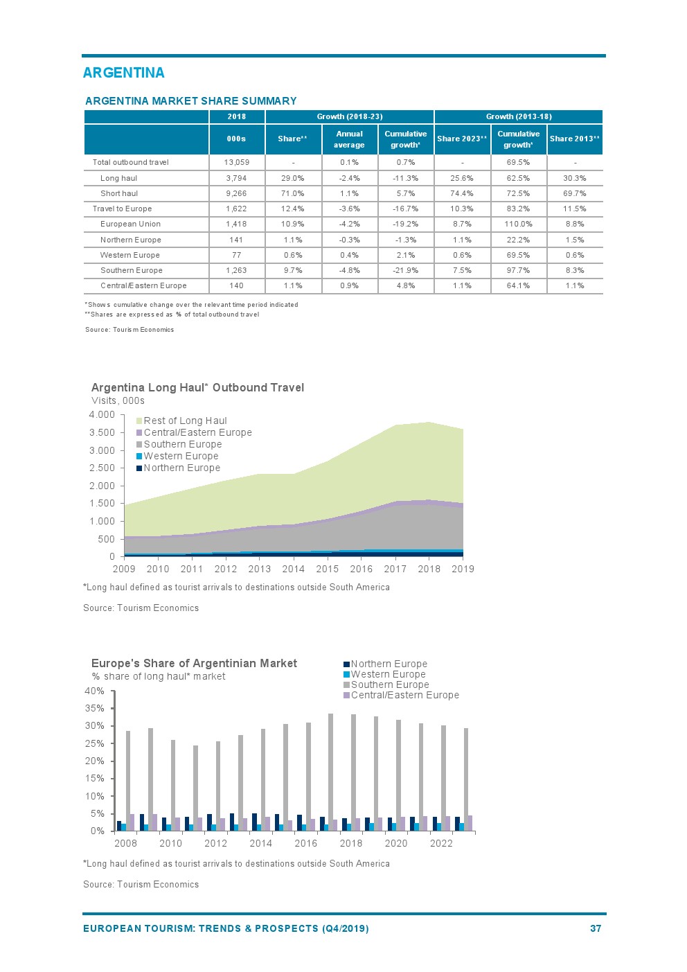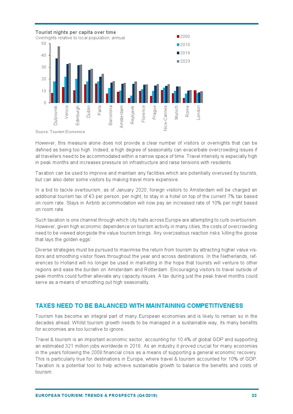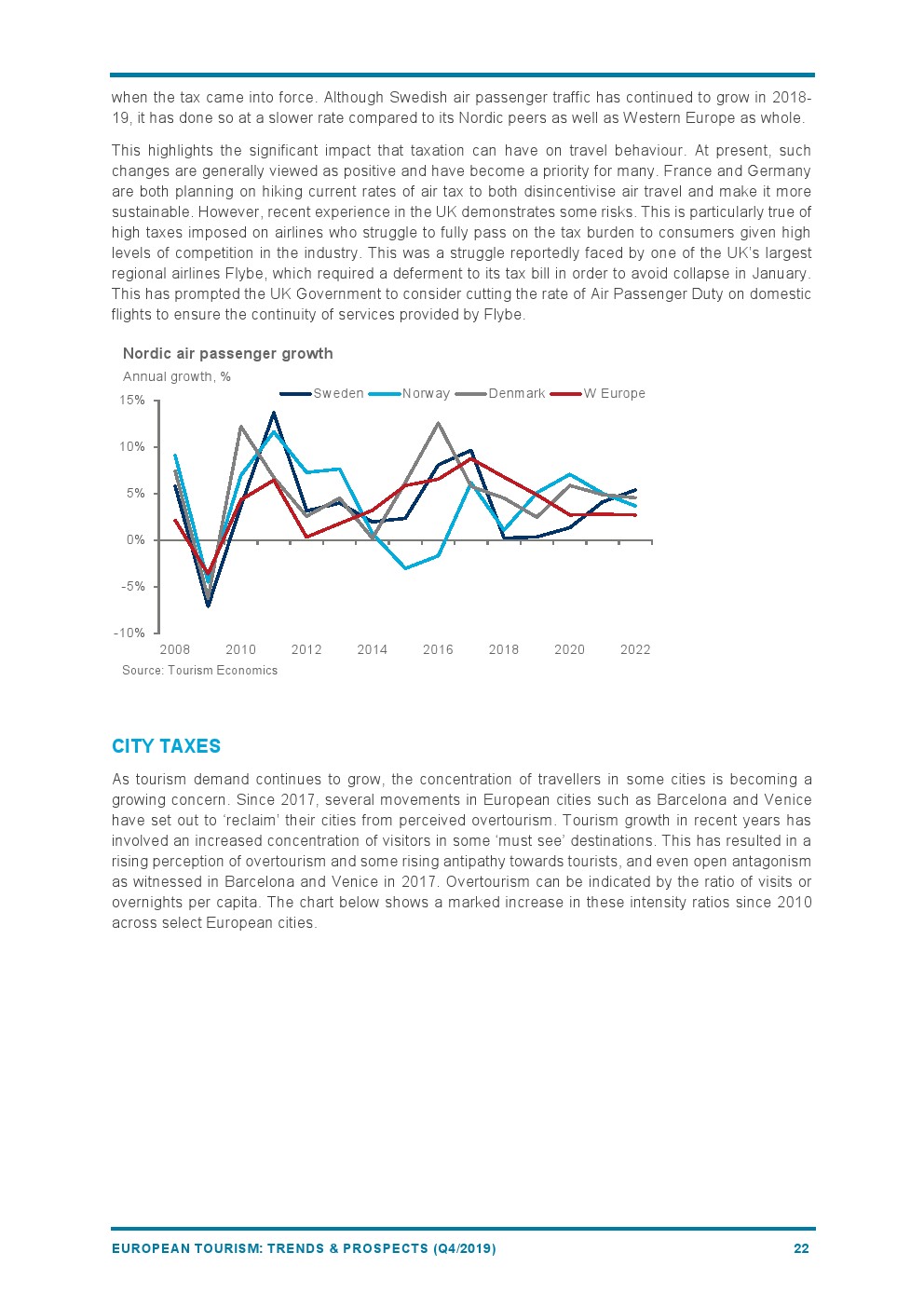 2019年欧洲旅游业增长4%,与2018年(+6%)相比增长速度较为温和。