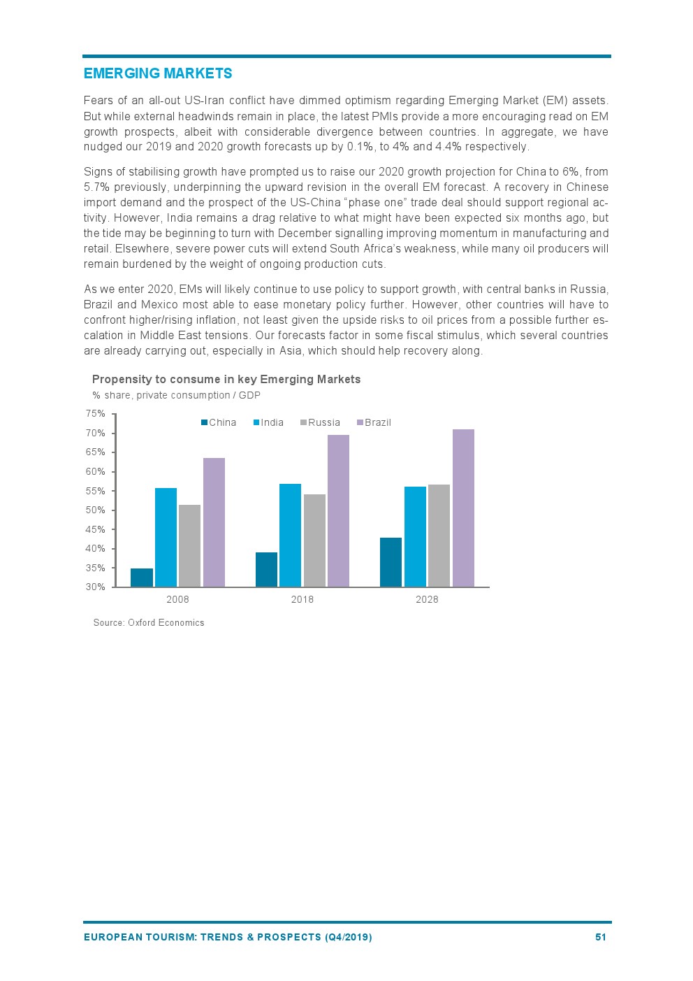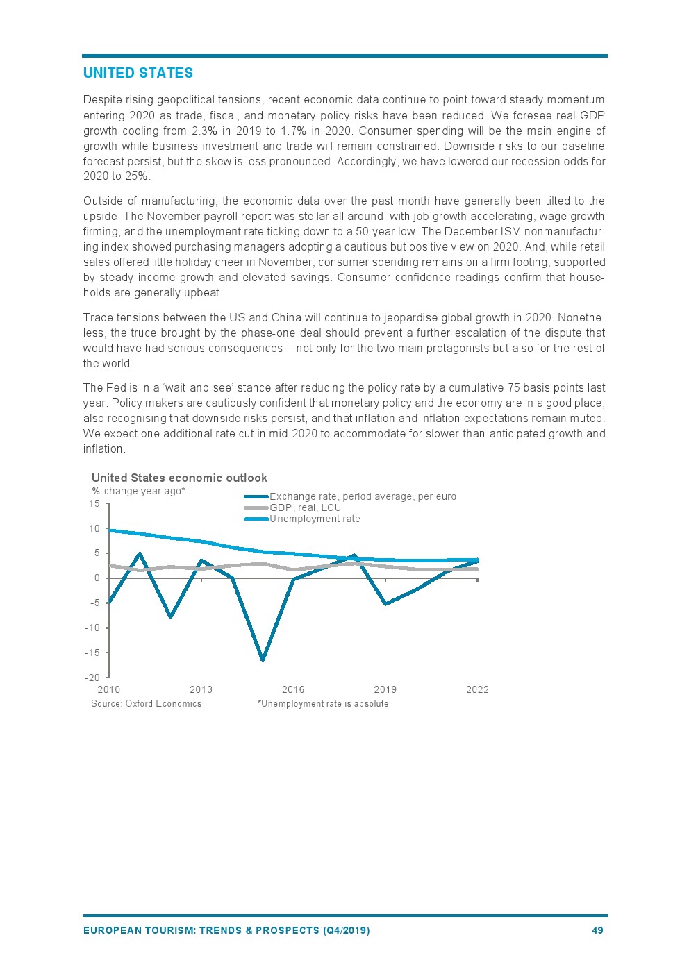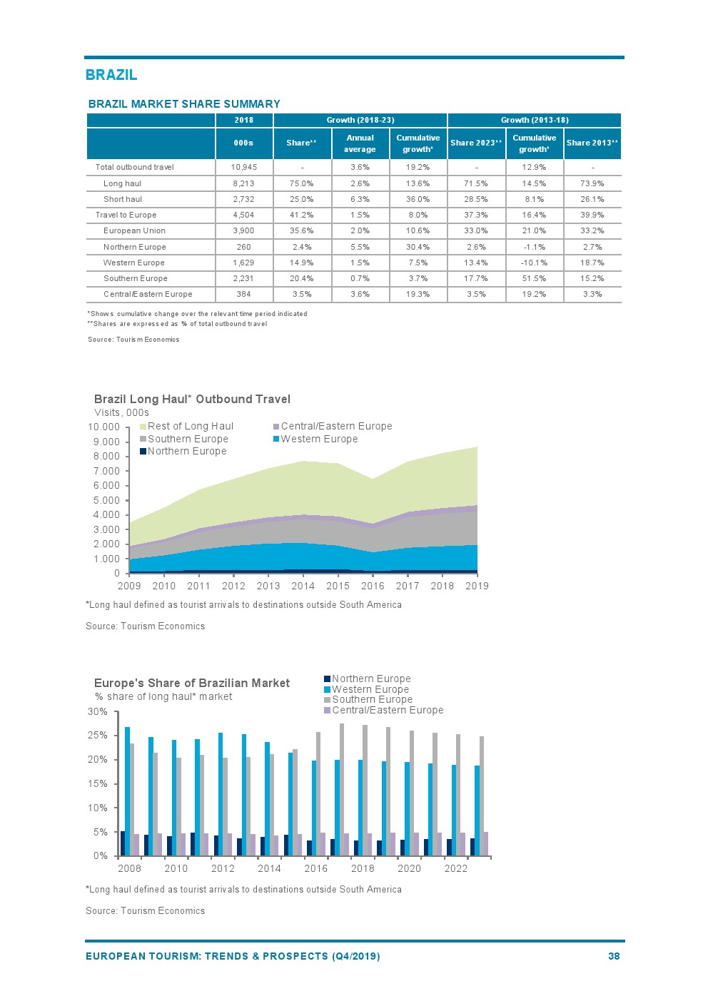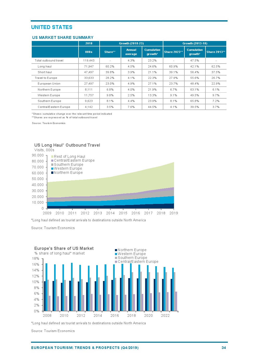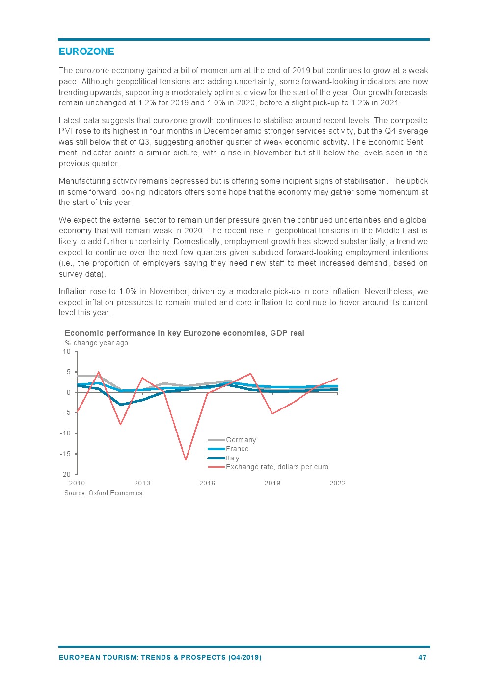2019年欧洲旅游业增长4%,与2018年(+6%)相比增长速度较为温和。