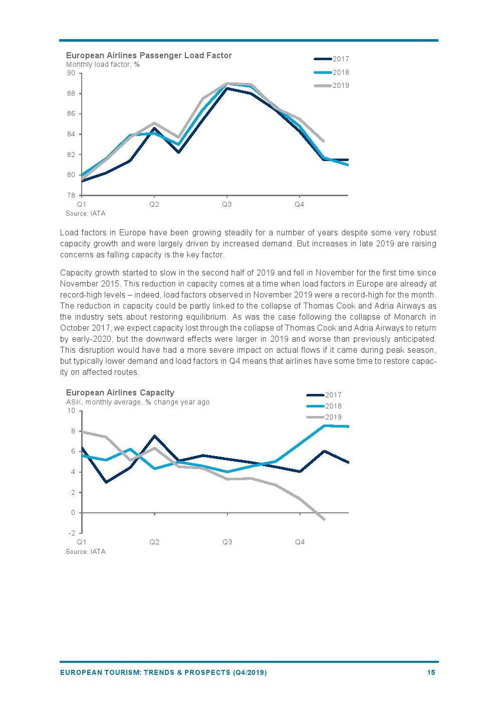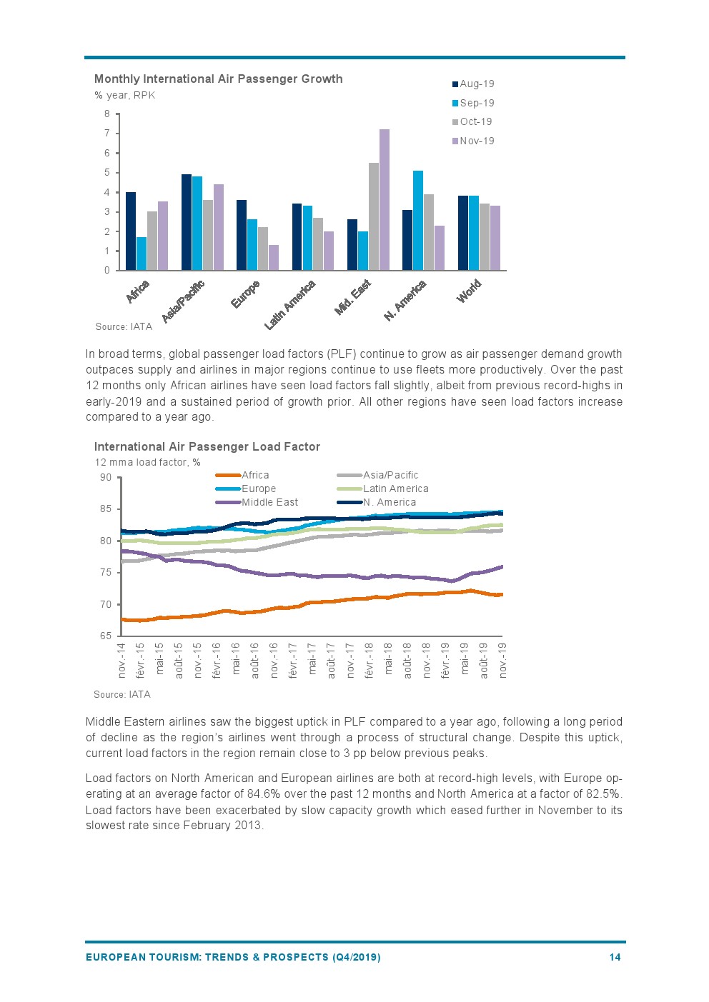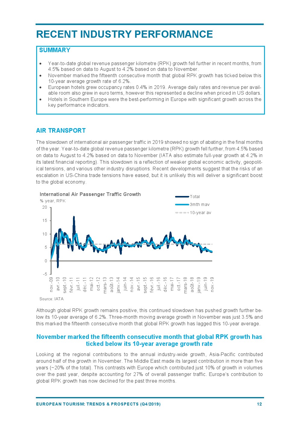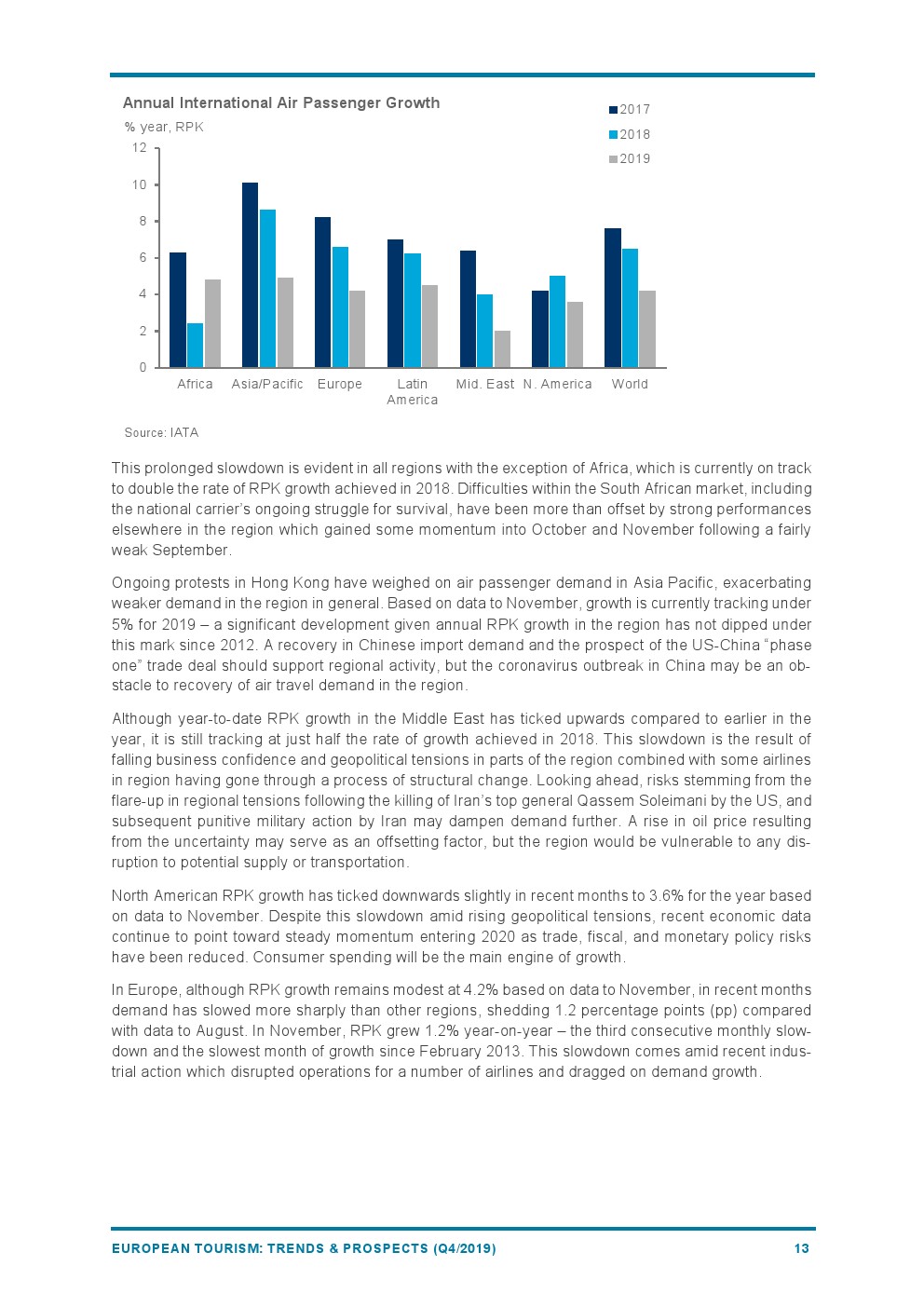欧洲的RPK增长(+4.2%)继续放缓,反映出经济活动疲软。