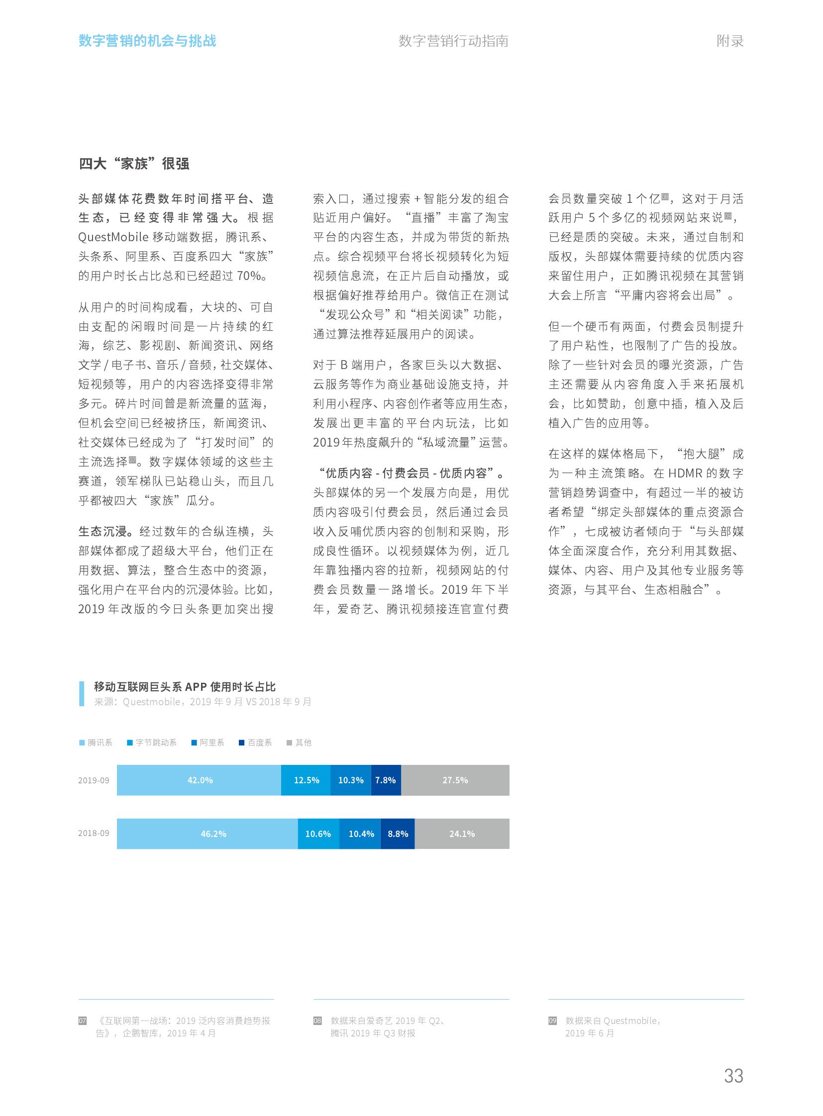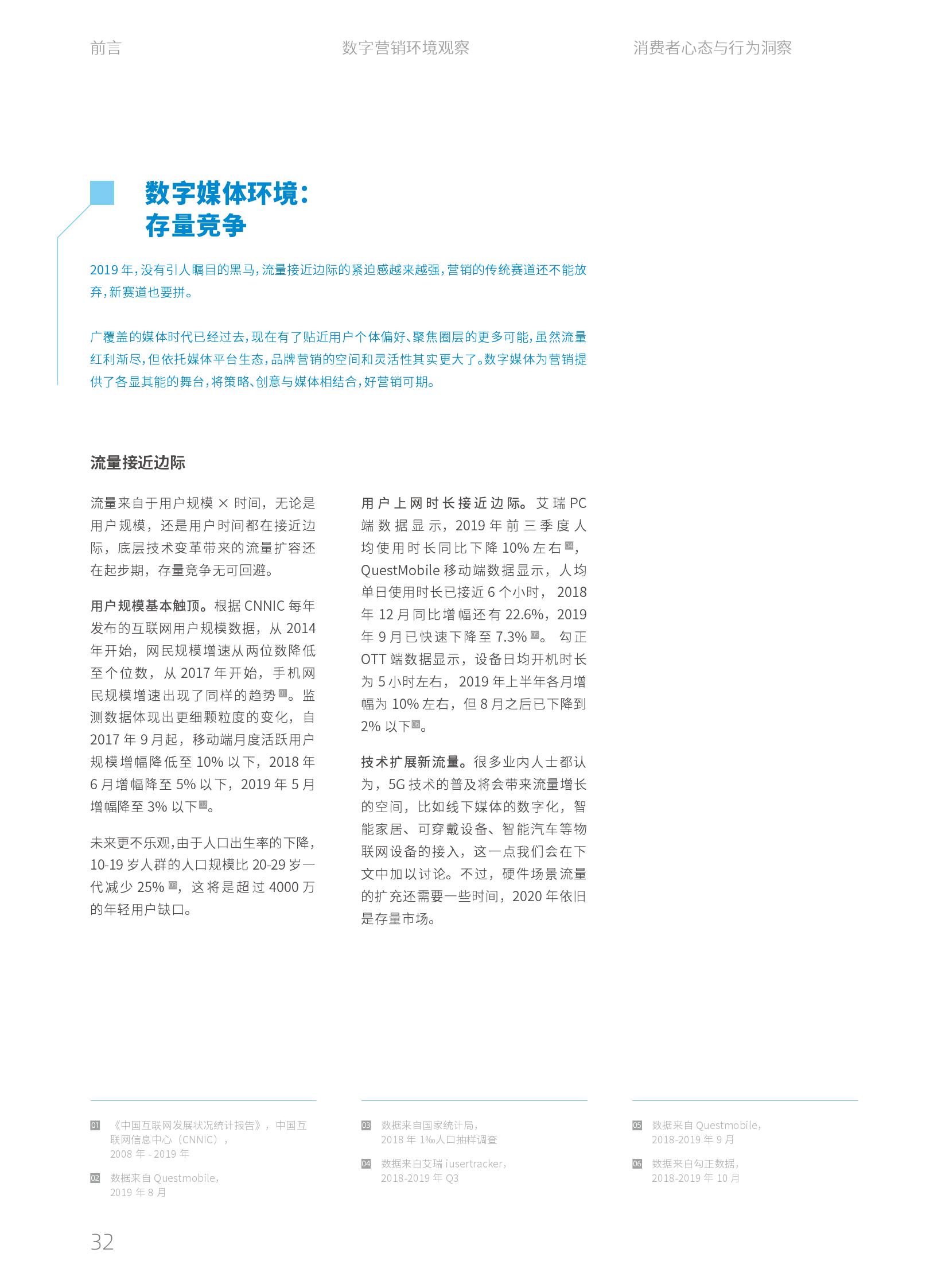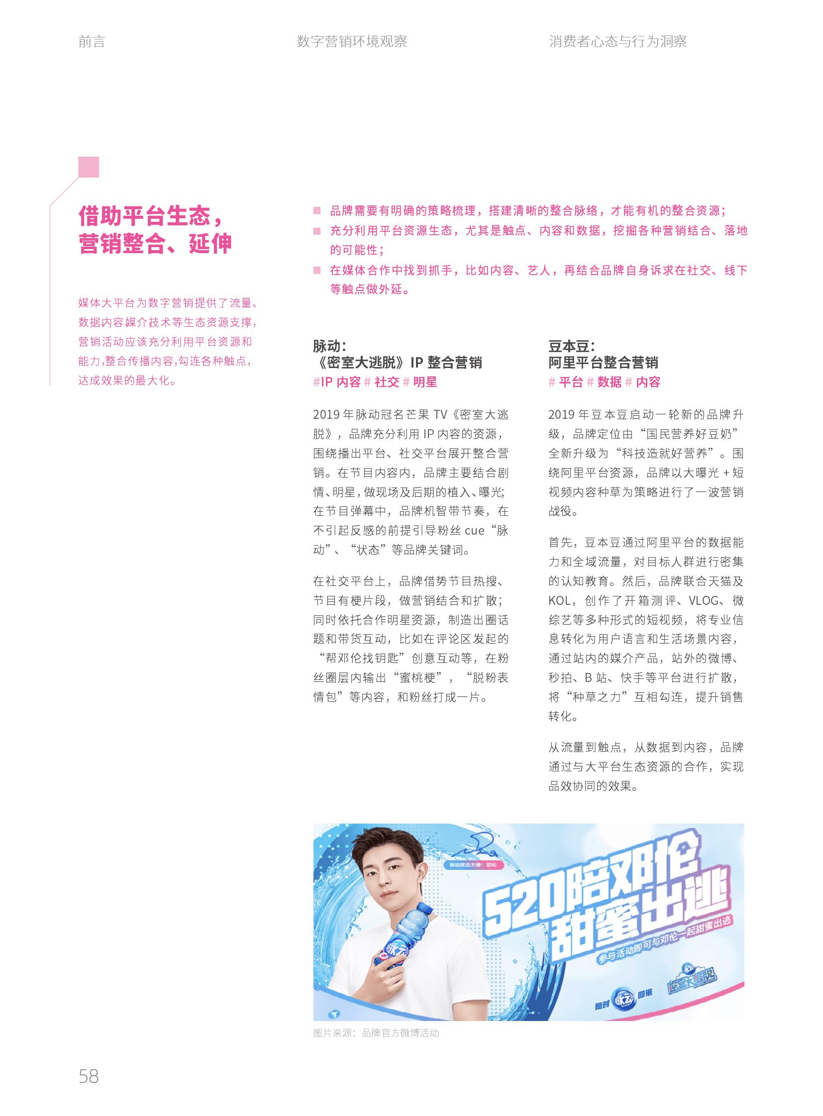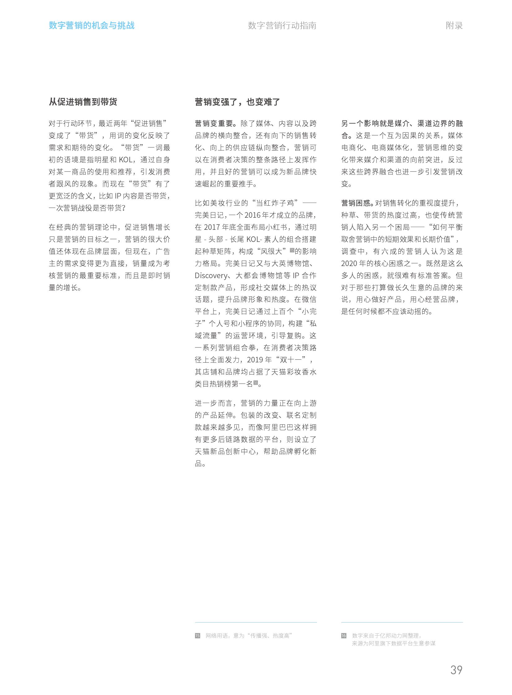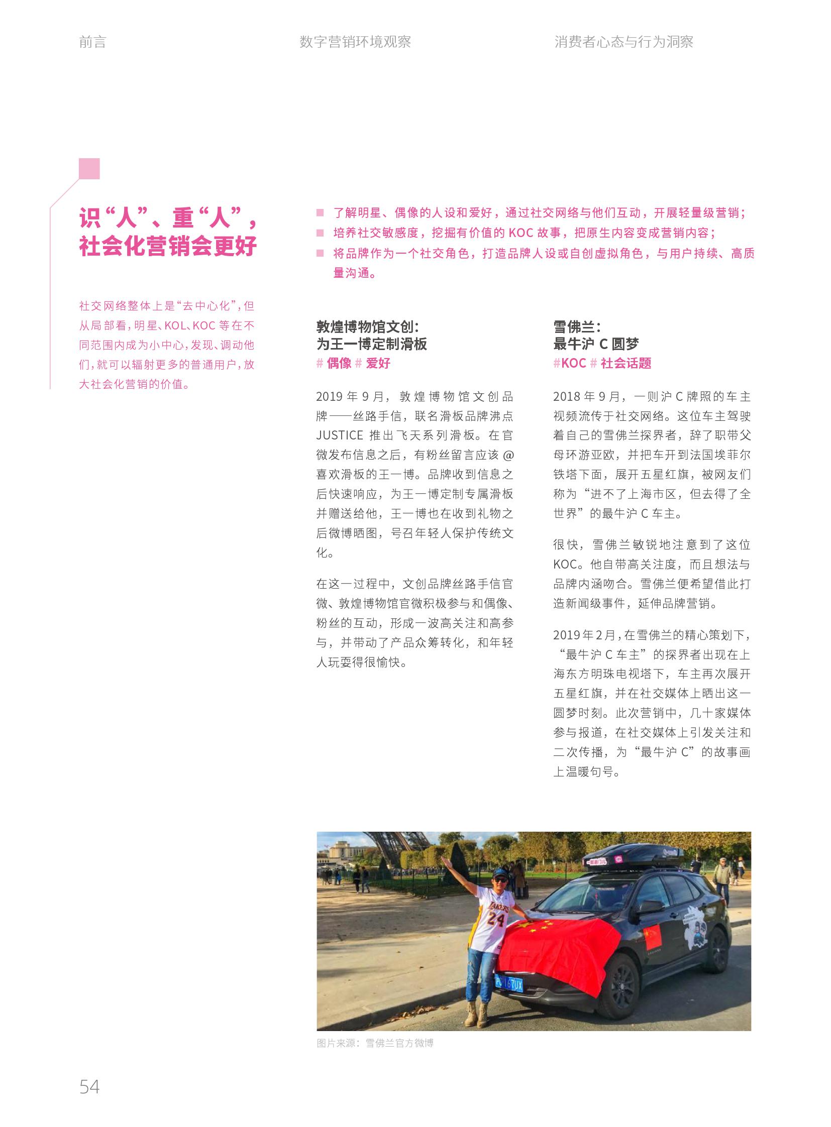 HDMR:2020中国数字营销行动报告 2020年消费发展的主体方向依旧是持续升级。 市场的主要机会,一是存量市场中的大规模升级需求,尤其是被称为香饽饽的“下沉市场”;二是引领未来走向的年轻群体的创新需求。2020年,90后步入30岁,00后初登舞台,新的年轻人正在改演现实。 2020年,我们提倡回归数字营销本身——消费者、媒介、平台等基础因素,深度思考它们所面对的变化和影响,然后形成眼前的对策。 PDF版本将分享到199IT交流群,支持我们发展可加入! 更多阅读:华扬数字:2018中国数字营销行动报告华扬联众:2015年中国数字营销行动报告华扬联众:2014年中国数字营销行动报告消费者品牌报告:寻找真相德勤咨询:2020中国与全球企业人工智能应用现状调研中国旅游研究院:2020中国冰雪旅游发展Falcon:2021年数字营销趋势报告Altimeter:2020年数字营销状况报告Salesforce:2021年营销报告CMO和C级高管报告:伙伴关系的基因Ascend2:2021年意图数据报告HCR:数字营销创新应用及趋势研究报告数字营销之战: 首席营销官(CMO)Vs.首席信息官(CIO)Razorfish:2015年全球数字营销报告Adobe:2014亚太区数字营销业绩报告