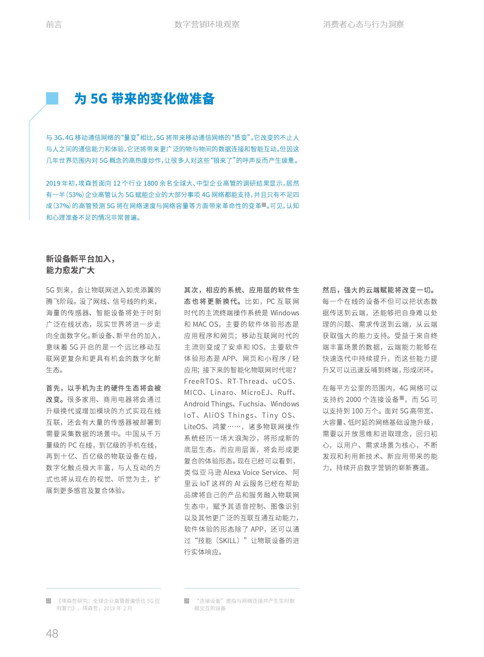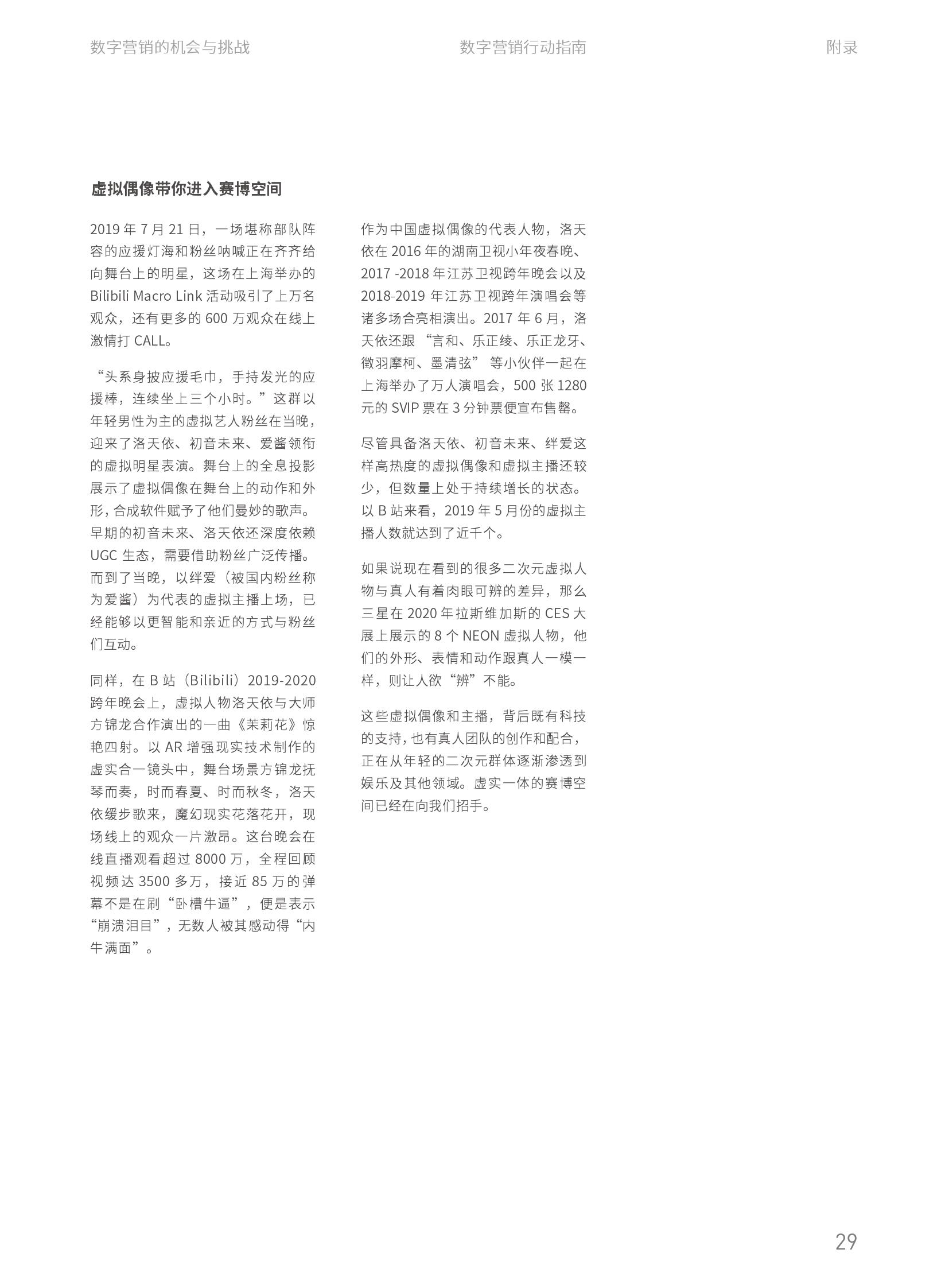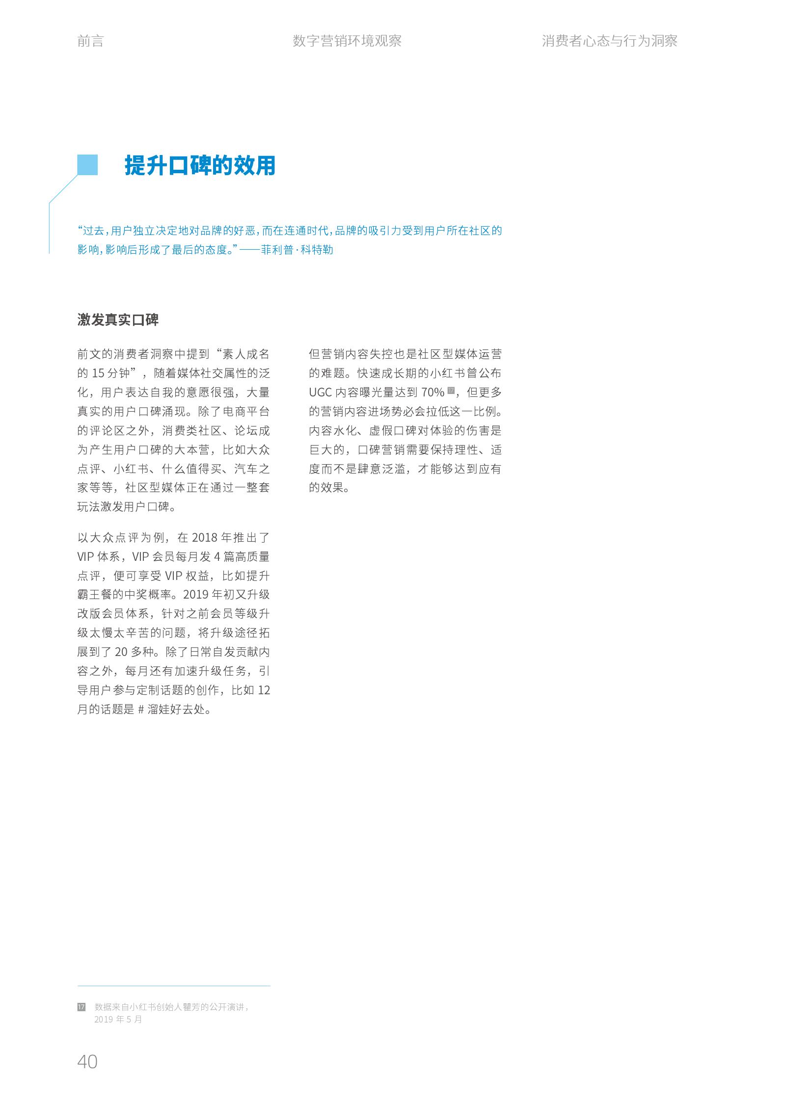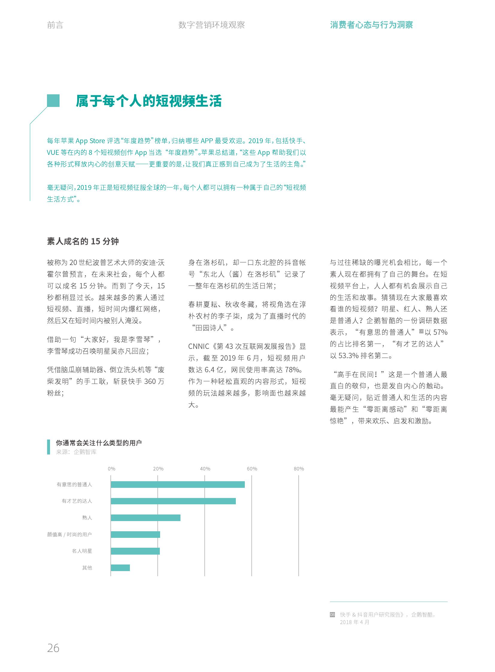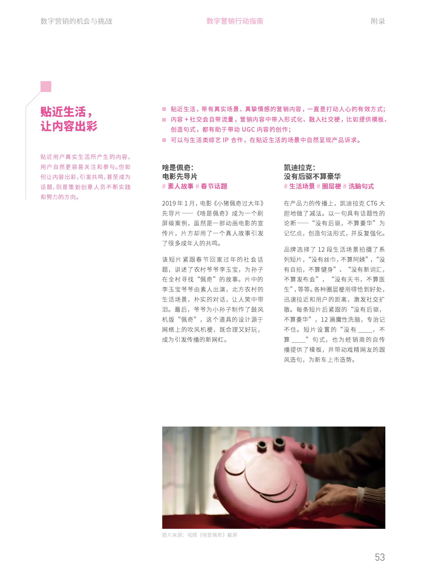 HDMR:2020中国数字营销行动报告 2020年消费发展的主体方向依旧是持续升级。 市场的主要机会,一是存量市场中的大规模升级需求,尤其是被称为香饽饽的“下沉市场”;二是引领未来走向的年轻群体的创新需求。2020年,90后步入30岁,00后初登舞台,新的年轻人正在改演现实。 2020年,我们提倡回归数字营销本身——消费者、媒介、平台等基础因素,深度思考它们所面对的变化和影响,然后形成眼前的对策。 PDF版本将分享到199IT交流群,支持我们发展可加入! 更多阅读:华扬数字:2018中国数字营销行动报告华扬联众:2015年中国数字营销行动报告华扬联众:2014年中国数字营销行动报告消费者品牌报告:寻找真相德勤咨询:2020中国与全球企业人工智能应用现状调研中国旅游研究院:2020中国冰雪旅游发展Falcon:2021年数字营销趋势报告Altimeter:2020年数字营销状况报告Salesforce:2021年营销报告CMO和C级高管报告:伙伴关系的基因Ascend2:2021年意图数据报告HCR:数字营销创新应用及趋势研究报告数字营销之战: 首席营销官(CMO)Vs.首席信息官(CIO)Razorfish:2015年全球数字营销报告Adobe:2014亚太区数字营销业绩报告