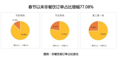 更多用户通过外卖平台下单购买生鲜果蔬、日常用品和药品等生活必需品,复工以后非餐品类继续保持平稳增速,疫情让人们逐渐形成了新的生活方式和消费习惯。