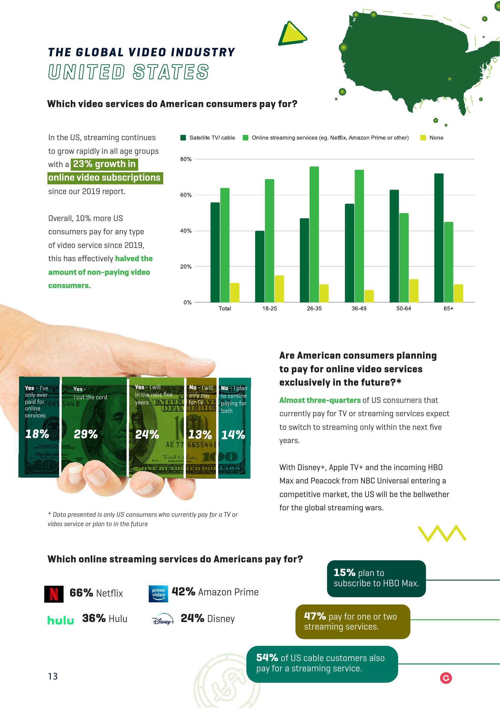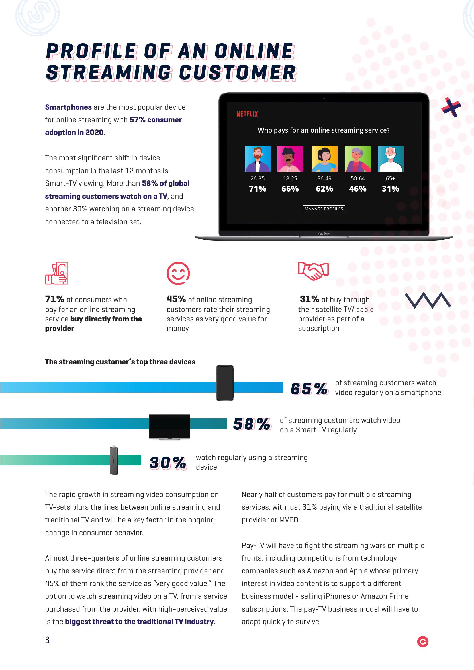 随着流媒体大战在2020年开始成形,在线流媒体的全球普及率已达到55%,超过了付费电视普及率的50%。