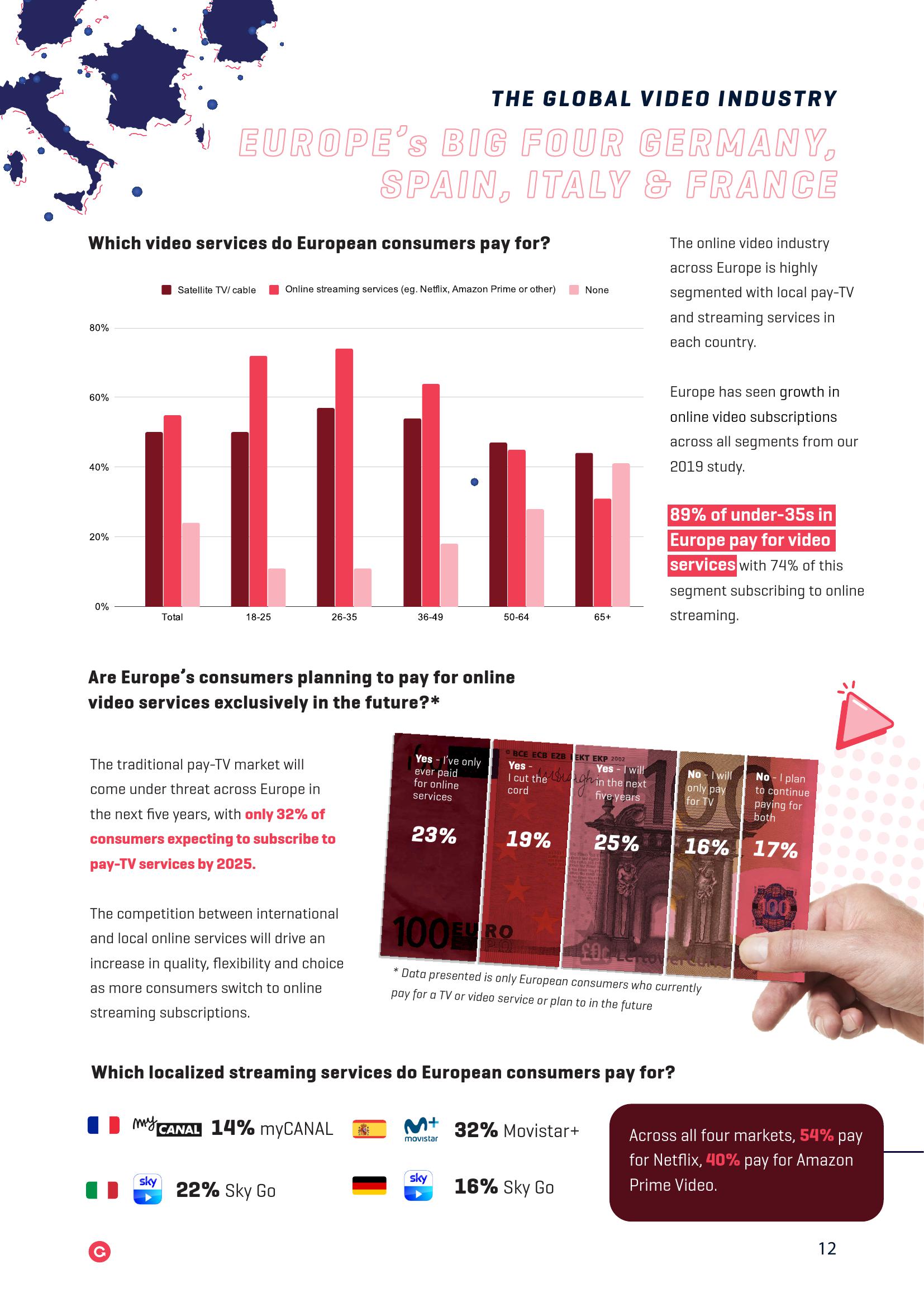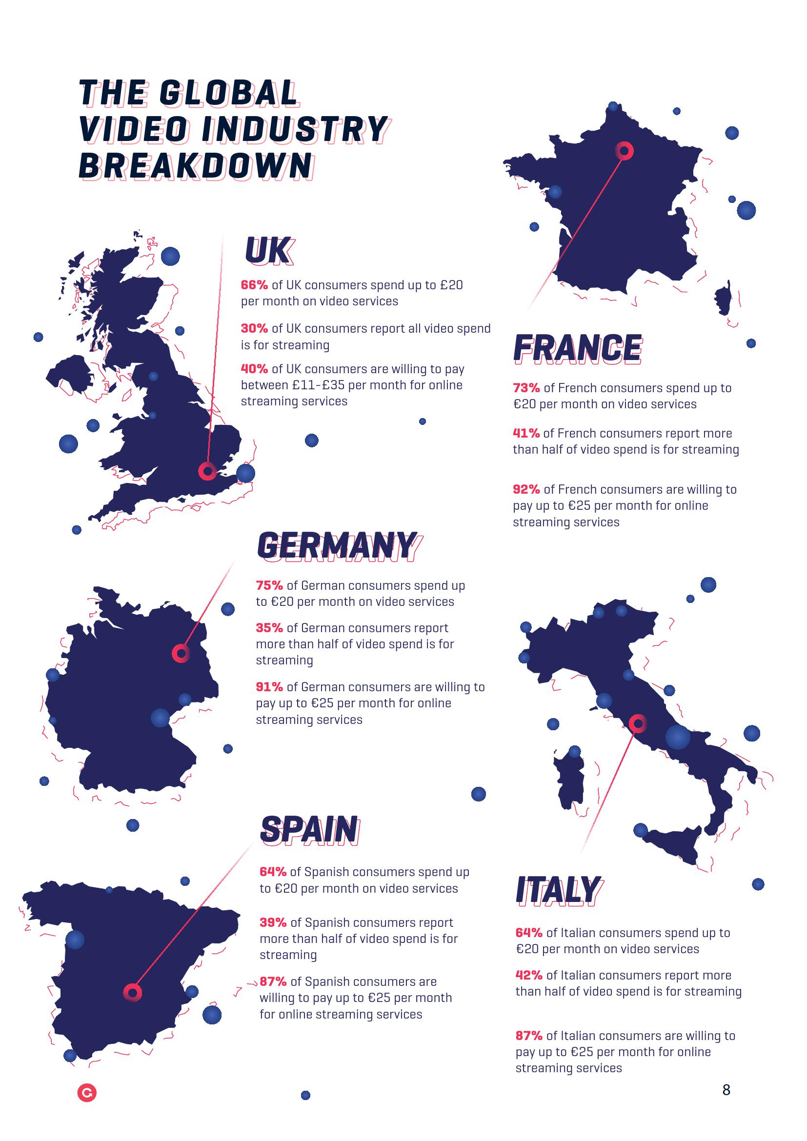 该报告还强调了消费者愿意为在线流媒体服务支付的金额。在英国,有40%的消费者表示他们愿意为在线视频服务每月支付高达35英镑的费用,而在美国,这一比例上升到47%。