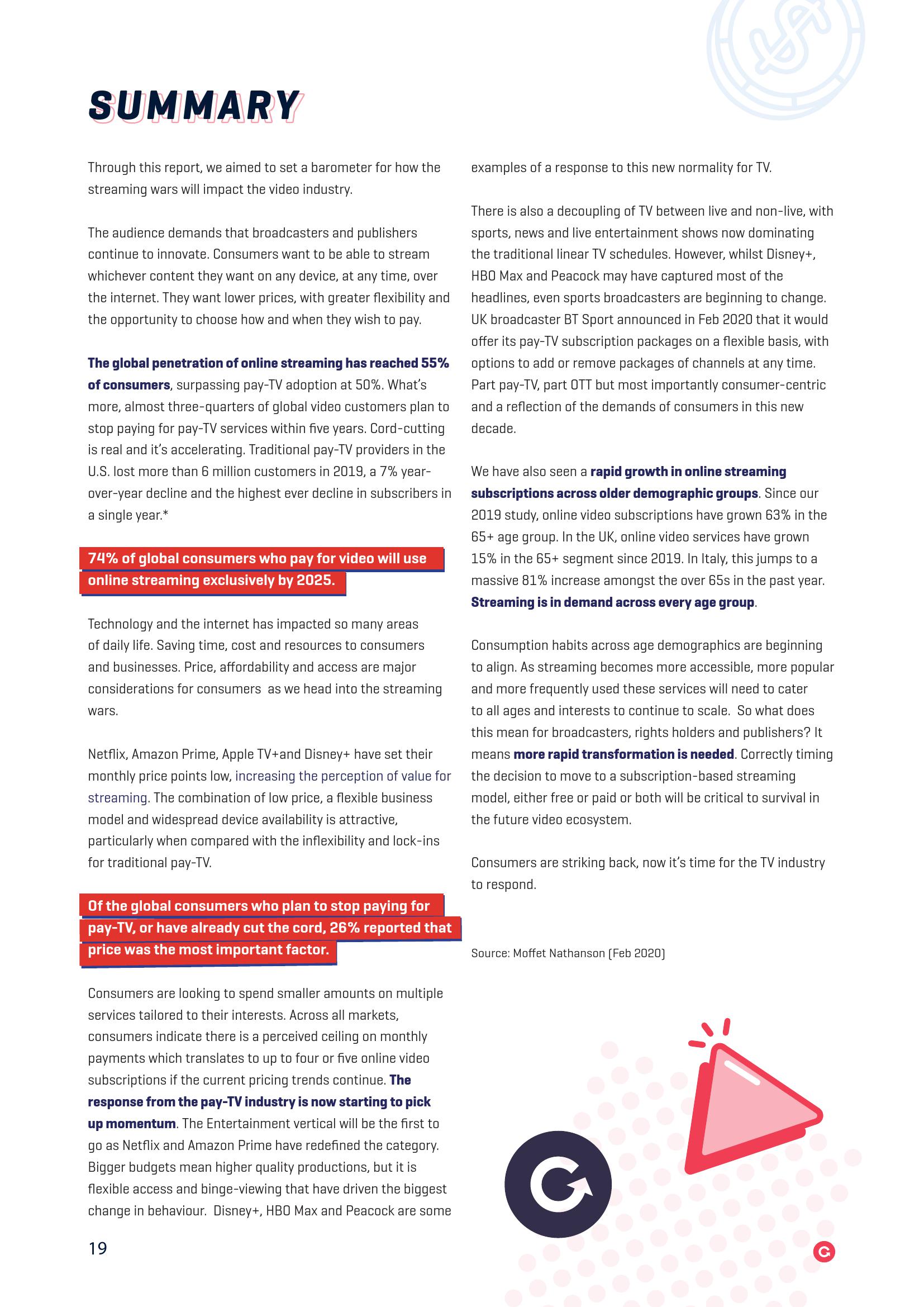 随着迪士尼(Disney)、苹果(Apple)、NBC环球(NBC Universal)和华纳媒体(WarnerMedia)等主要公司的加入,视频行业一直在为流媒体战争做准备。这些新服务的影响反映在报告中的消费者反馈中。