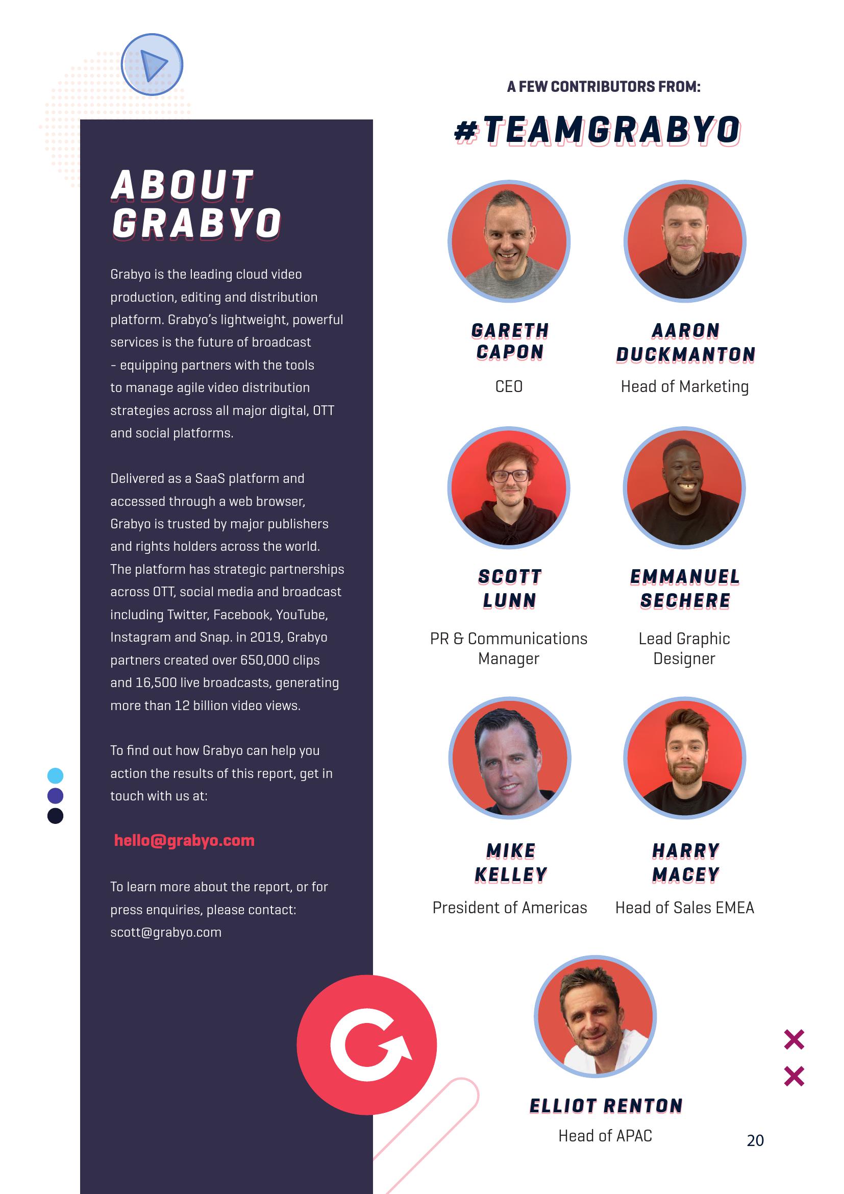Grabyo首席执行官加雷斯·卡彭(Gareth Capon)评论道:“到2020年,我们将看到流媒体战争对观看习惯的真正影响,这对更广泛的视频行业意味着什么?广播公司,权利持有者和出版商需要迎合正在远离传统电视的观众。灵活性、访问权限和价格对消费者而言很重要,这意味着提供反映这些需求的多平台视频策略。向云服务的过渡将支持这一转变,但是这些变化需要加速进行。我们的最新报告显示,流媒体不再是年轻人群的专利,所有消费者的观看偏好都开始趋于一致。”