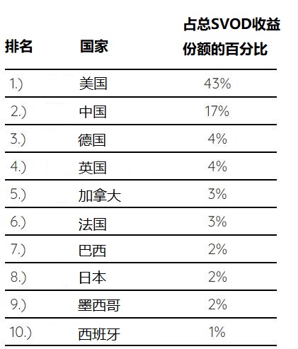 到2025年,全球消费者在SVOD服务上的支出将增长到1028.6亿美元(约917亿欧元)。 其中,美国将占44%,其次是中国(15%)和德国(5%)。