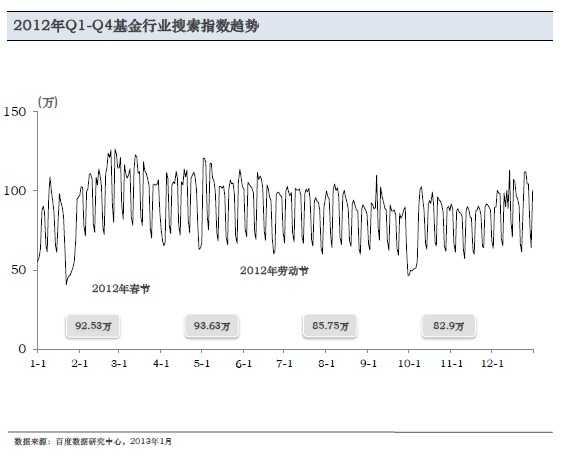 2012年基金行业日均搜索指数88.7万,较11年下降6.3个百分点