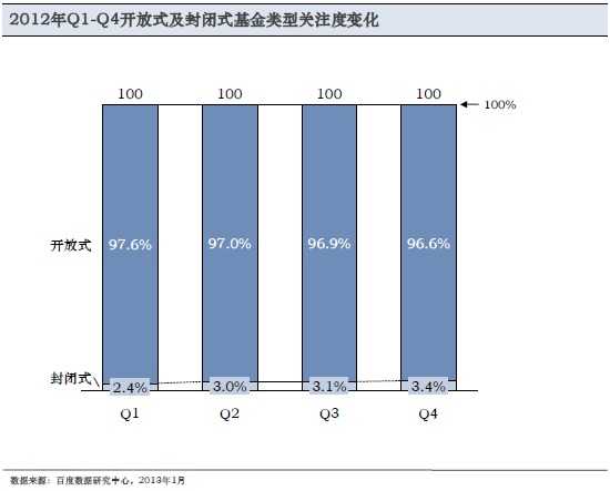 封闭式基金关注度从Q1的2.4%提升1个百分点达到Q4的3.4%。