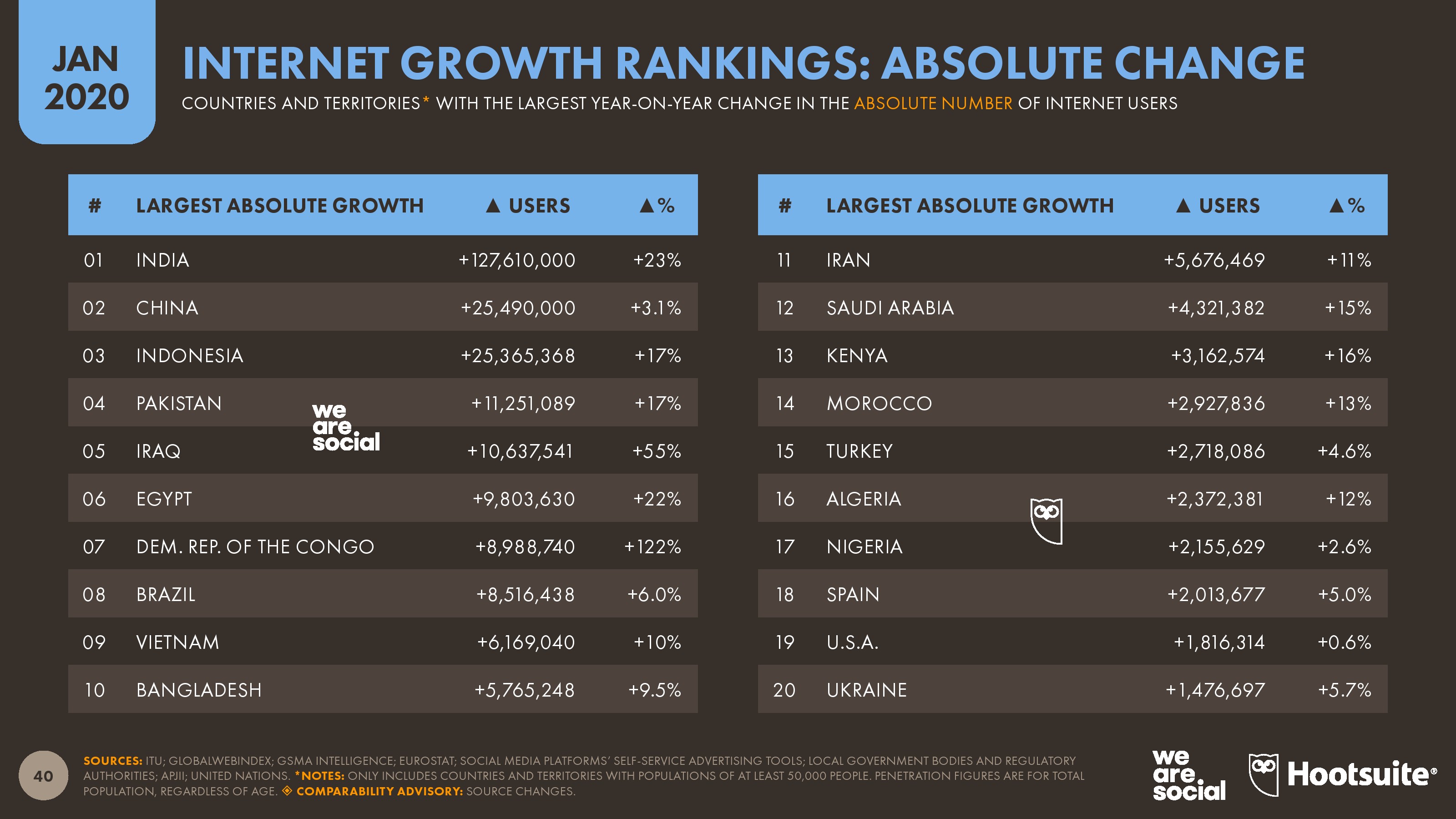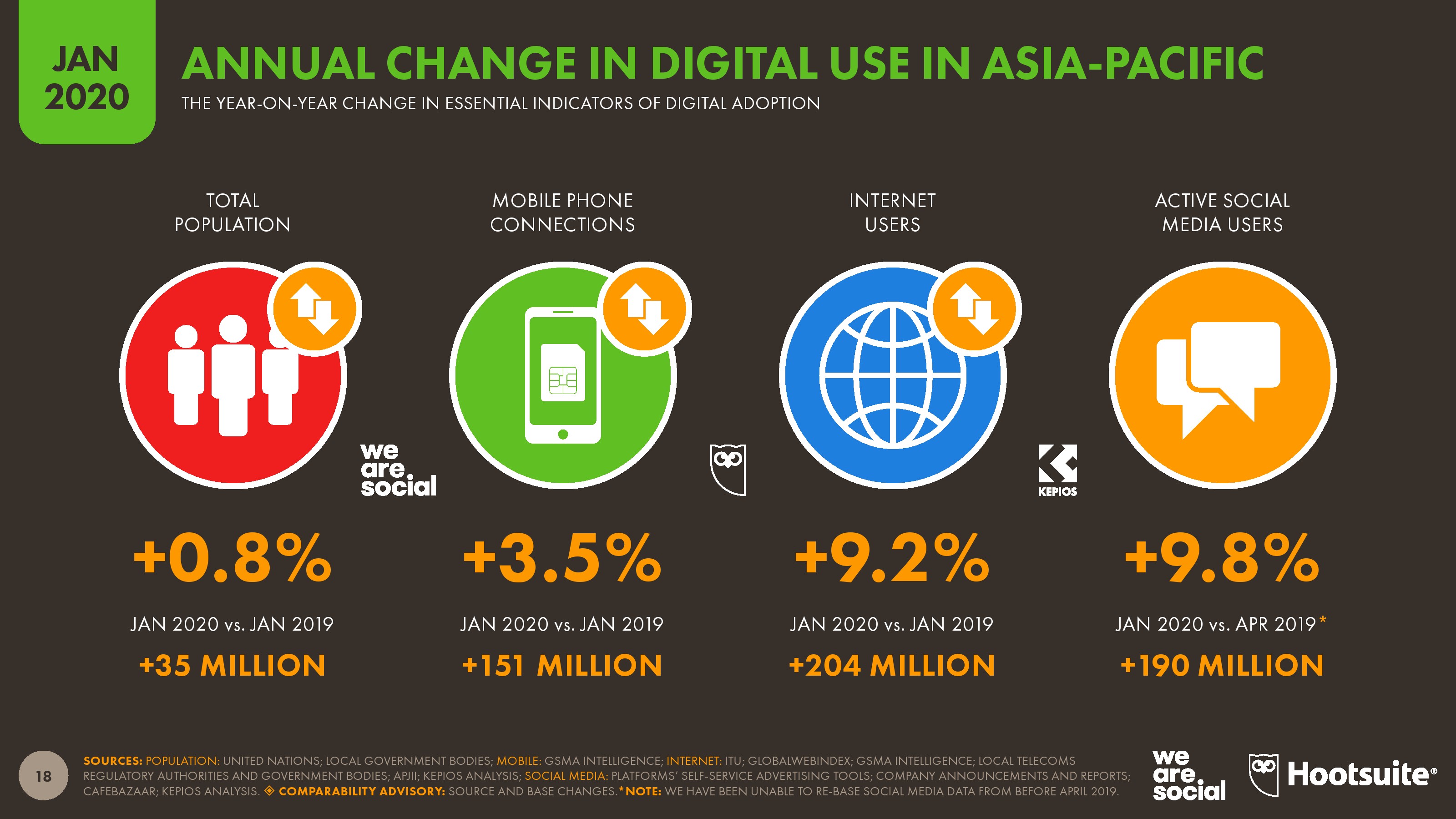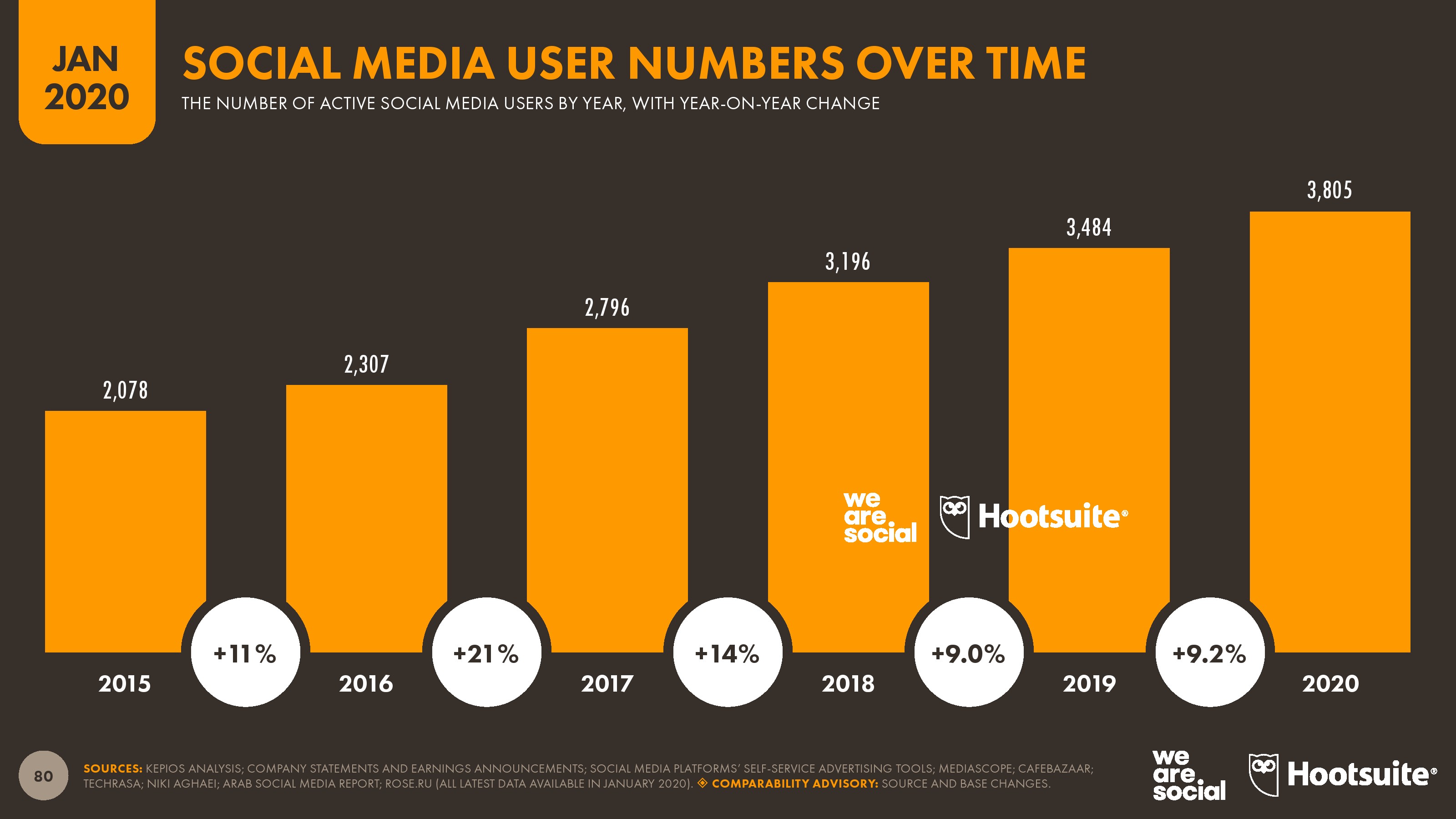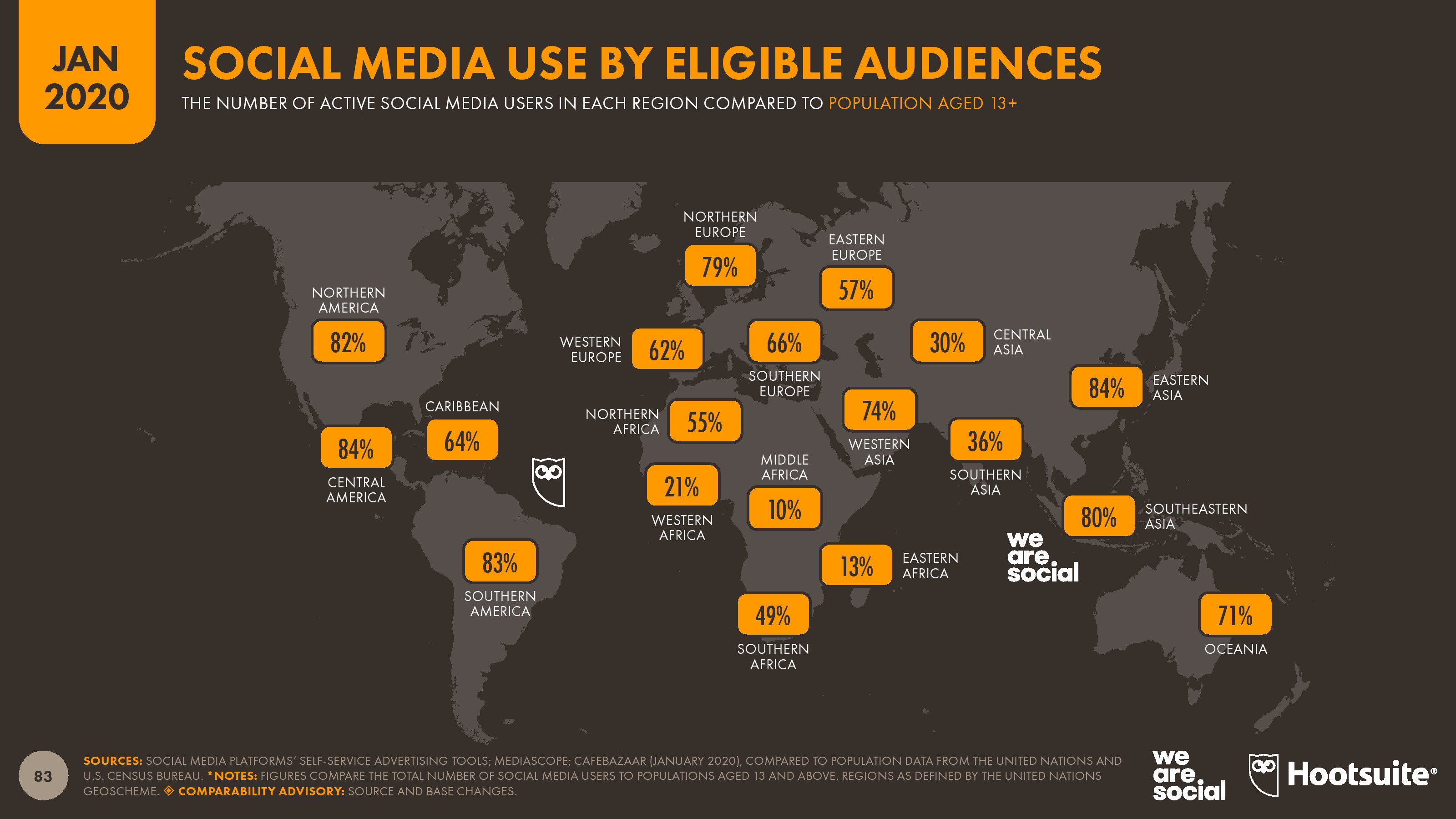 We Are Social携手Hootsuite发布了新报告“2020年全球网络概览”。新十年的开启,越来越清楚的是网络、移动和社交媒体已经成为世界各地人们日常生活中不可或缺的一部分。全球目前有超过45亿人使用互联网,而社交媒体用户已超过38亿大关。