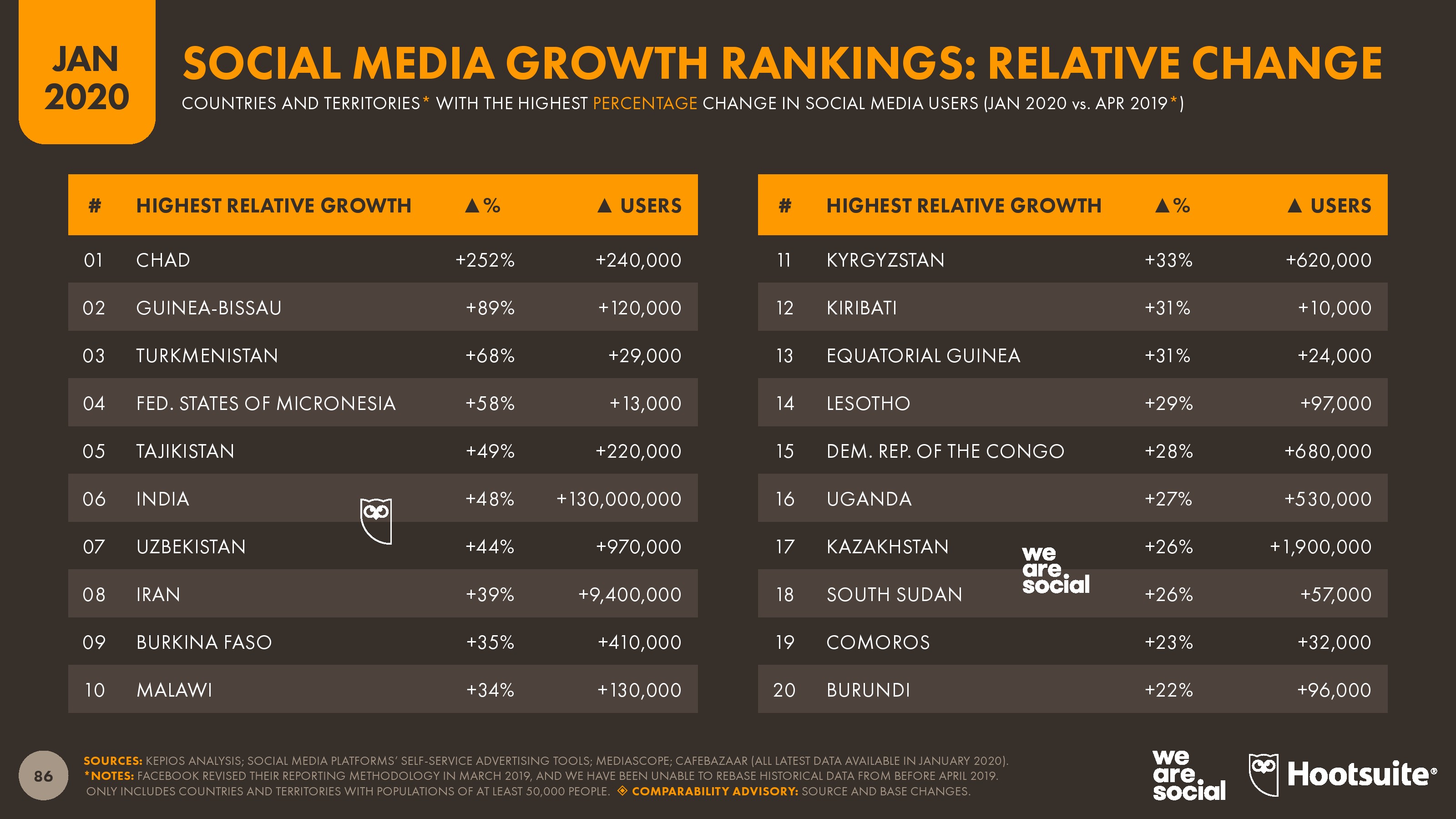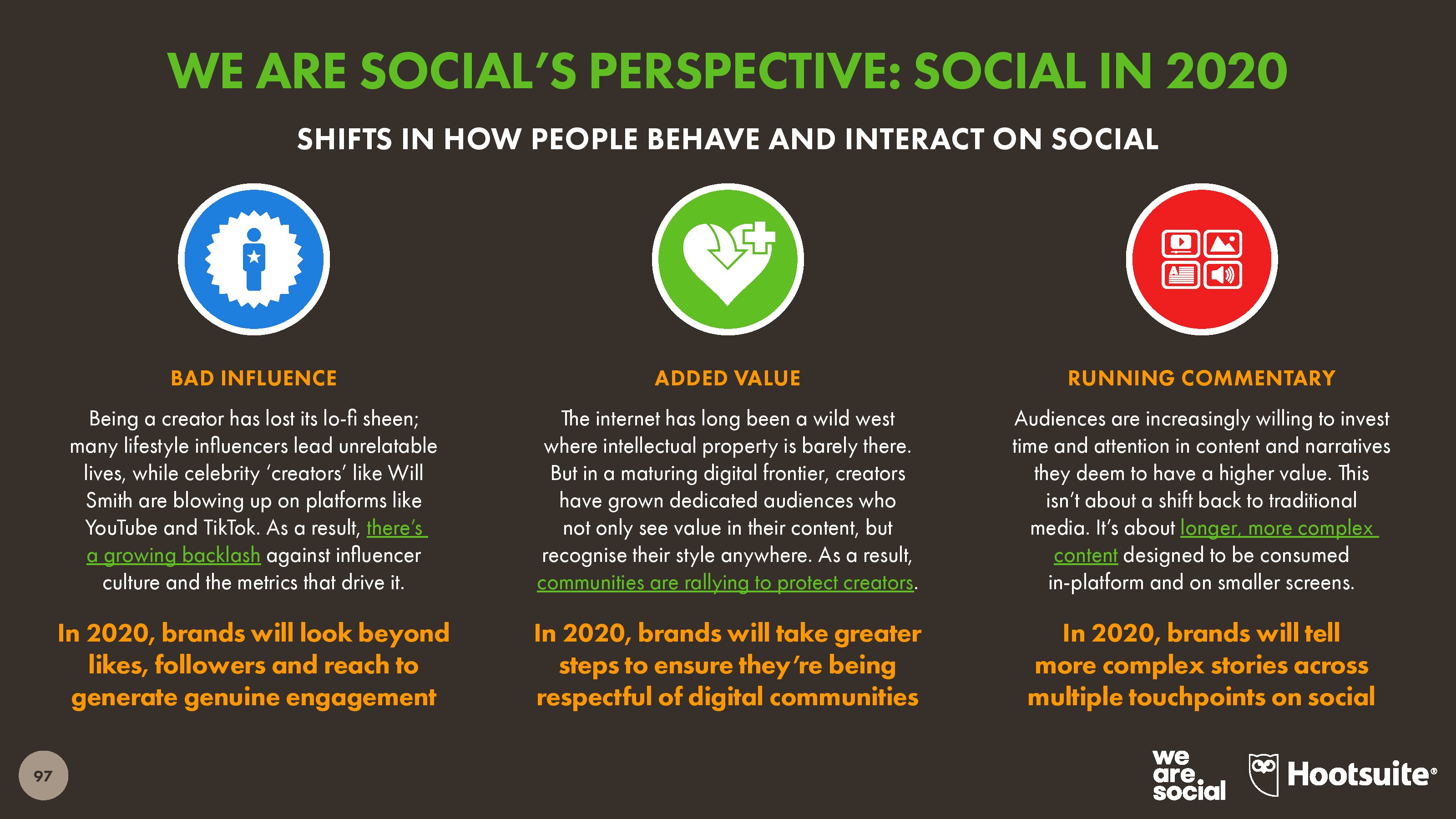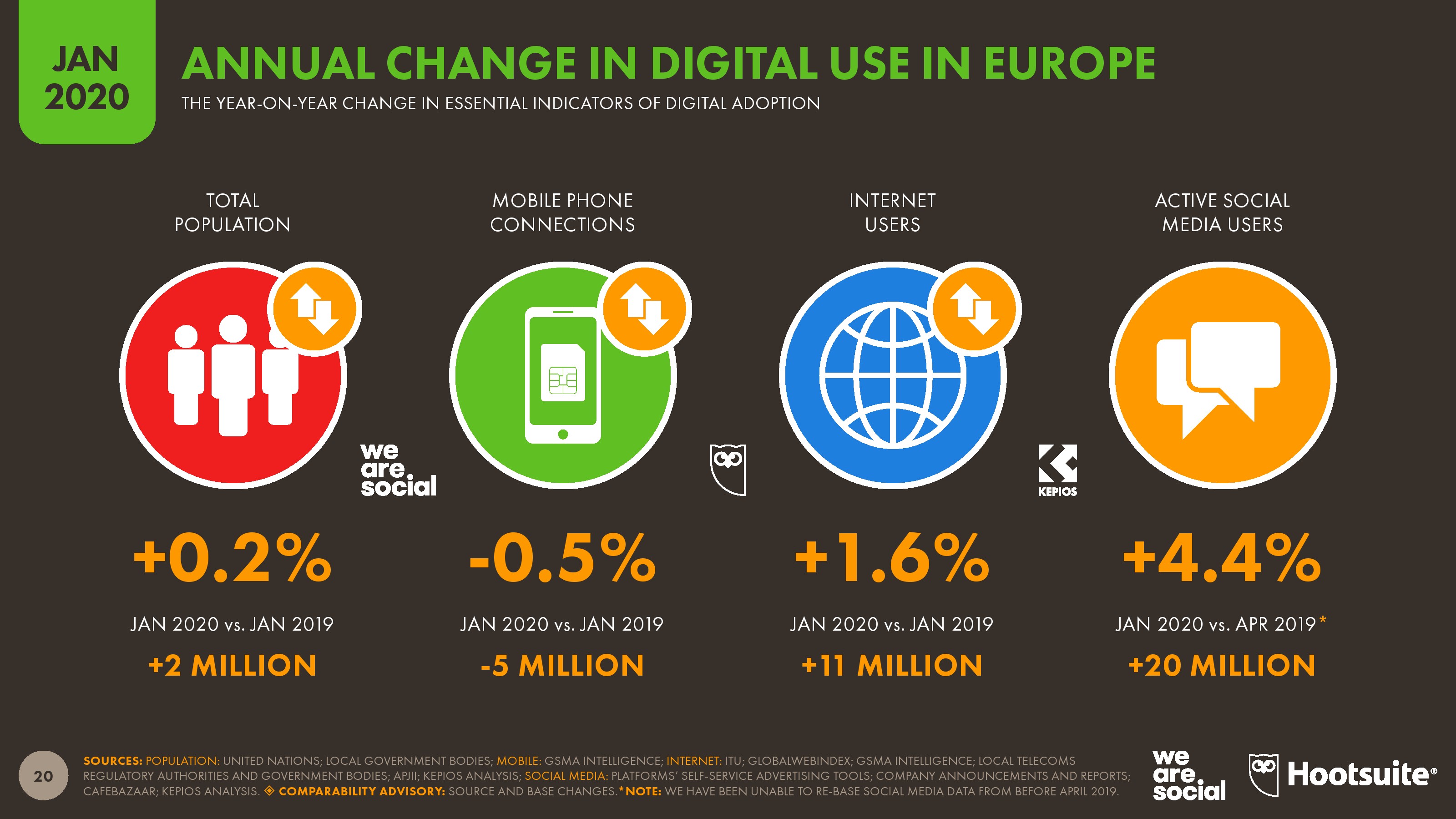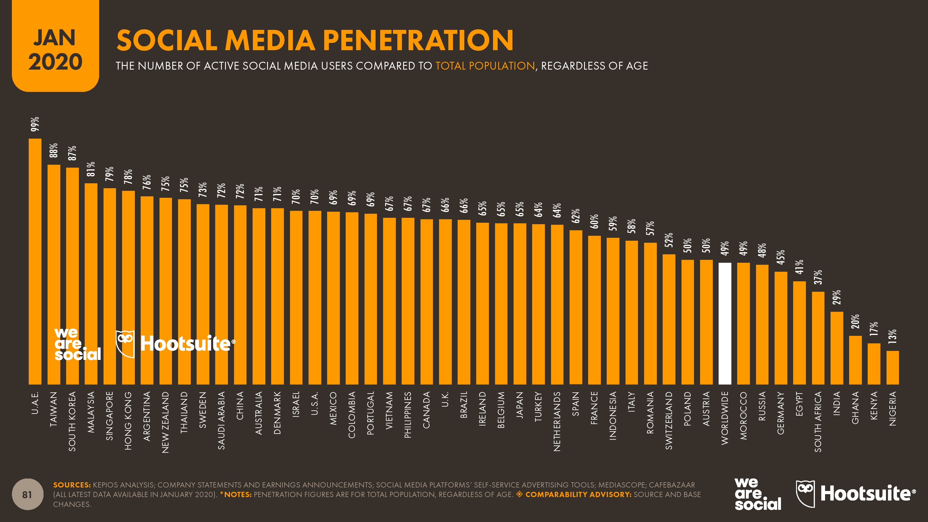 We Are Social携手Hootsuite发布了新报告“2020年全球网络概览”。新十年的开启,越来越清楚的是网络、移动和社交媒体已经成为世界各地人们日常生活中不可或缺的一部分。全球目前有超过45亿人使用互联网,而社交媒体用户已超过38亿大关。