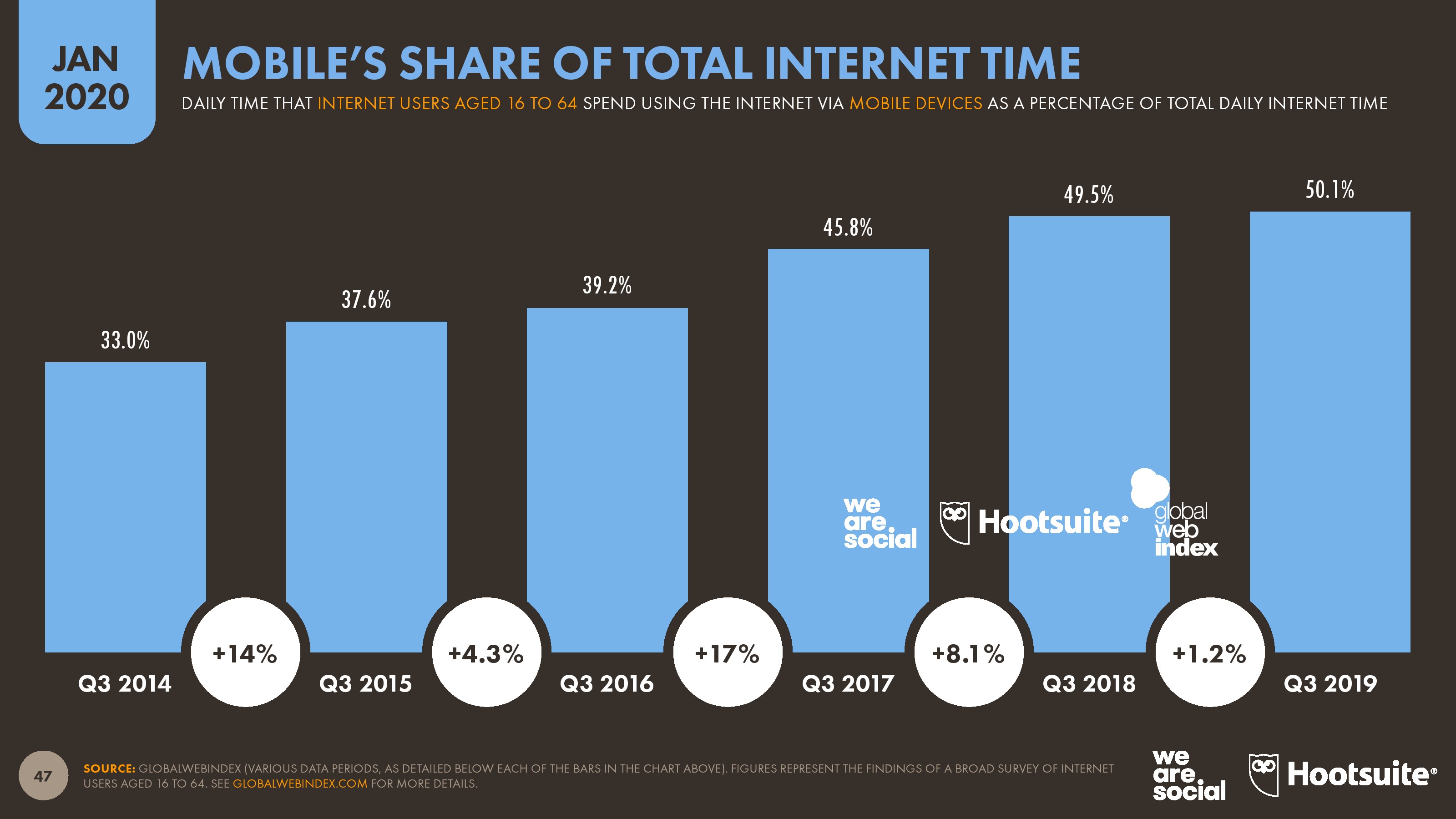 今年,移动设备将占我们上网时间的一半以上,但大多数网民仍然使用手机和电脑的组合来访问互联网。