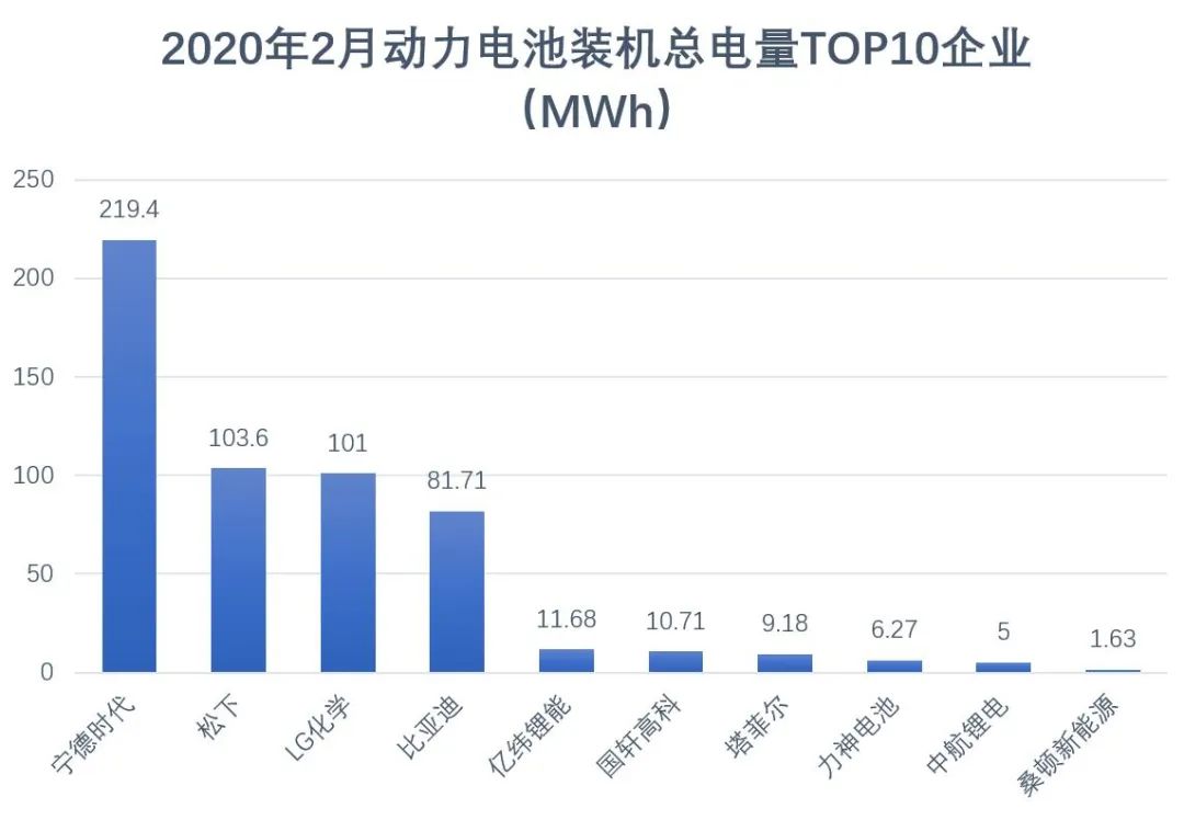 如今,国内动力电池的头部效应也在继续放大,以宁德时代、松下、比亚迪、LG化学为主的四大电池企业装机量,约占2月份总装机量的85%。而前十企业的装机量占比更是超过了92%。