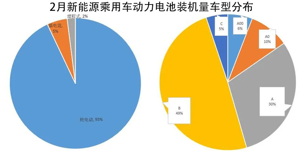 不过造成这一结果的原因,恐怕是因2月份商用车动力电池装机量大幅减少所致。在商用车中,2月份磷酸铁锂电池装机量达到92%,而商用车动力电池装机量却环比下降约88%。三元材料电池则占据乘用车动力电池装机量的近99%,2月份乘用车动力电池装机量环比下滑约70%。