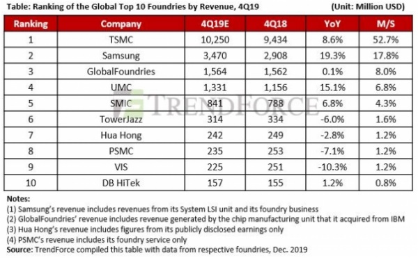 据 了解,尽管新型冠状病毒的传播带来了负面影响,台积电仍通过其在代工行业的地位来提高盈利。就DRAM而言,三星电子占据了整个DRAM市场的一半,但它的DRAM可以被SK海力士或美光产品取代。另一方面,7nm以下的微制造工艺只能由台积电和三星电子代工,而高通、英伟达和海赛龙等无晶圆厂的公司不愿将半导体生产外包给三星电子,因为它们担心半导体设计资料会泄露,这也是台积电市值超过三星电子的一个原因。