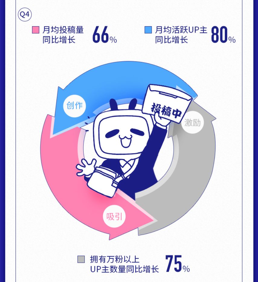这体现出的是B站对于创作者的吸引力依然很强,并且创作者拥有较强的创作意愿,也因此B站得以保持内容生产的繁荣。