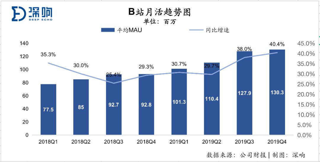 据财报数据显示,第四季度B站MAU为1.3亿,同比增长40%,其中移动端MAU为1.16亿,同比增长46%;DAU为3800万,同比增长41%,均创下了历史新高。