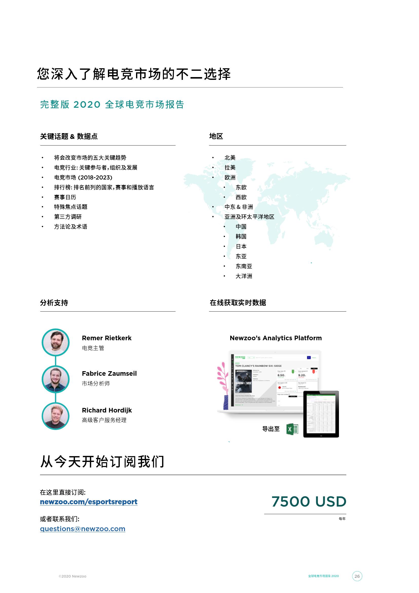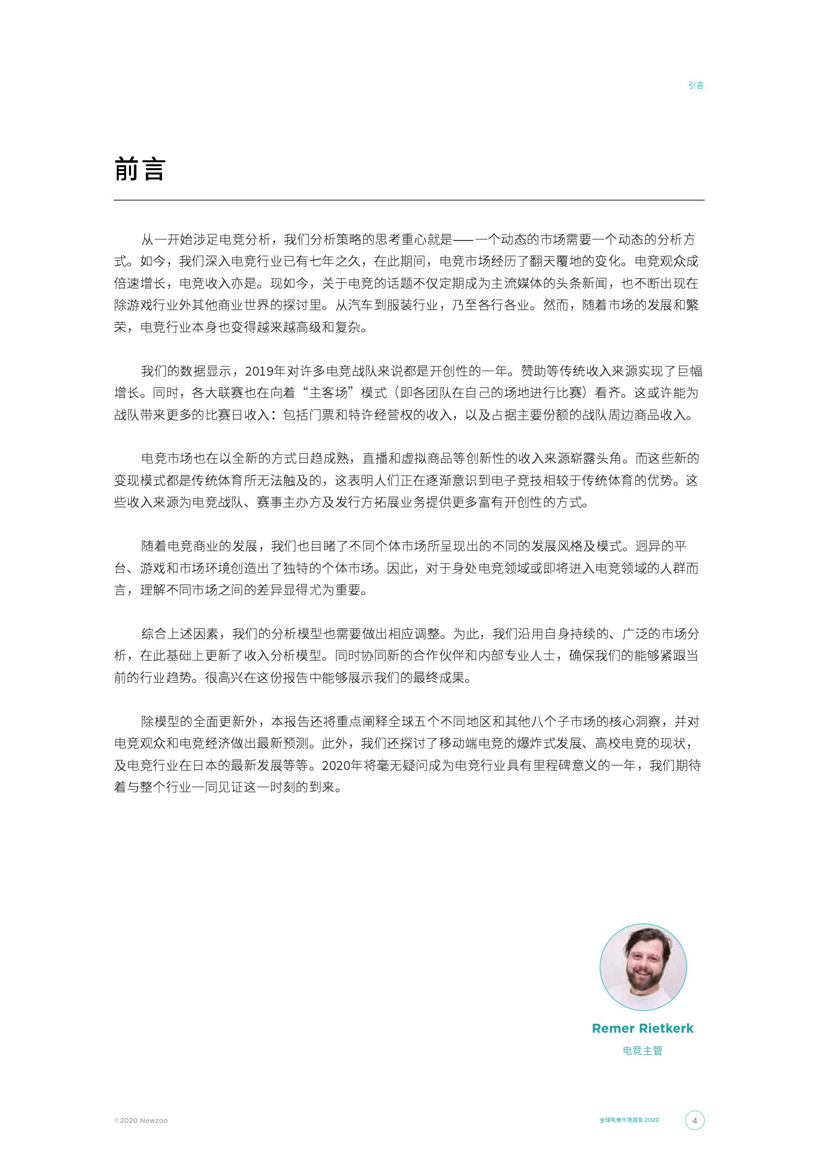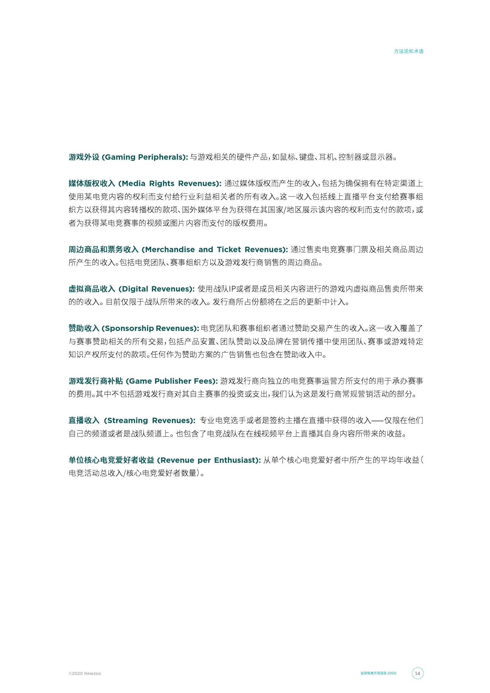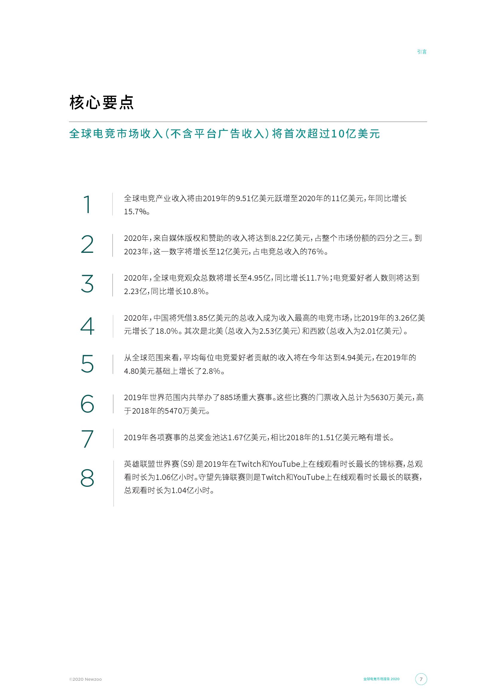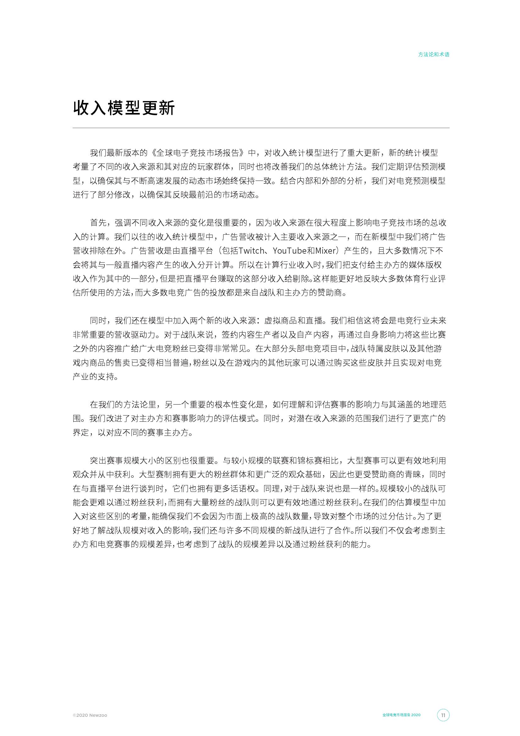 2020年将成为全球电子竞技市场的里程碑,在除去直播平台的广告收入的情况下,电子竞技市场总收入将首次突破十亿美元大关。 到2020年,电子竞技总收入将达到11亿美元,与2019年相比增长近1.5亿美元。与此同时,在我们今年对收入模型的修正之后,中国市场目前在全球电子竞技收入占比中所占的比重最大,占全球总收入的35.0%。