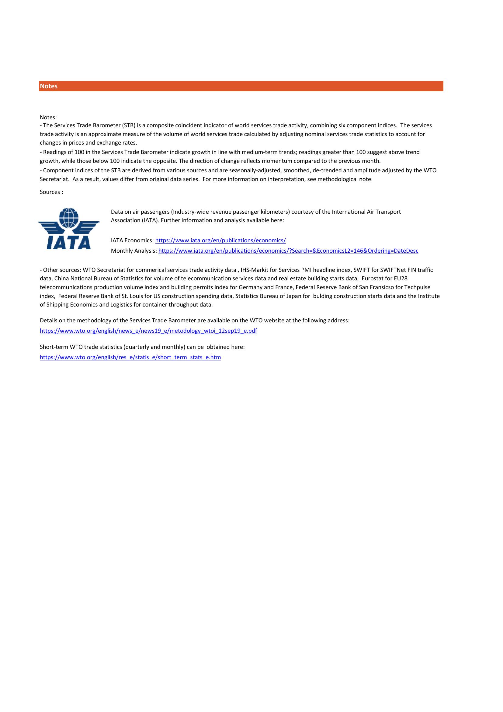 在全球服务贸易各项指标中,航空客运和集装箱运输下降幅度最大,其最新读数分别为93.5和94.3。在新冠肺炎疫情暴发之前,这两个行业的增长已经有所放缓,疫情暴发后其放缓程度进一步加大。这两个指数在一定程度上反映了今年1月份以来新冠肺炎疫情的发展态势,即从遏制疫情蔓延的早期努力到接近月底时疫情有所加剧。