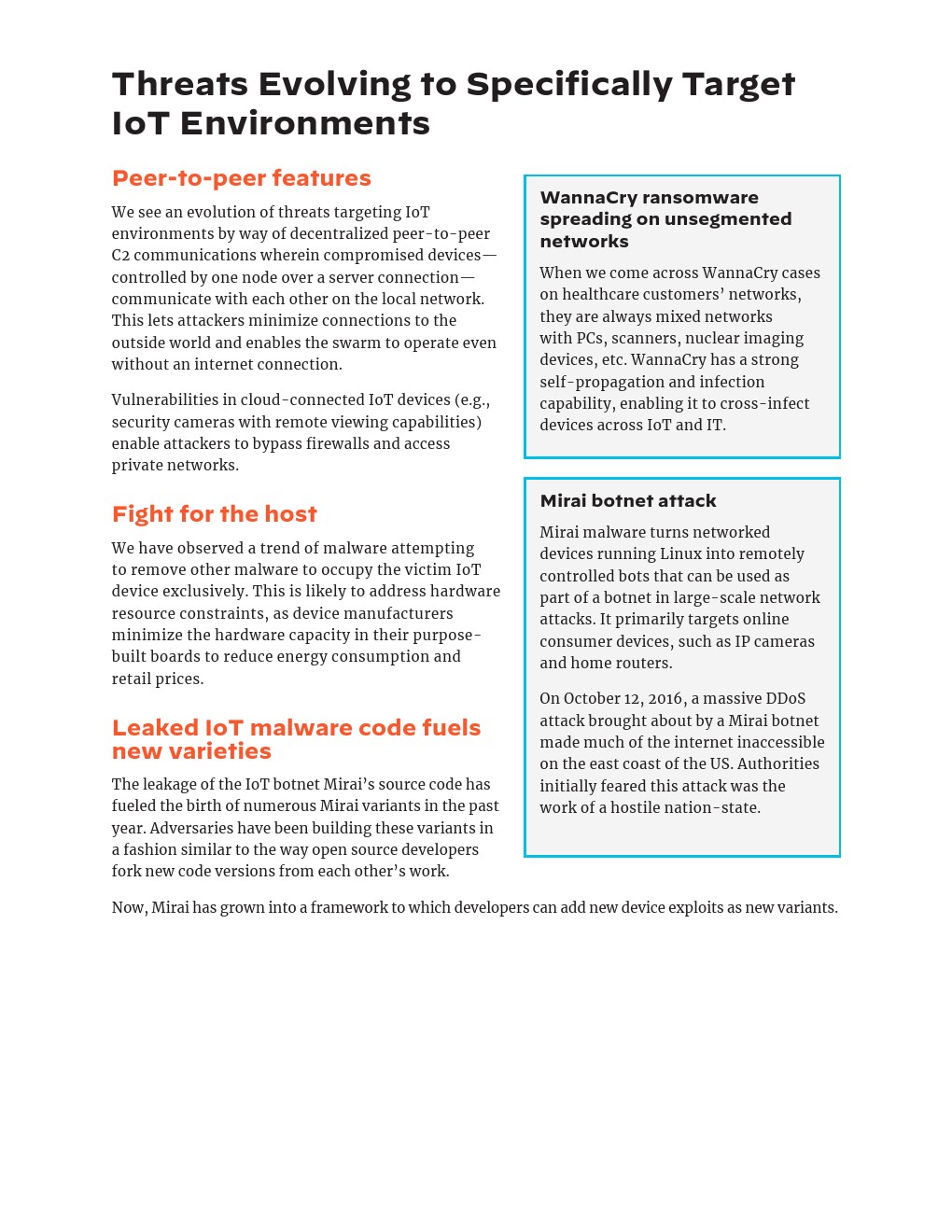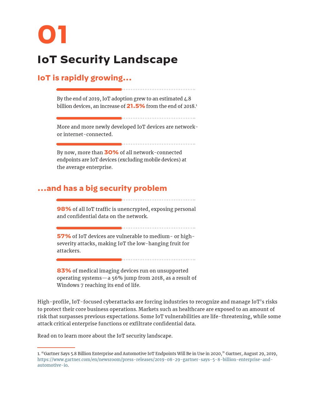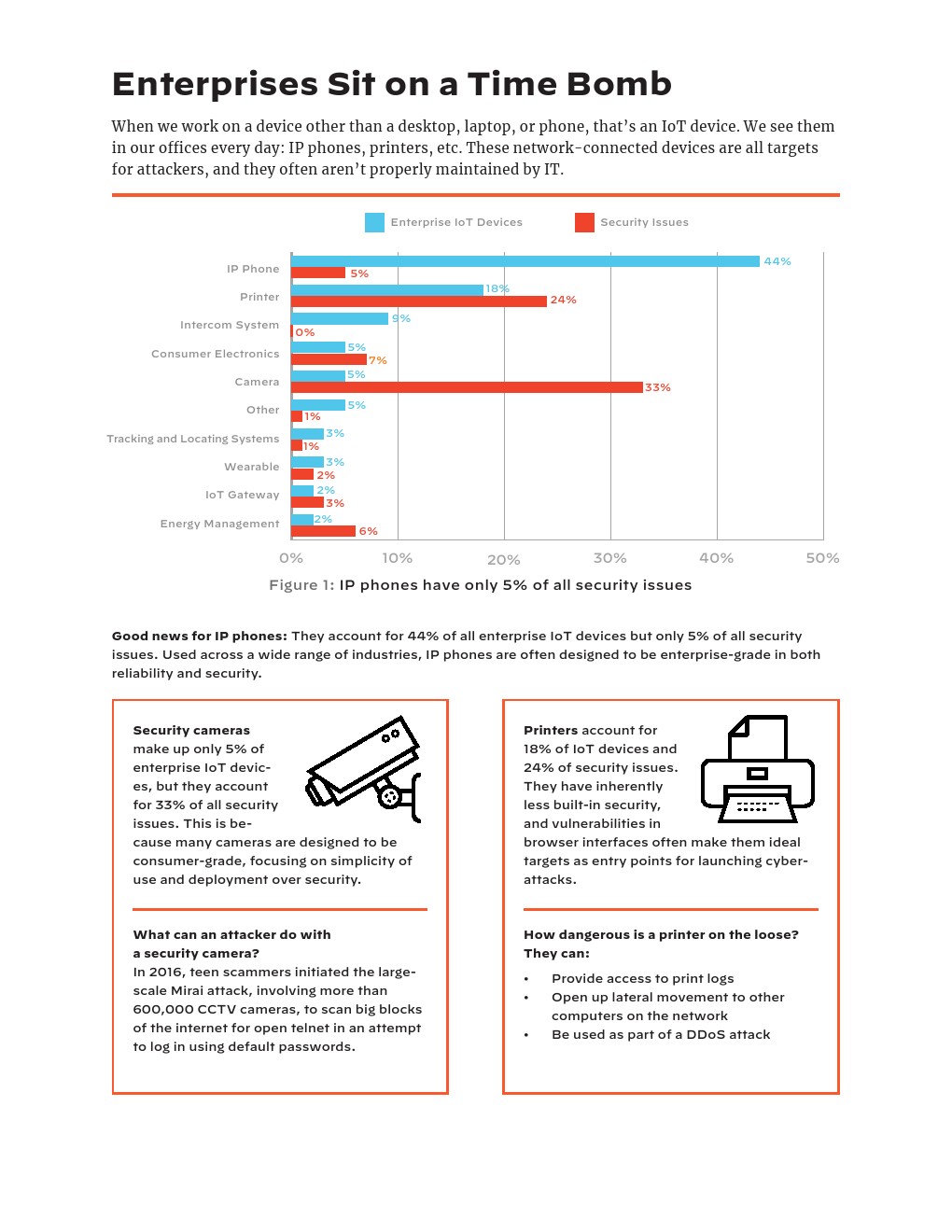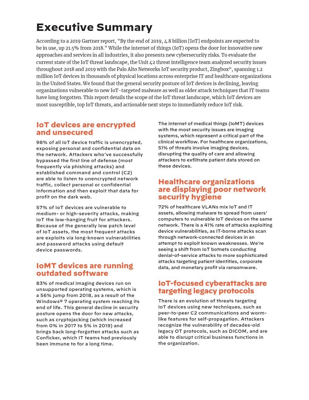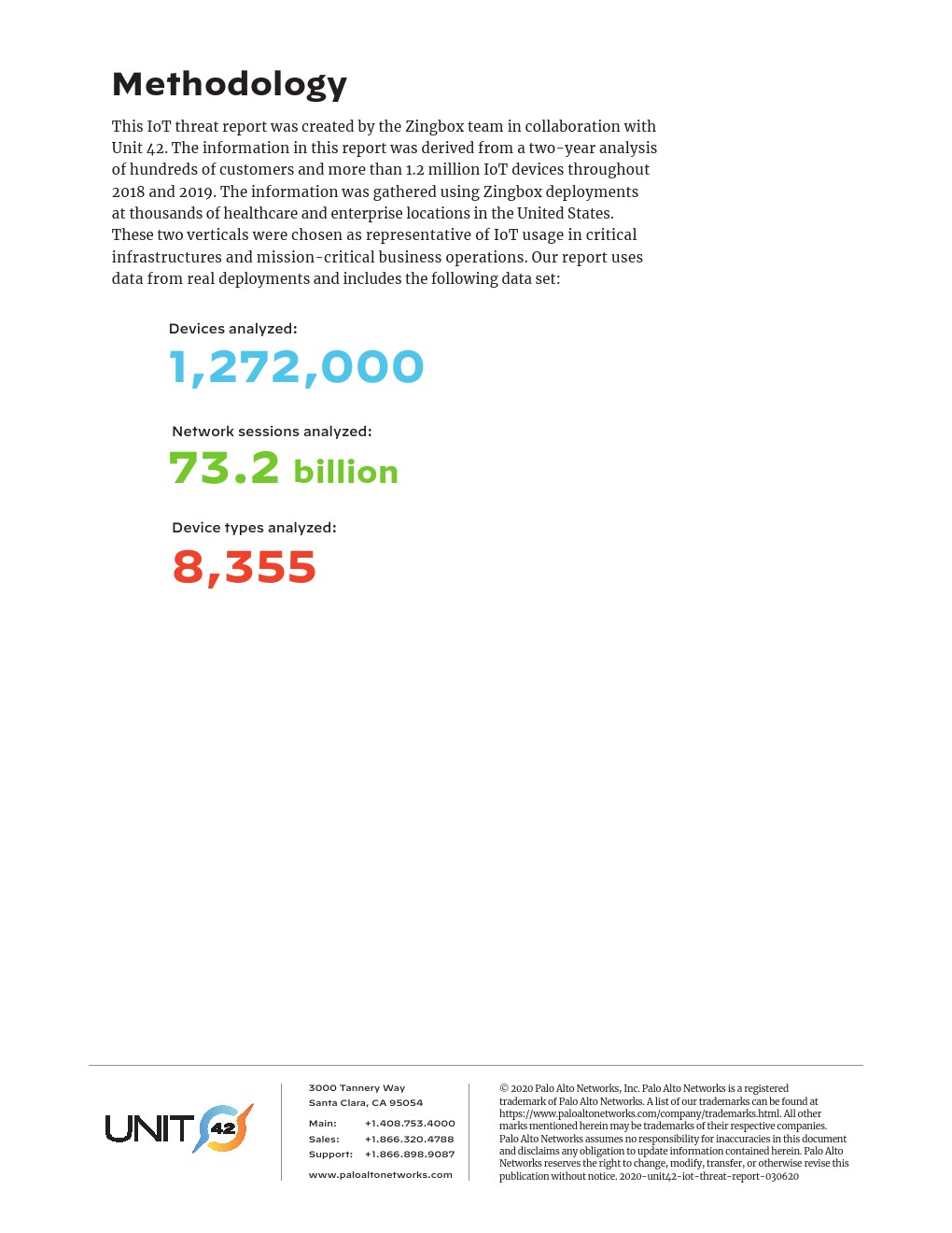根据2019年Gartner的一份报告,到2019年底,预计将有48亿个物联网终端投入使用,比2018年增长21.5%。物联网(IoT)在为所有行业创新和服务打开大门的同时,也带来了新的网络安全风险。为了评估物联网威胁的现状,Unit 24利用Palo Alto Networks物联网安全产品Zingbox®分析了2018年和2019年的安全问题,该产品涉及美国企业IT和医疗保健组织中数千个物理位置的120万台物联网设备。