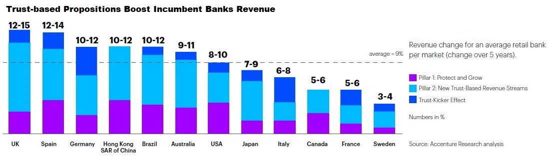 埃森哲的分析表明,向客户提供值得信赖的解决方案和建议,并在最值得信赖的品牌中赢得地位的银行,也将提升自己的声誉和品牌形象,降低运营风险敞口,并增强吸引人才的能力。