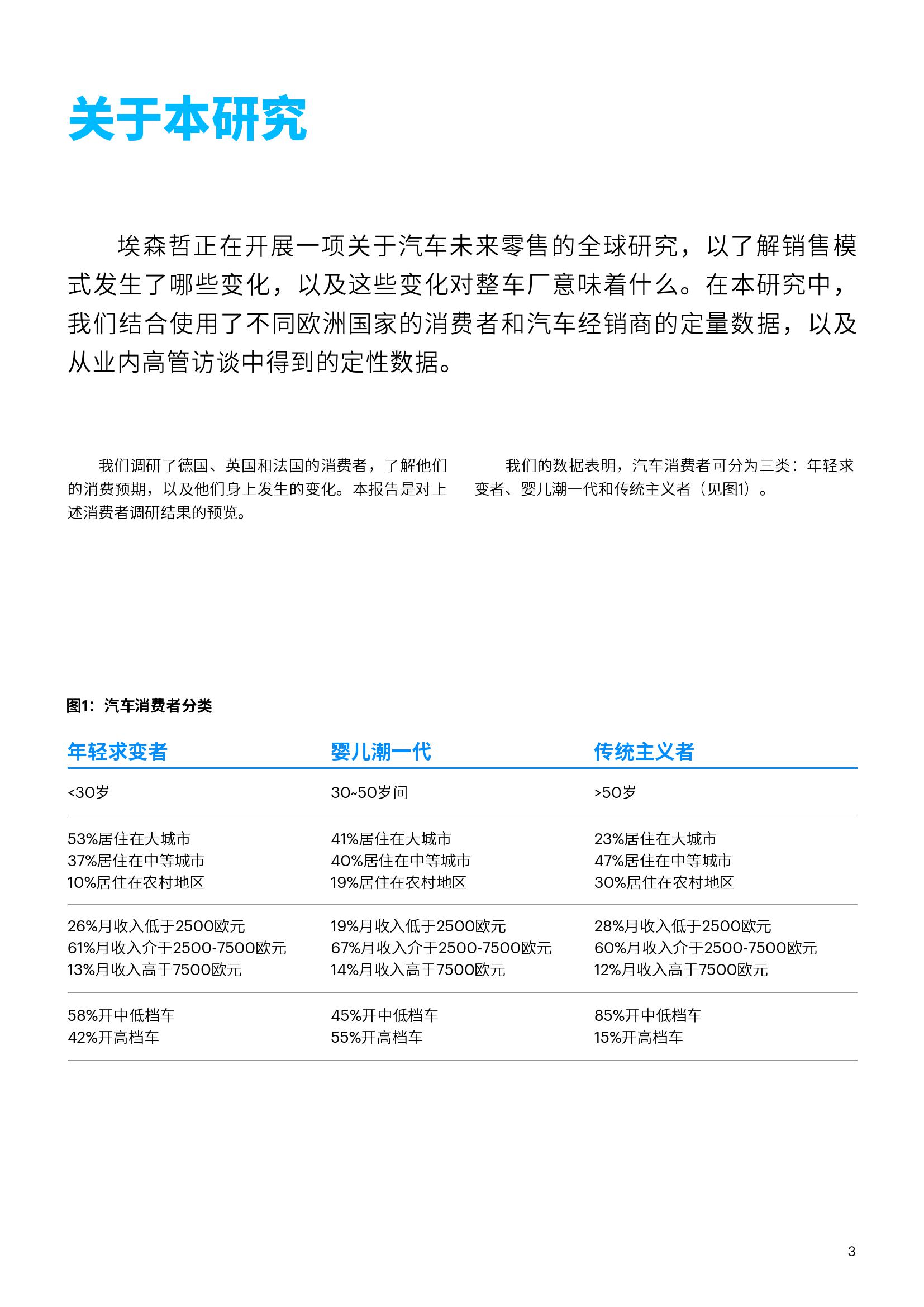 是什么发生了改变?传统整车厂独掌汽车行业话语权的时代已经过去。四大趋势正在重塑该行业:电动化、自动化、网联化和共享化。每一个趋势本身都无比强劲,当它们互相结合时,将产生颠覆性影响。但引发这些转变的另一个重要原因在于,消费者本身及其需求发生了改变。