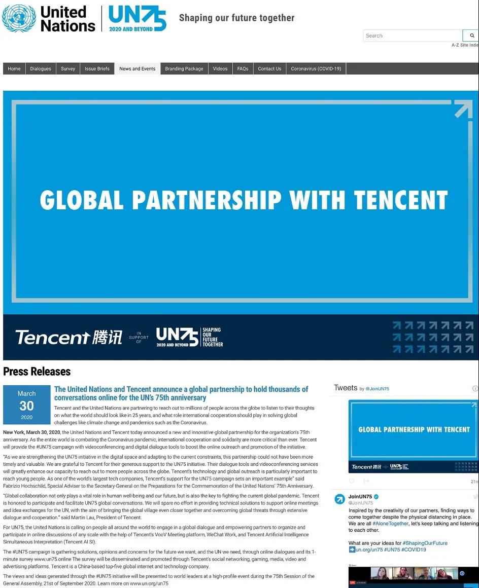 此外,腾讯还通过全面开放腾讯云、腾讯会议、企业微信的平台能力,为疫情期间居家办公提供技术支持,也为战疫中国方案走向世界构建了桥梁。日前,联合国宣布和腾讯达成全球合作伙伴关系,联合国75周年的数千场活动将搬到腾讯会议和企业微信上。此前,武汉医生通过微信、企业微信搭建“全球一线医生交流平台”,全世界有1300多位医生申请加入,向中国取经。