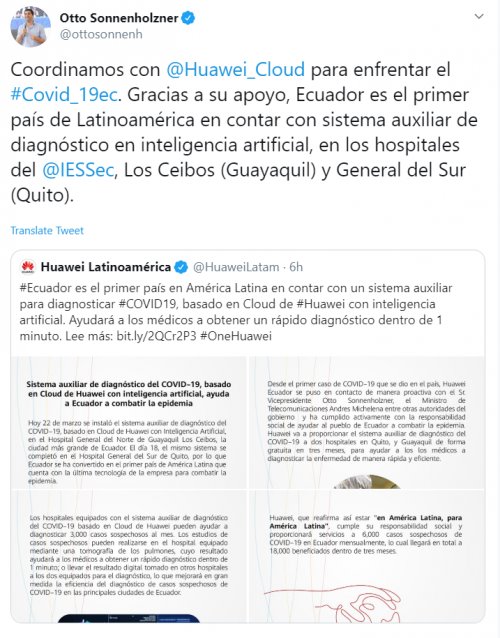 华为云AI算法的新冠肺炎快速筛查方案,则累积了国内众多新冠疫情案例,正在为亚洲、欧洲、拉美几十个国家抗疫提供技术与经验。3月中旬,华为云紧急帮助厄瓜多尔部署新冠肺炎AI辅助筛查系统,使厄瓜多尔成为拉美第一个拥有新冠肺炎AI辅助筛查系统的国家。