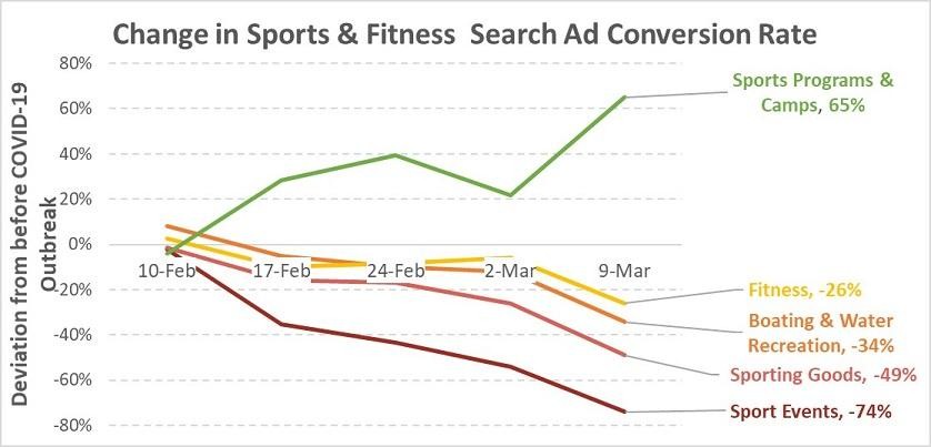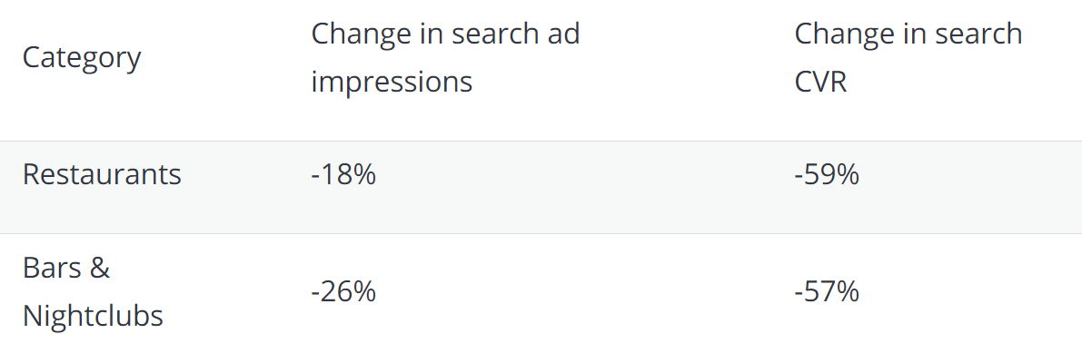 一些家庭正在转向电子商务来取代实体店购物,另一些家庭的未来收入不确定。这些影响了用户在搜索广告上的转化率,零售也转化率下降了14%。
