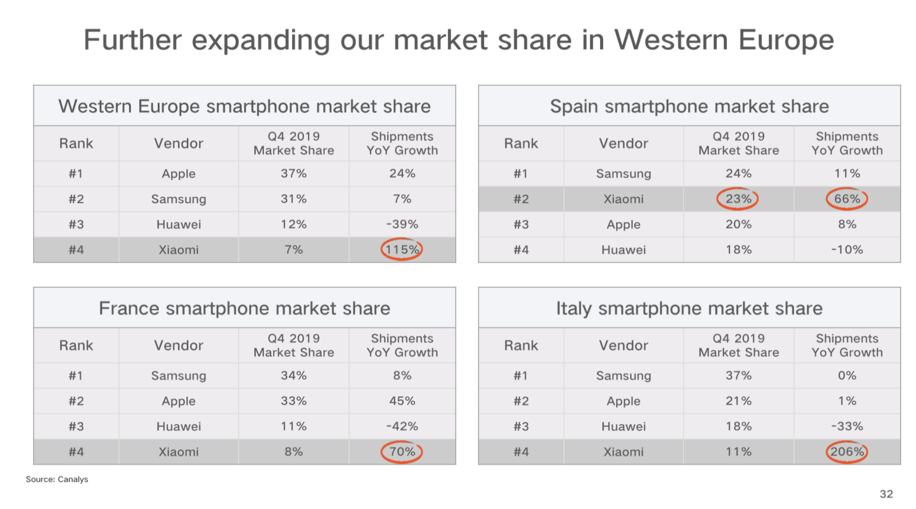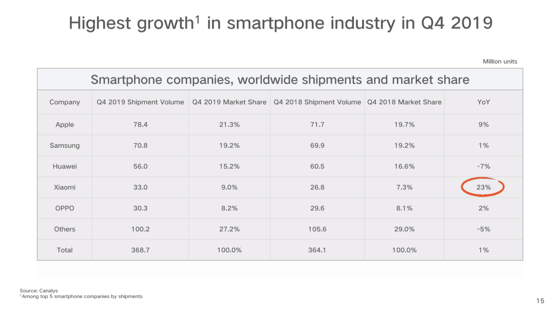 4Q公司手机出货量增速行业排名第一。