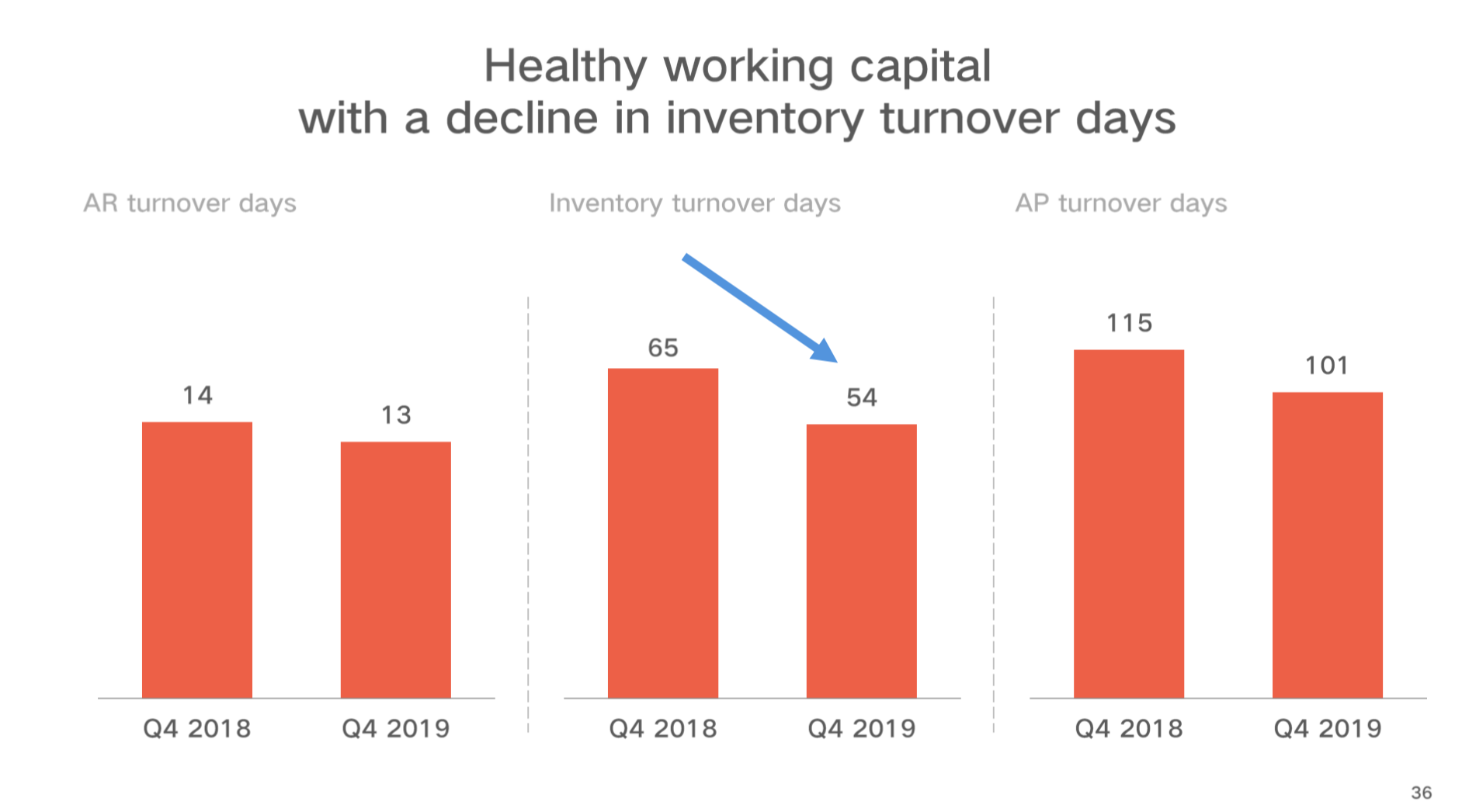 公司拥有健康营运资本,库存周转天数从65天下降至54天。