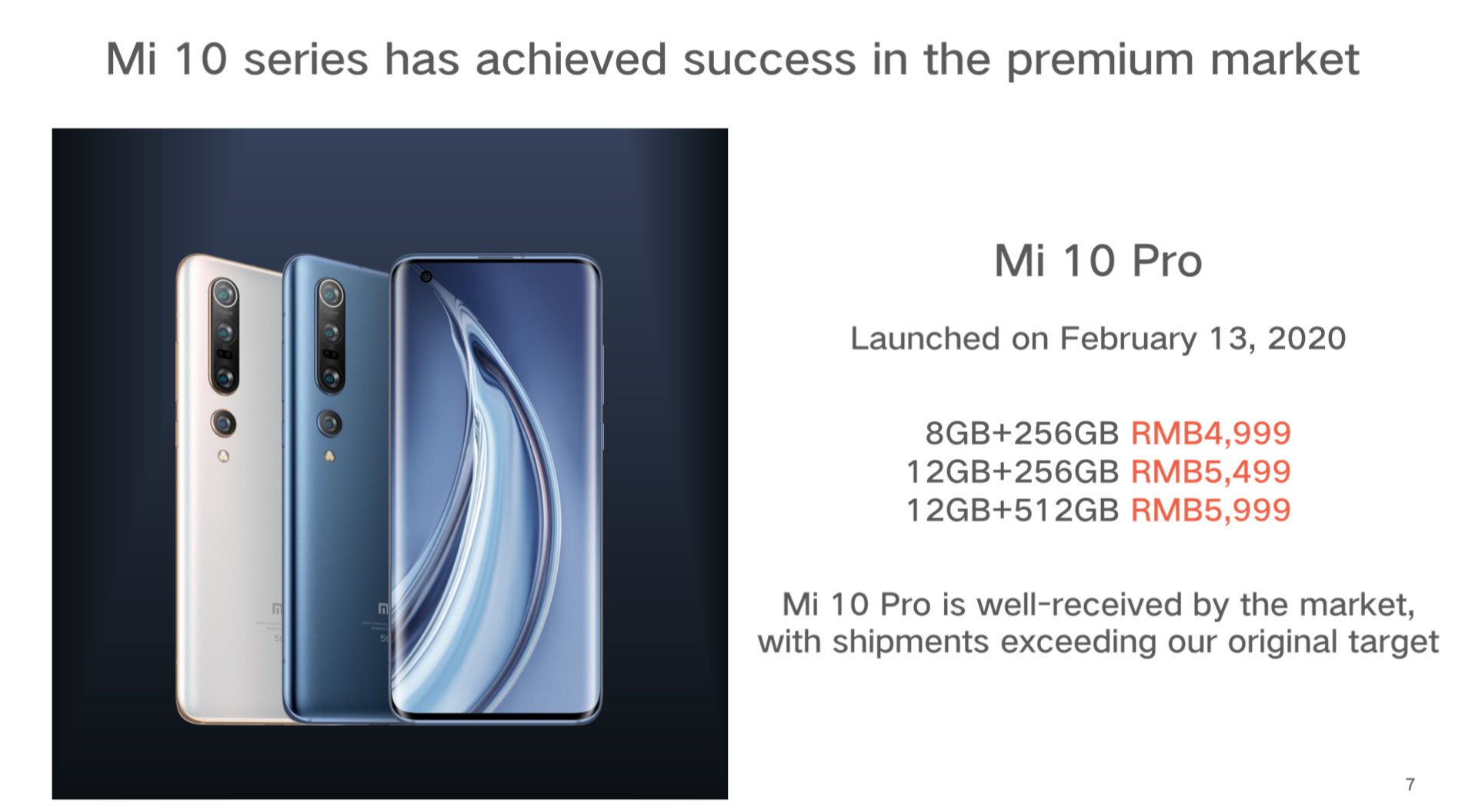 公司奏响向高端手机进军的号角,2020年发布的米10系列产品以不妥协的品质和交个朋友的价格获得了用户的认可,销售超出预期。