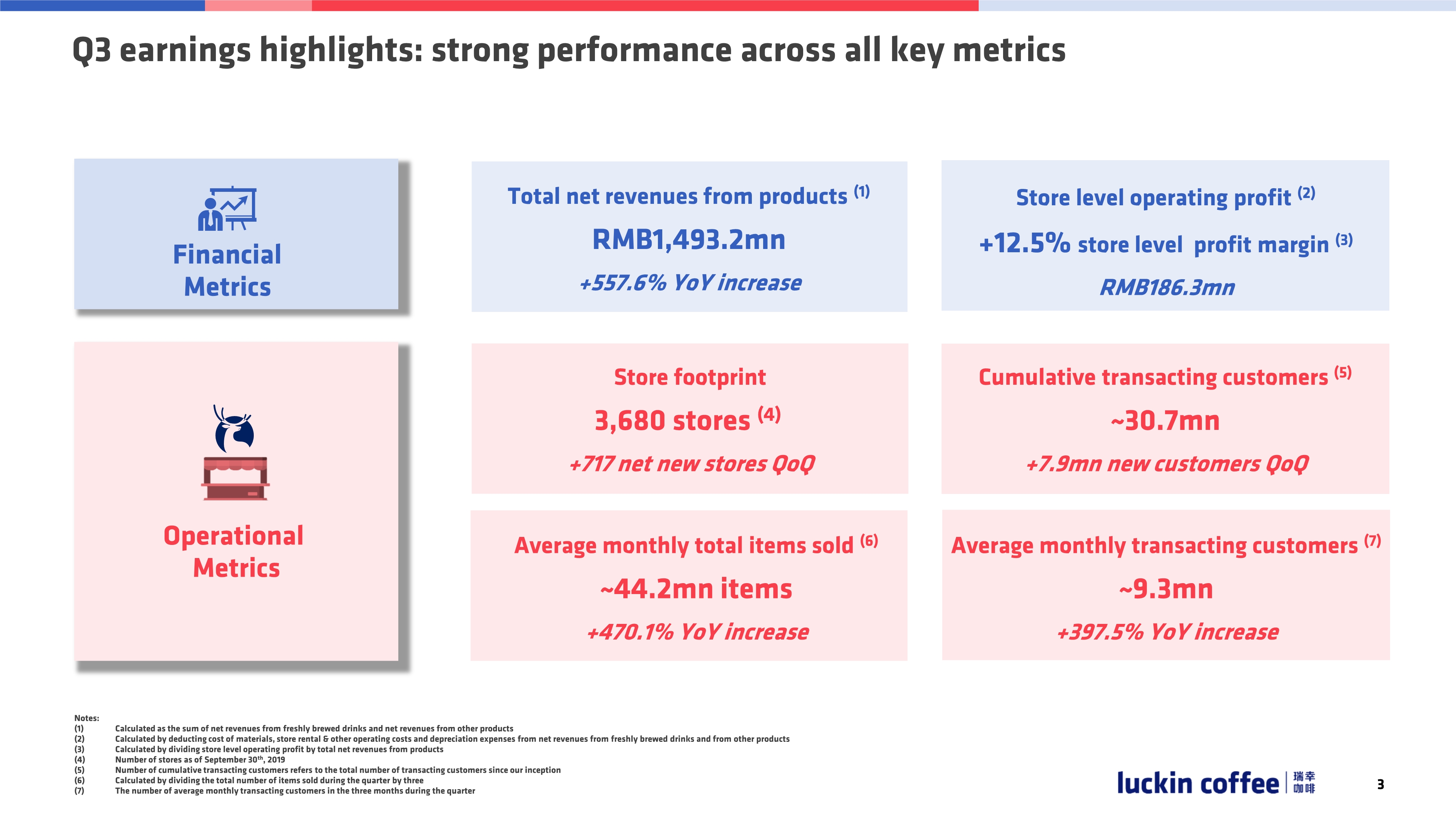 Q3可谓是所有关键指标都表现强劲呀!其中包括财务指标:营收增长超过5倍,单店实现盈利;运营指标:门店快速扩张,交易用户、销量数迅猛增长。