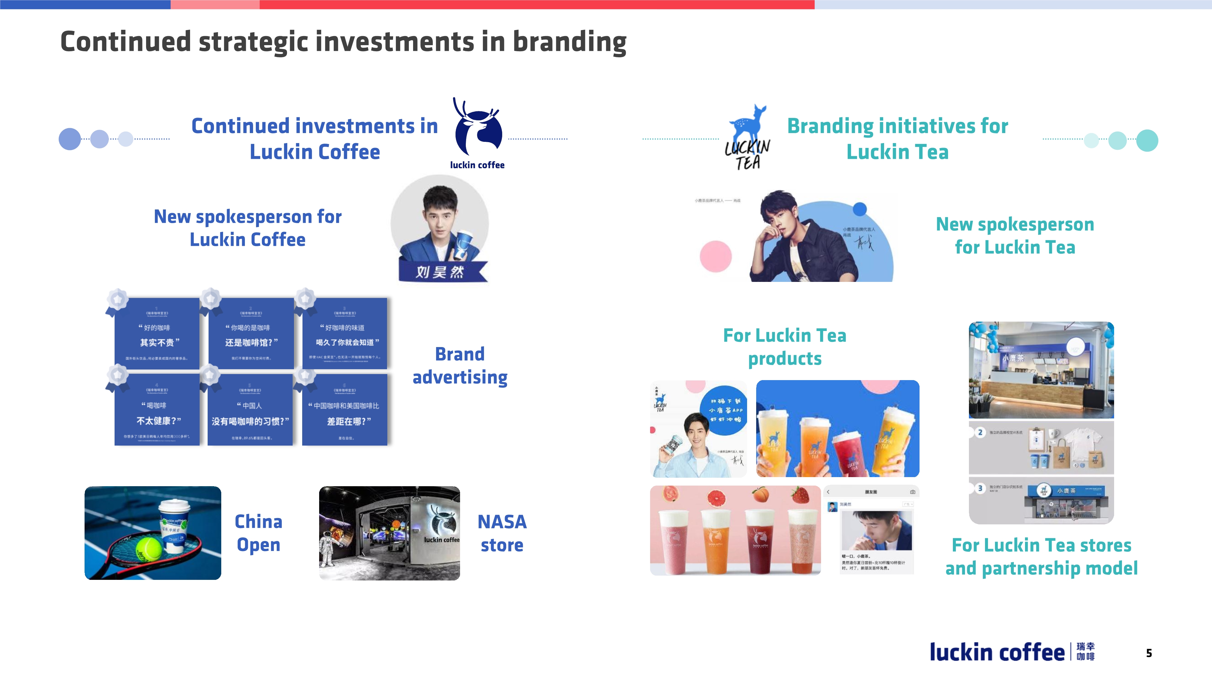 公司对品牌的投入是战略性的。包括咖啡品牌和小鹿茶品牌建设,详细请看下图,有帅气的代言人、调性的品牌广告、创意的品牌活动等。