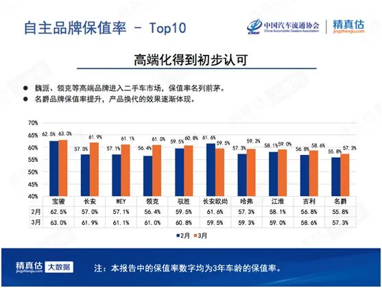 2020年4月1日,中国汽车流通协会和精真估联合发布了《2020年3月中国汽车保值率研究报告》。通过保值率研究旨在反应该品牌下产品力、认知度、美誉度等综合实力,并对开展回购、置换、租赁、金融、新车定价参考等相关业务提供重要数据参考,从而降低业务风险,提高经营效率。
