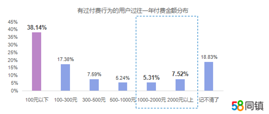 58同镇《疫情影响下的中国下沉市场休闲娱乐洞察报告》数据还反映出,下沉市场用户过往一年在线娱乐充值付费金额以100元以下居多,占比38.14%(这一金额仅指会员充值等,不含购物消费)。不过,受访付费用户在过往一年的消费金额平均值为621元。随着用户版权意识提升和监管的完善,下沉市场用户的在线娱乐付费市场潜力巨大。由于可以享受更好的体验,36.69%的用户选择线上娱乐付费,而性价比高和支持正版也是用户进行付费的主要驱动因素。
