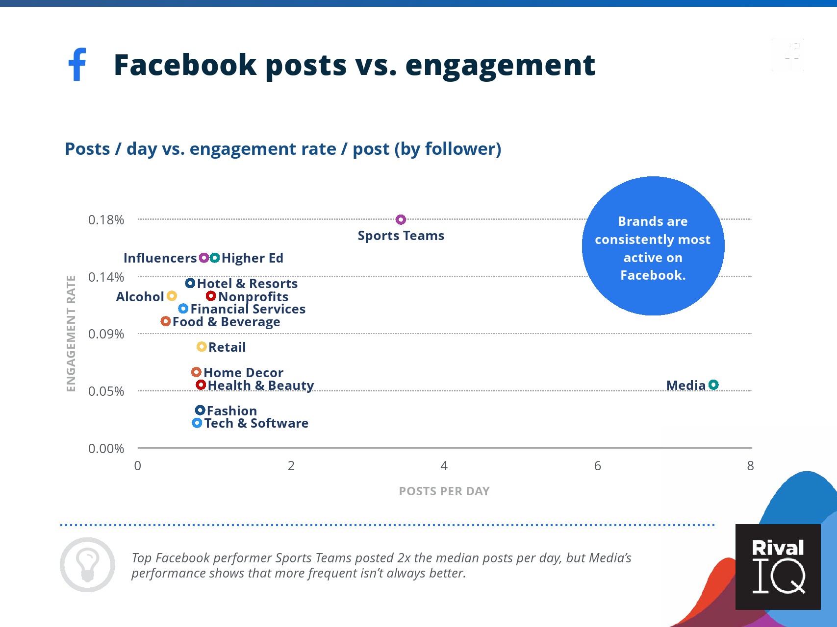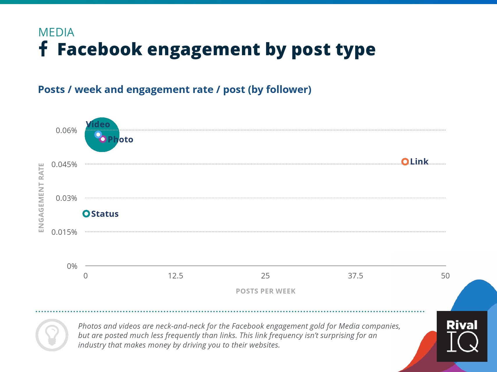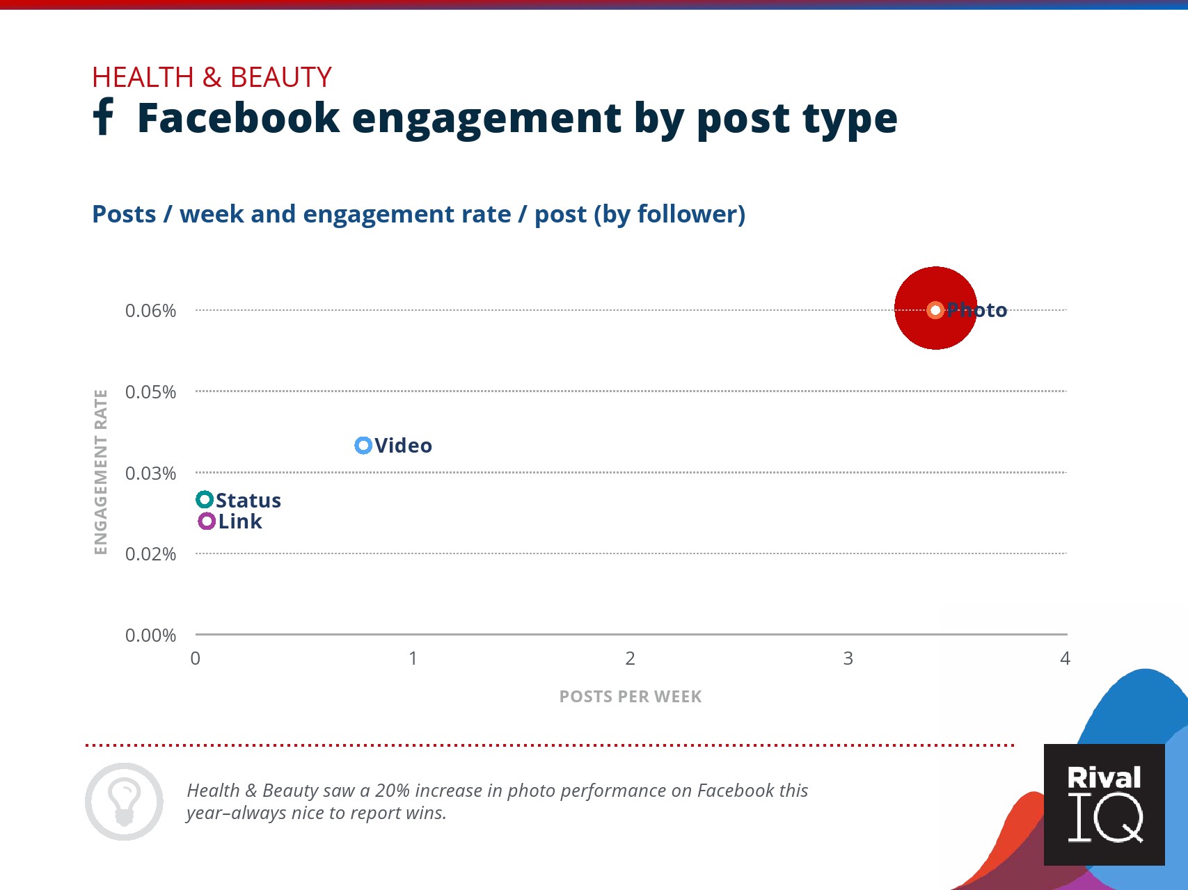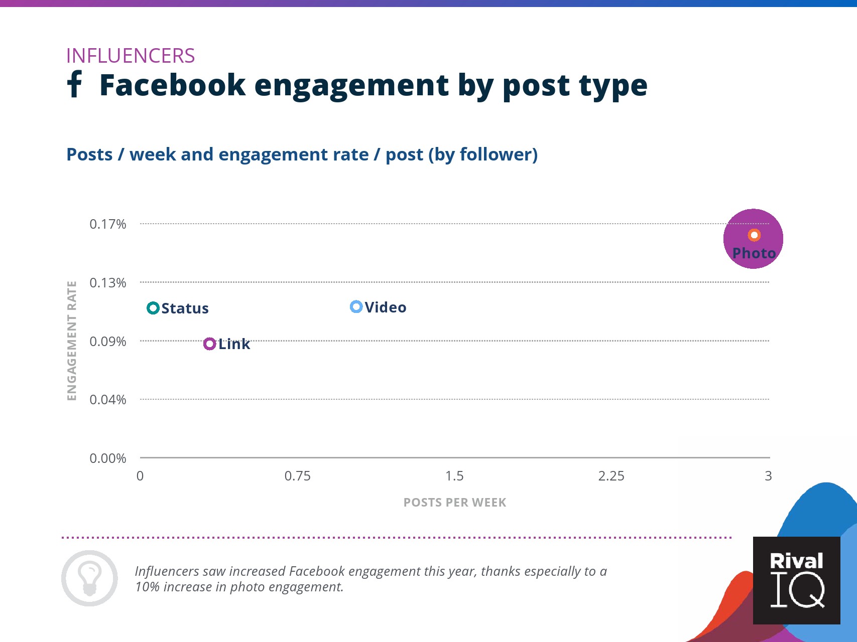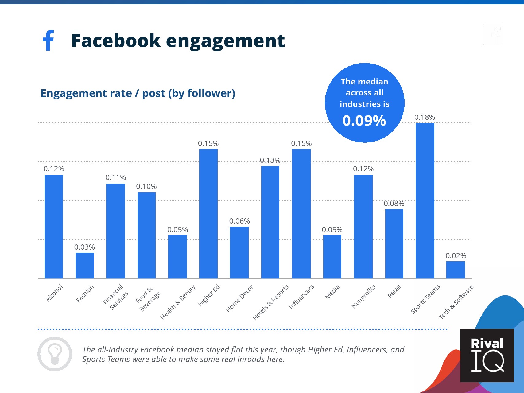 根据RivalIQ的数据,Facebook页面的平均参与率与其2019年报告持平,为0.09%。
