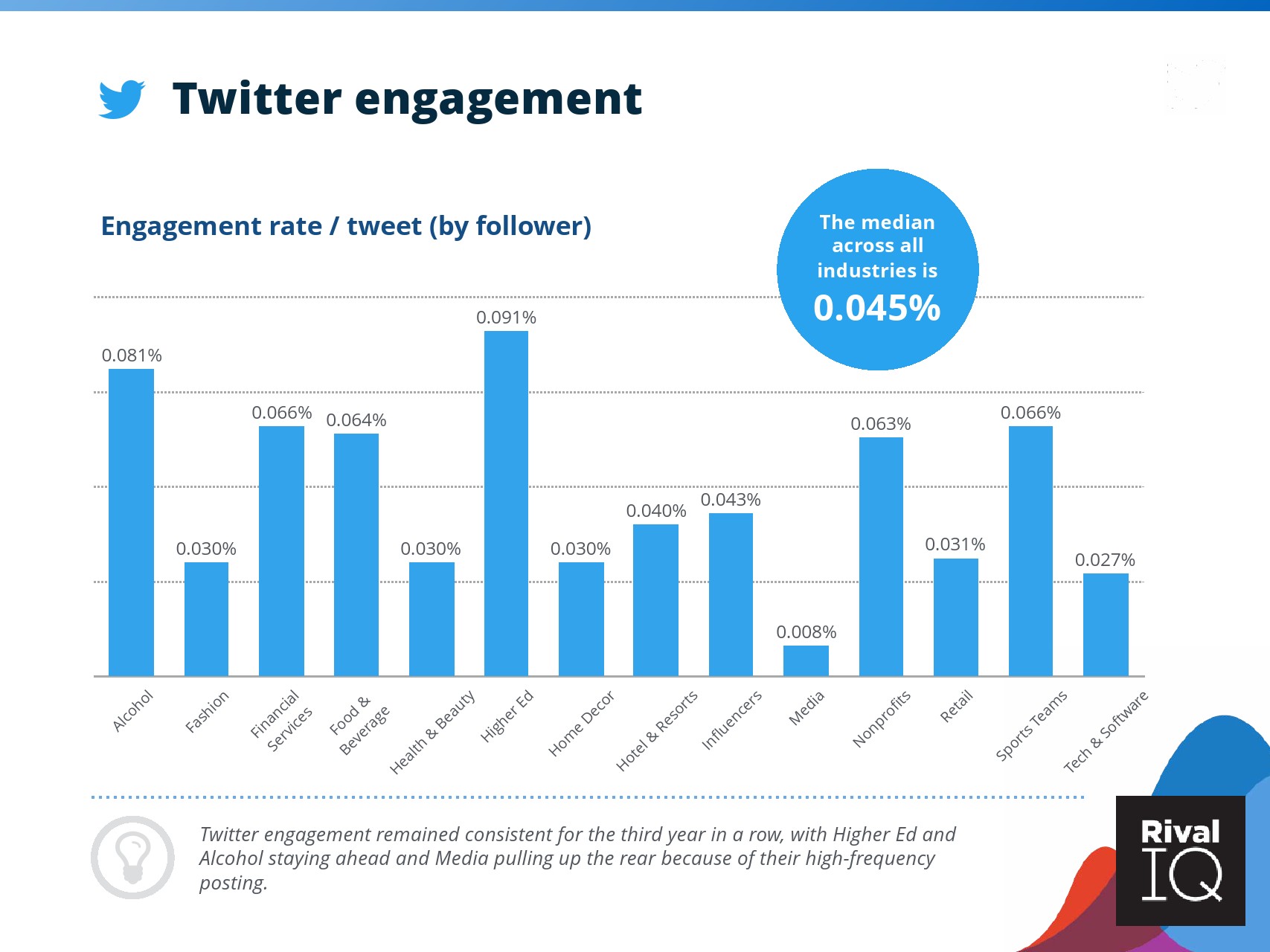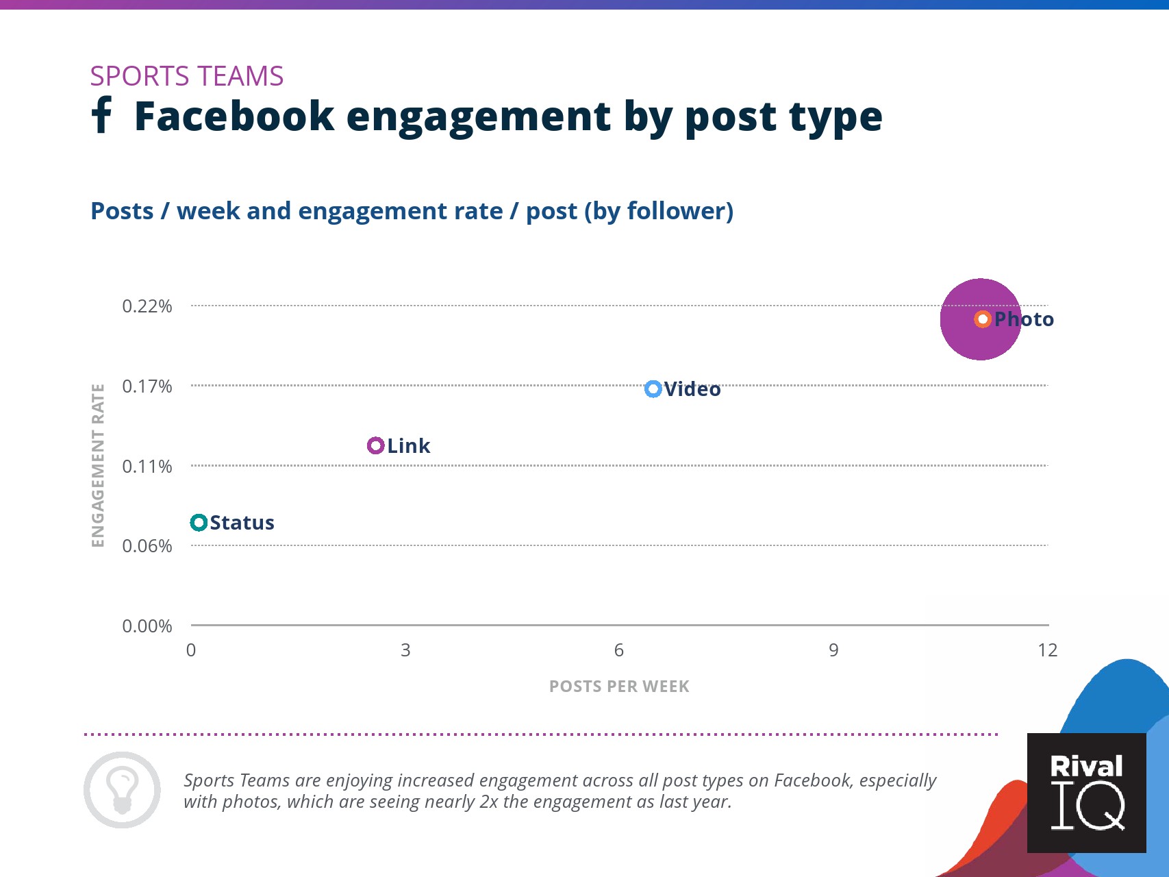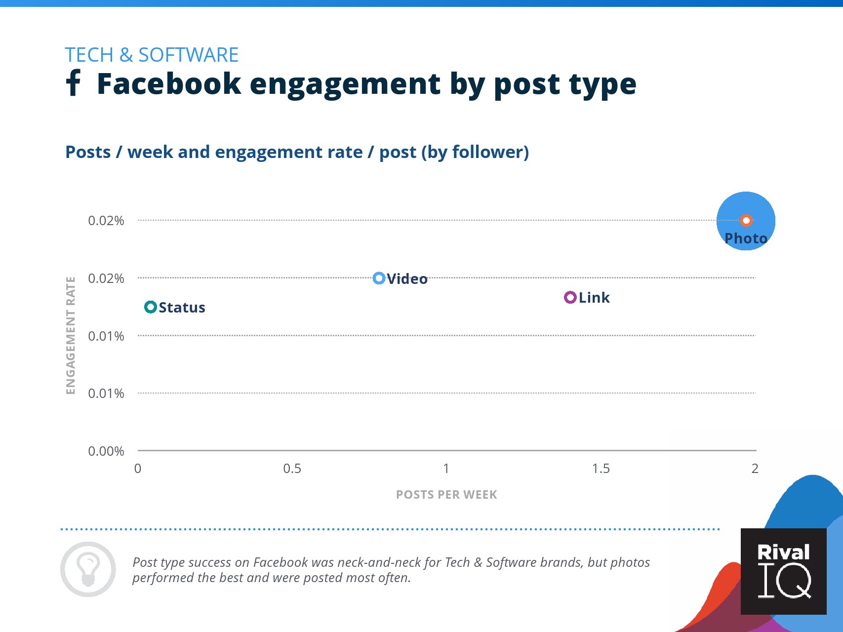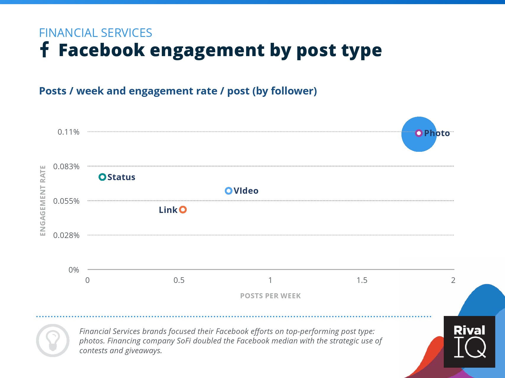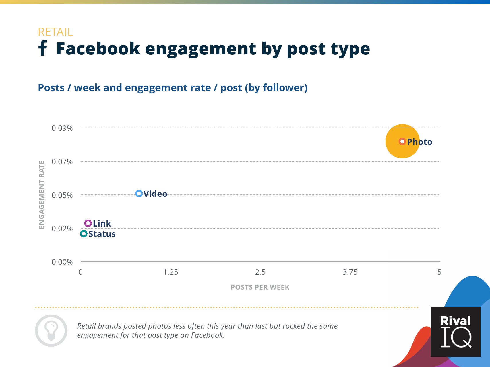 根据RivalIQ的数据,Facebook页面的平均参与率与其2019年报告持平,为0.09%。