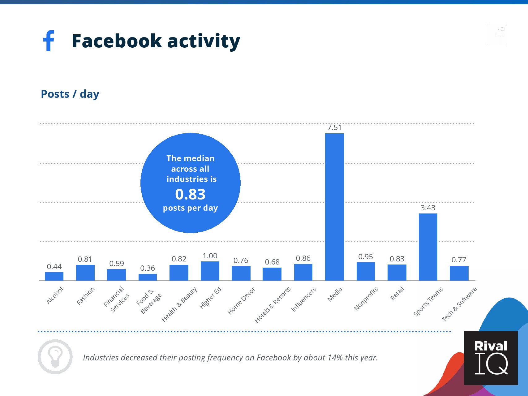 2019年,所有行业的Facebook日均发帖数量下降了约14%。