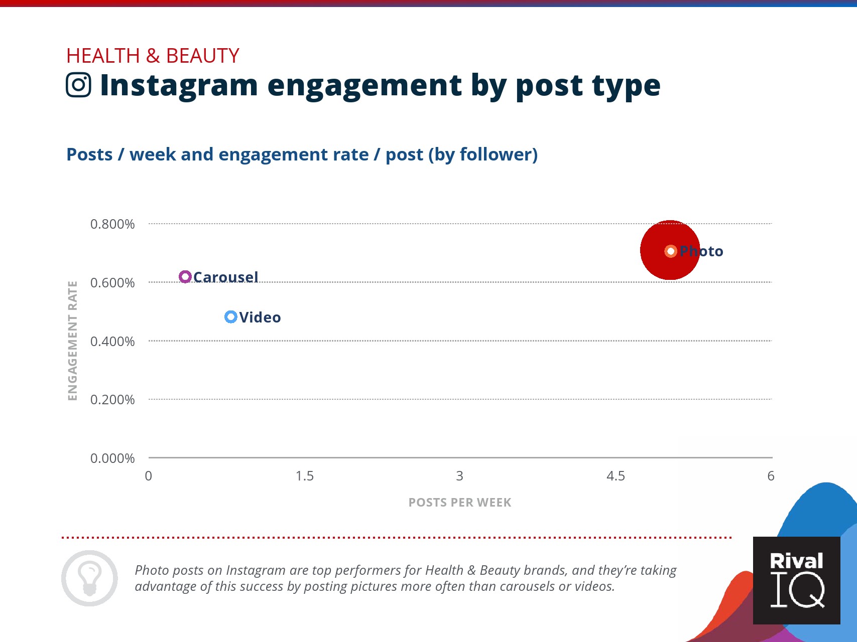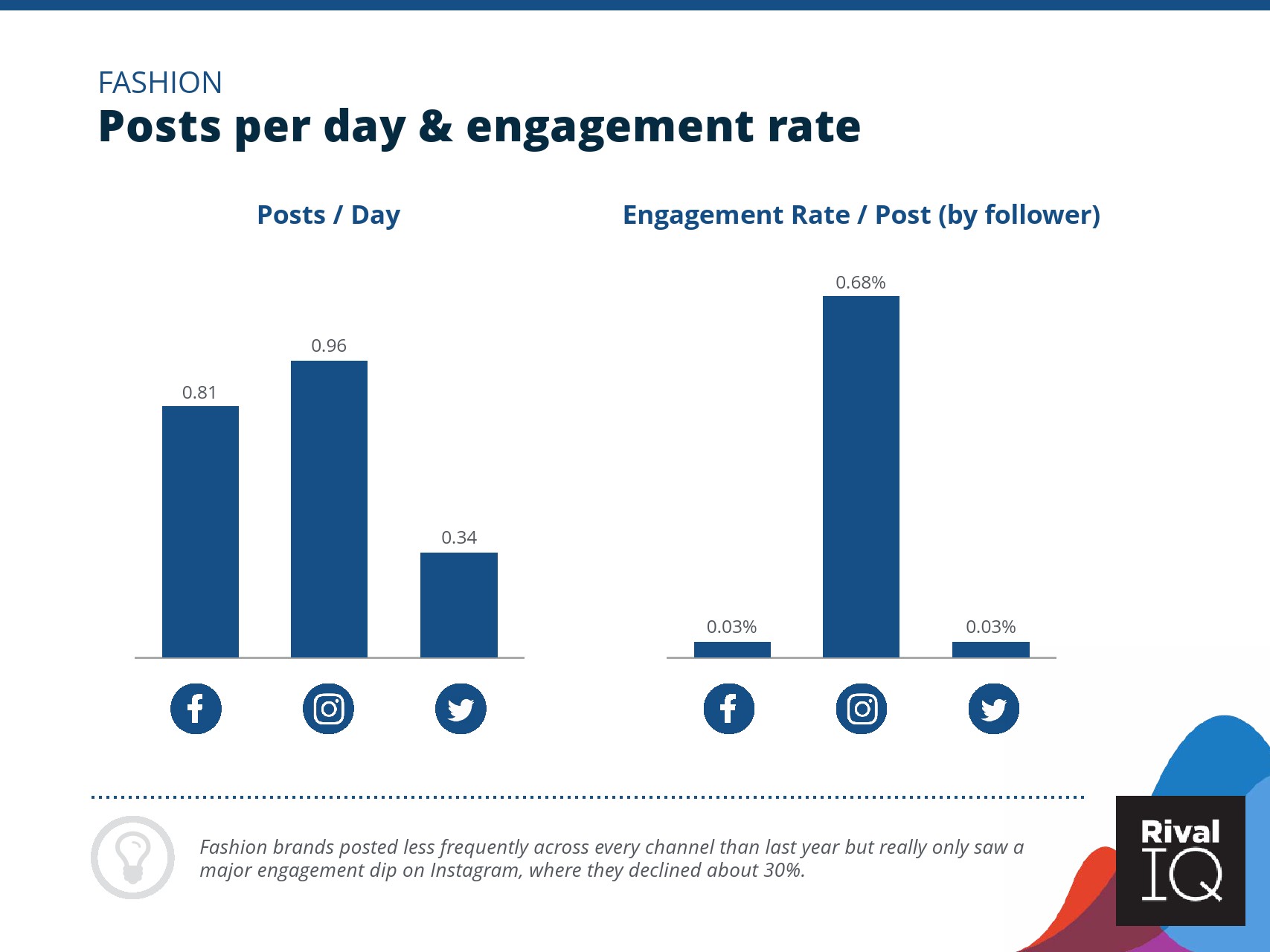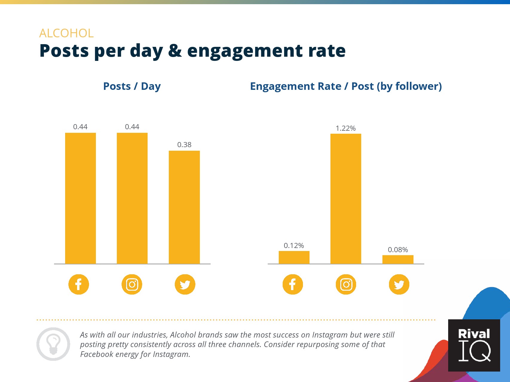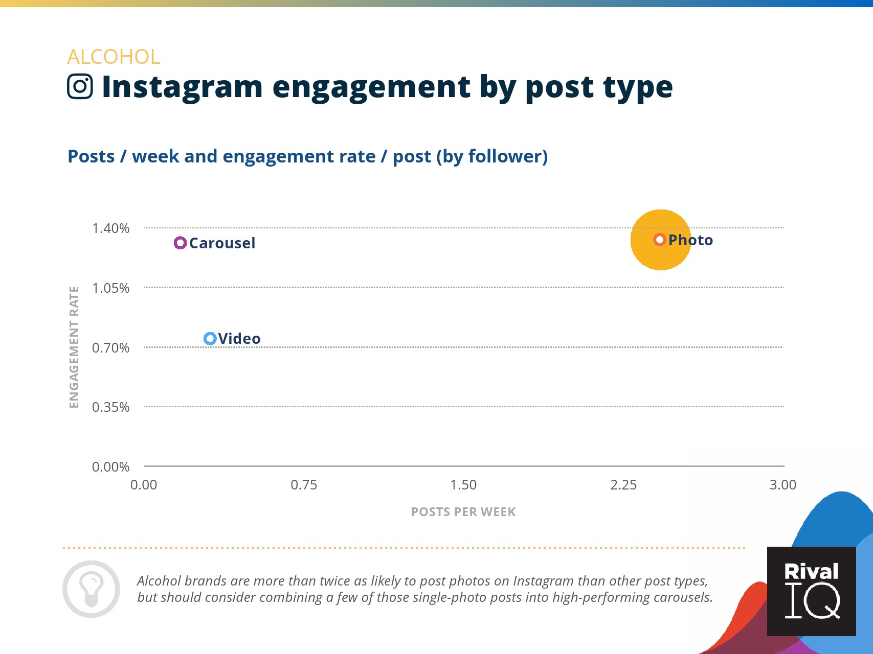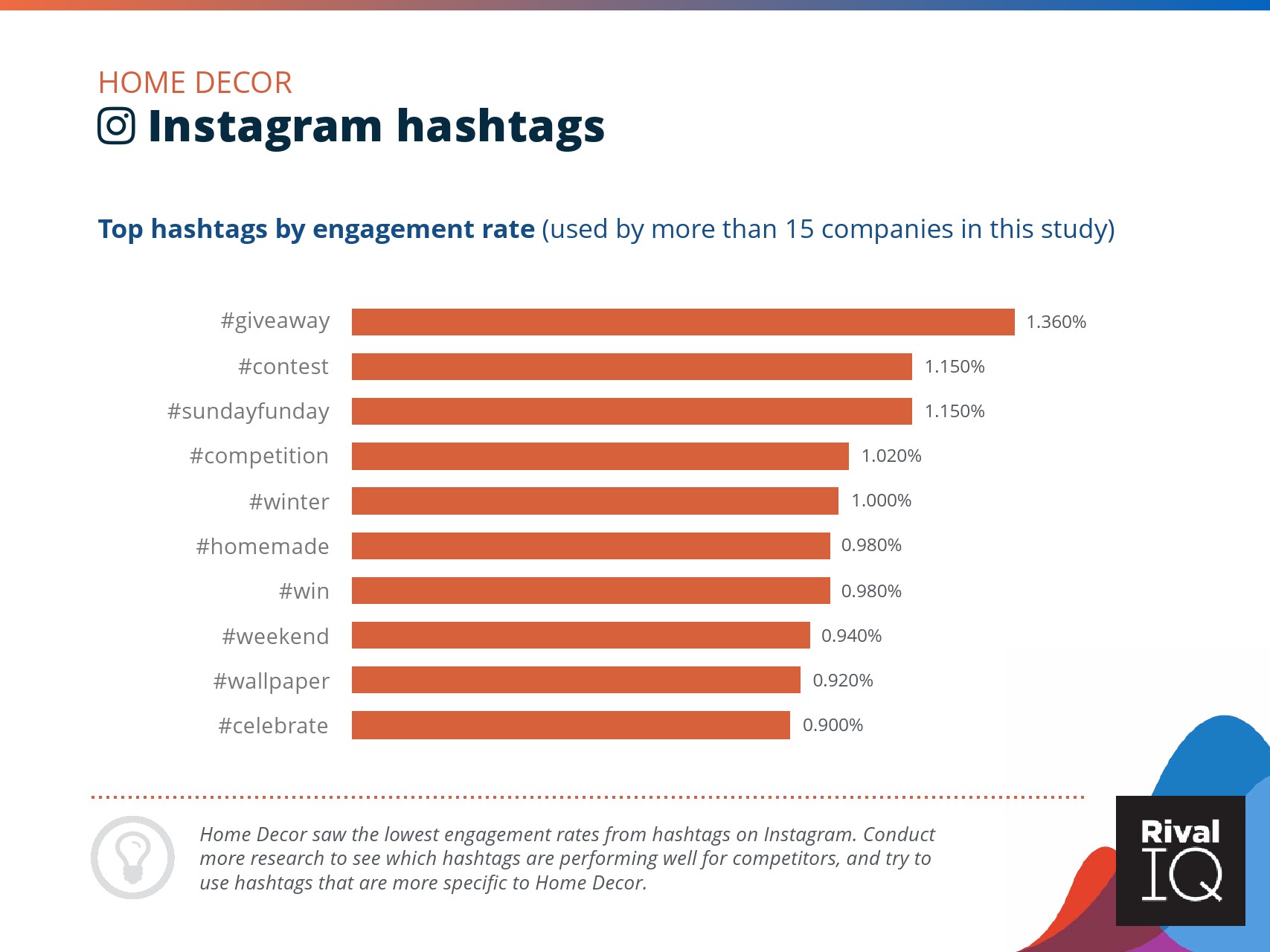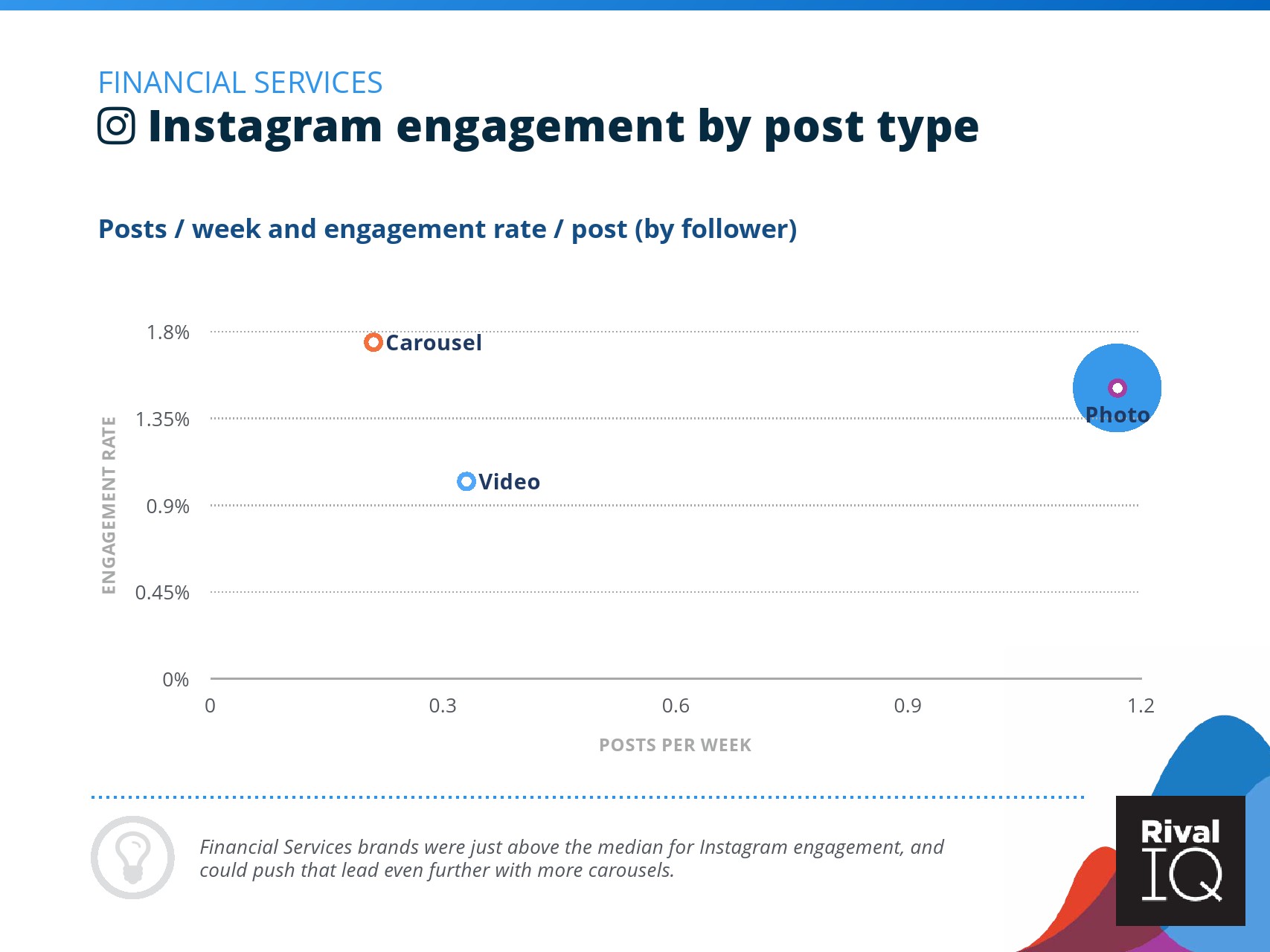 总体而言,Instagram上品牌的参与率有所下降。根据RivalIQ,今年每个行业都在Instagram上受到冲击,全行业平均参与率从1.60%降至1.22%,降幅为23%。